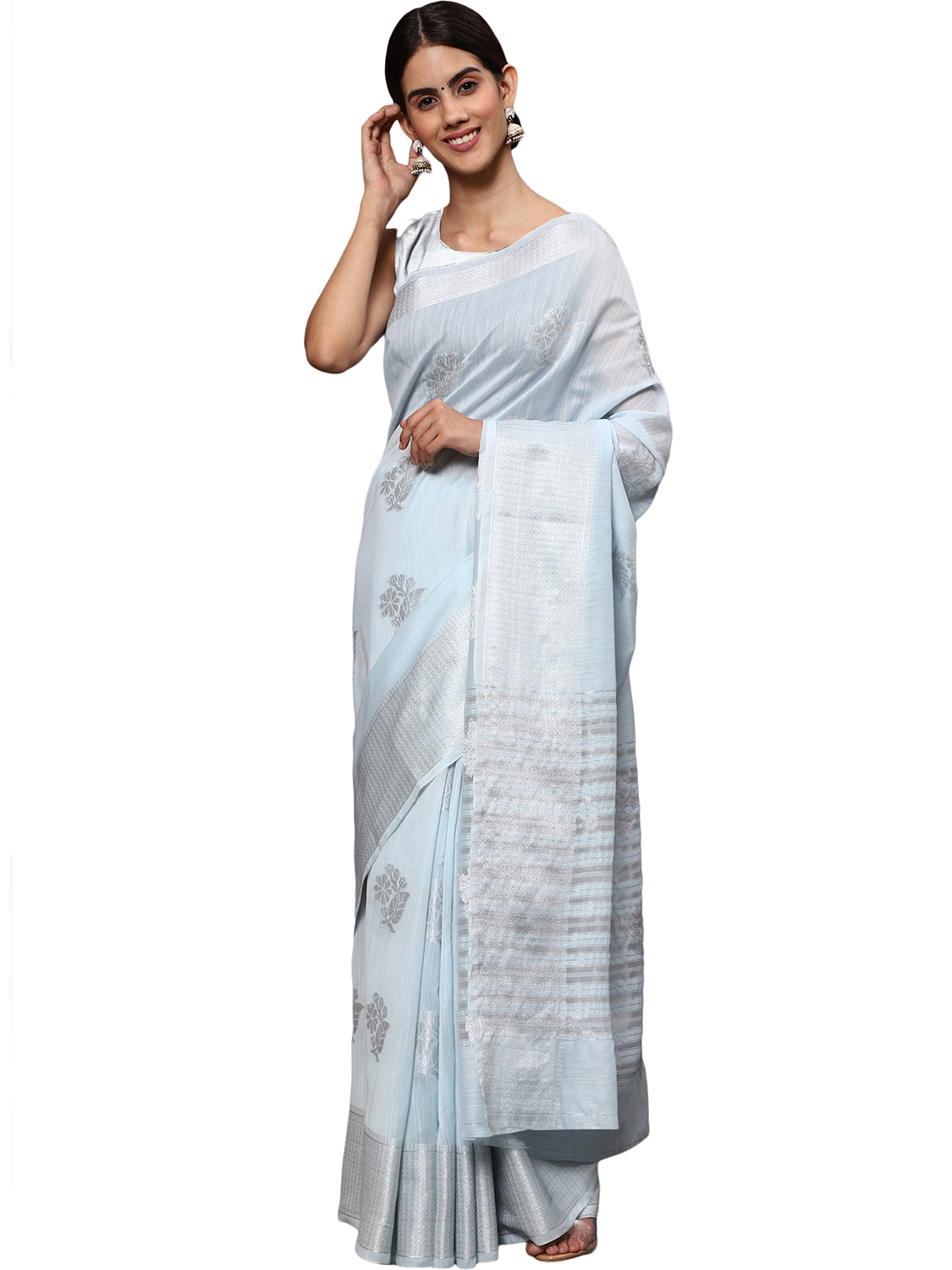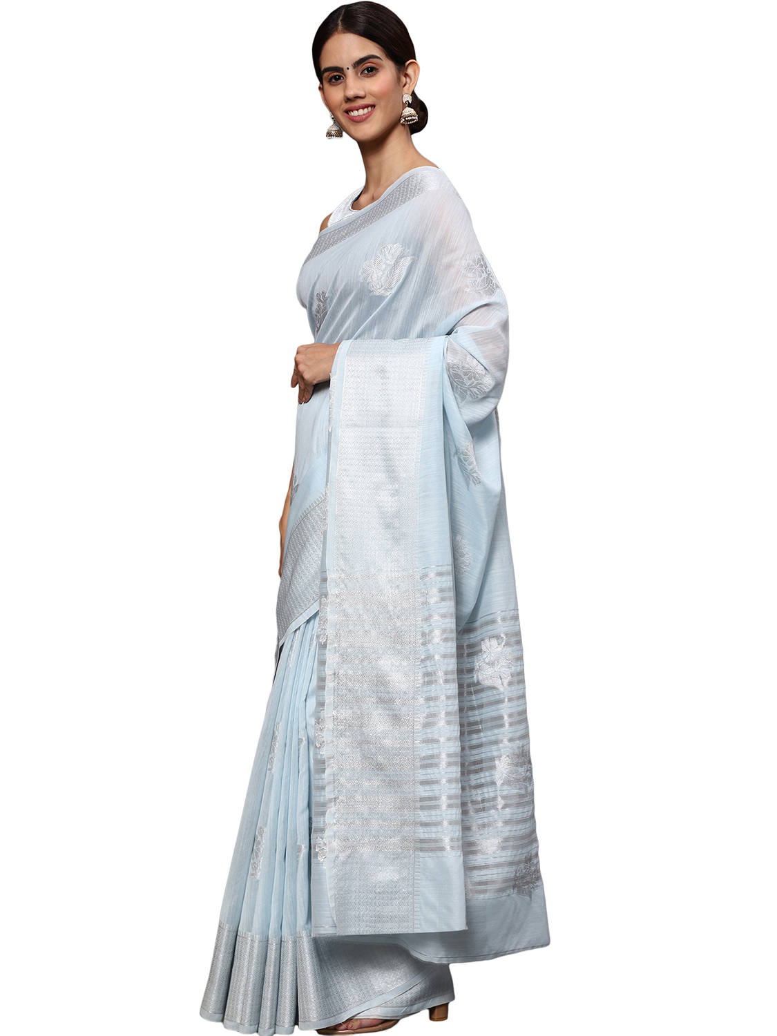 AASTHA FASHION Fashion Dream Womens Light Blue Tissue Silk Saree | Soft & Elegant Traditional Wear