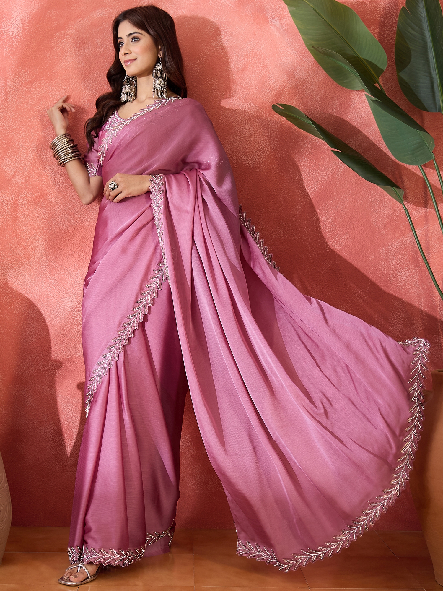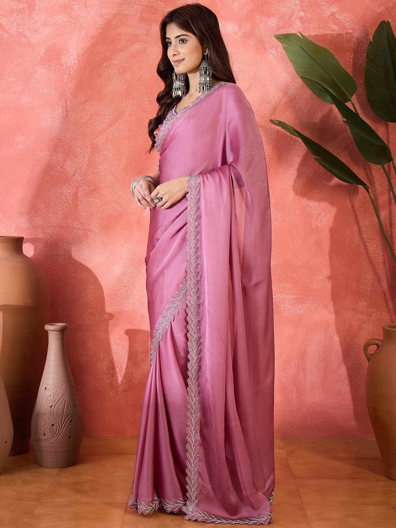 AASTHA FASHION Fashion Dream Womens Light Purple Heavy Satin Chiffon Saree | Soft & Elegant Traditional Wear