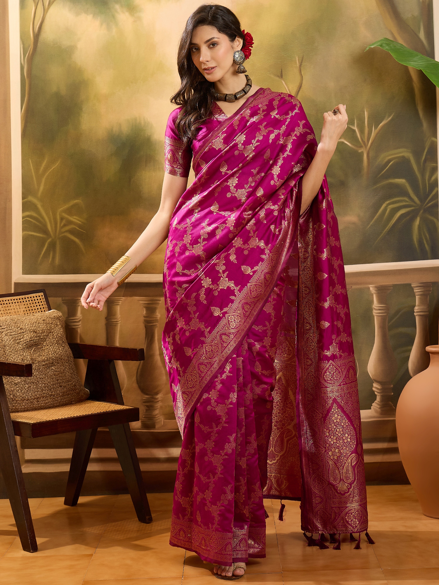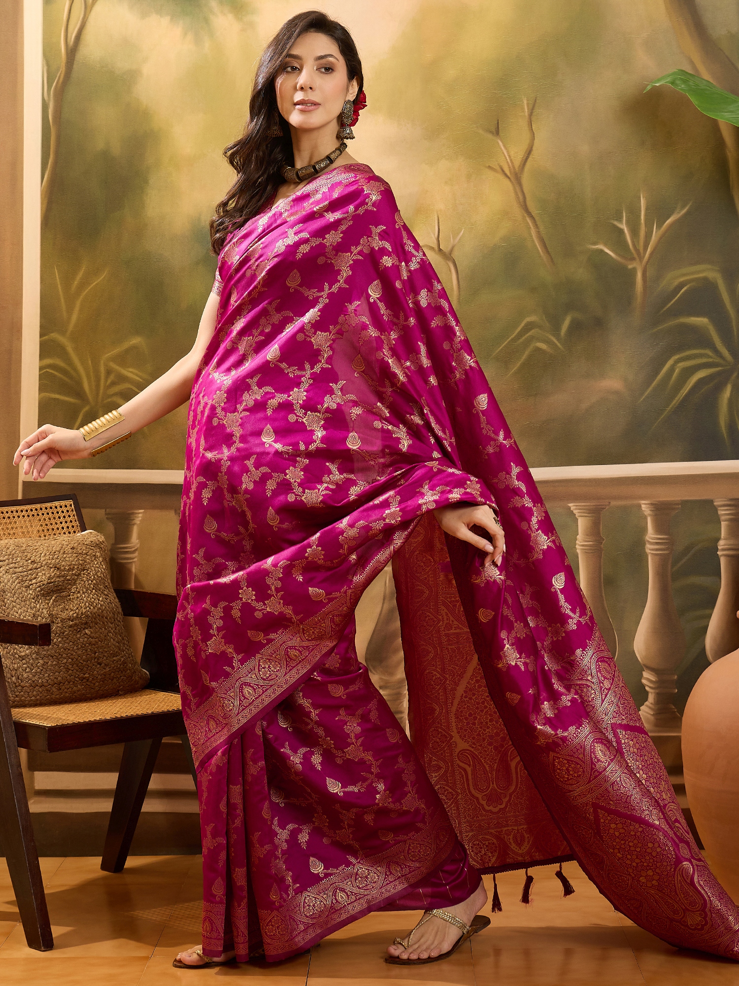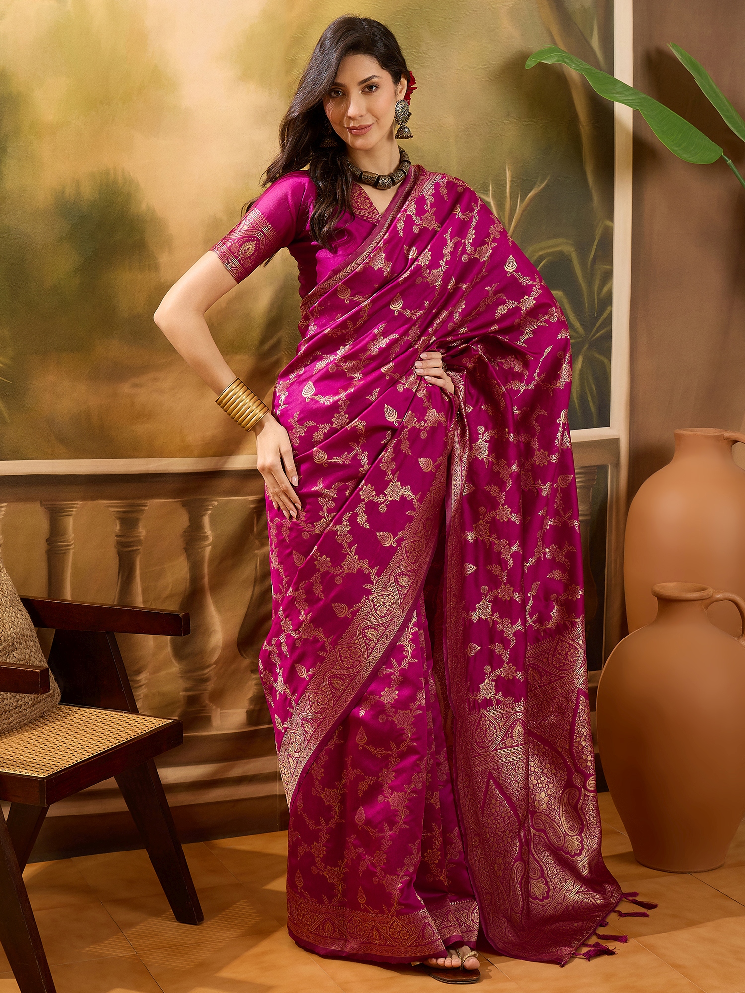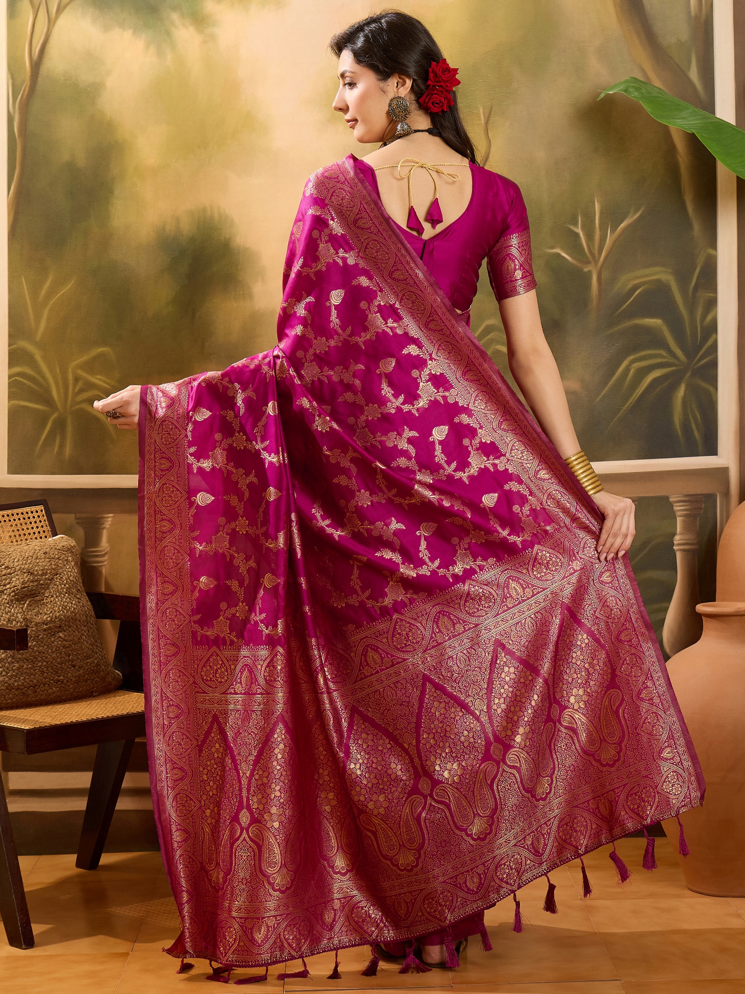 AASTHA FASHION Fashion Dream Womens Magenta Banarasi Jacquard Saree | Soft & Elegant Traditional Wear