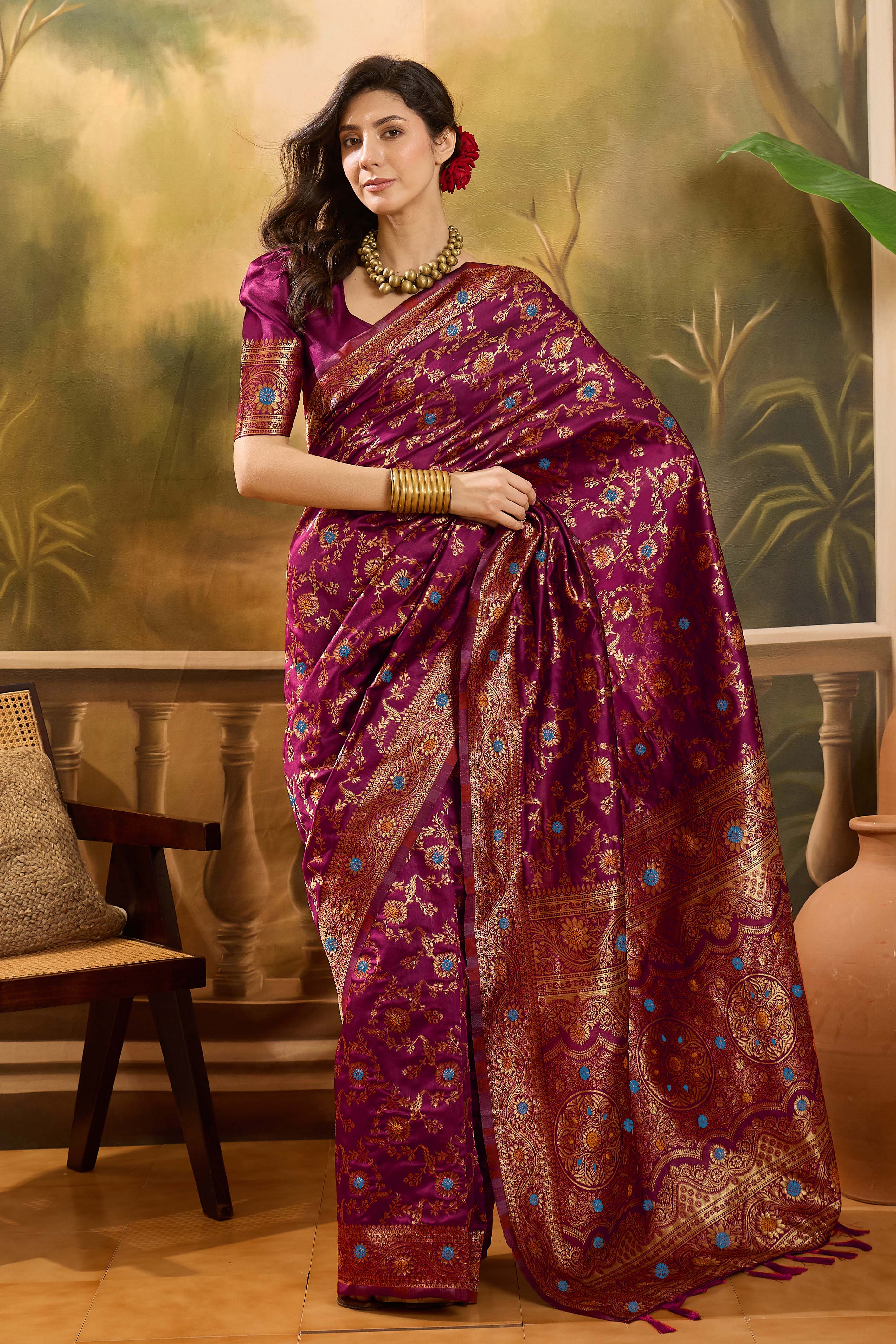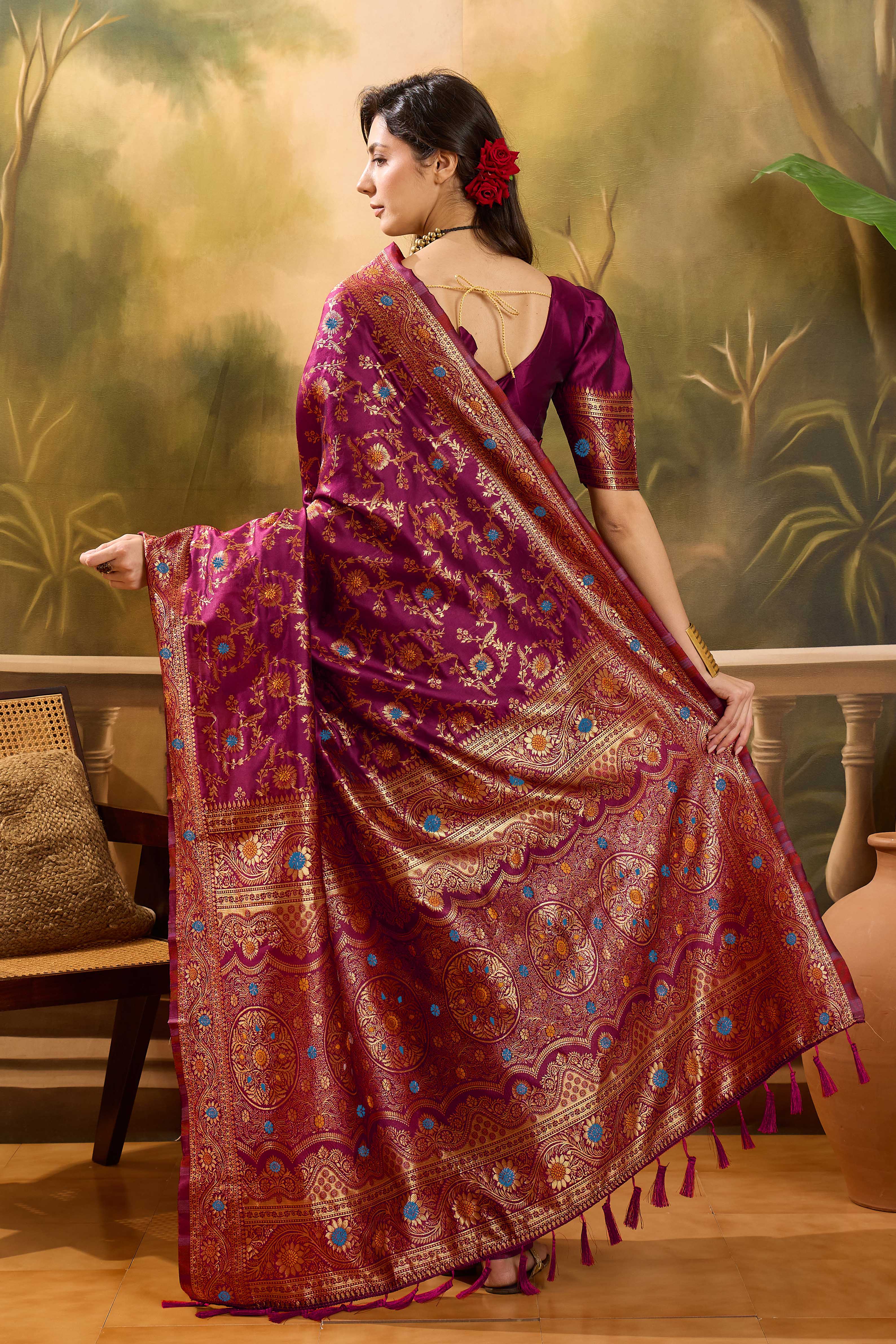 • Saree Work-Weaving ,Blouse Work- Banarasi Jacquard