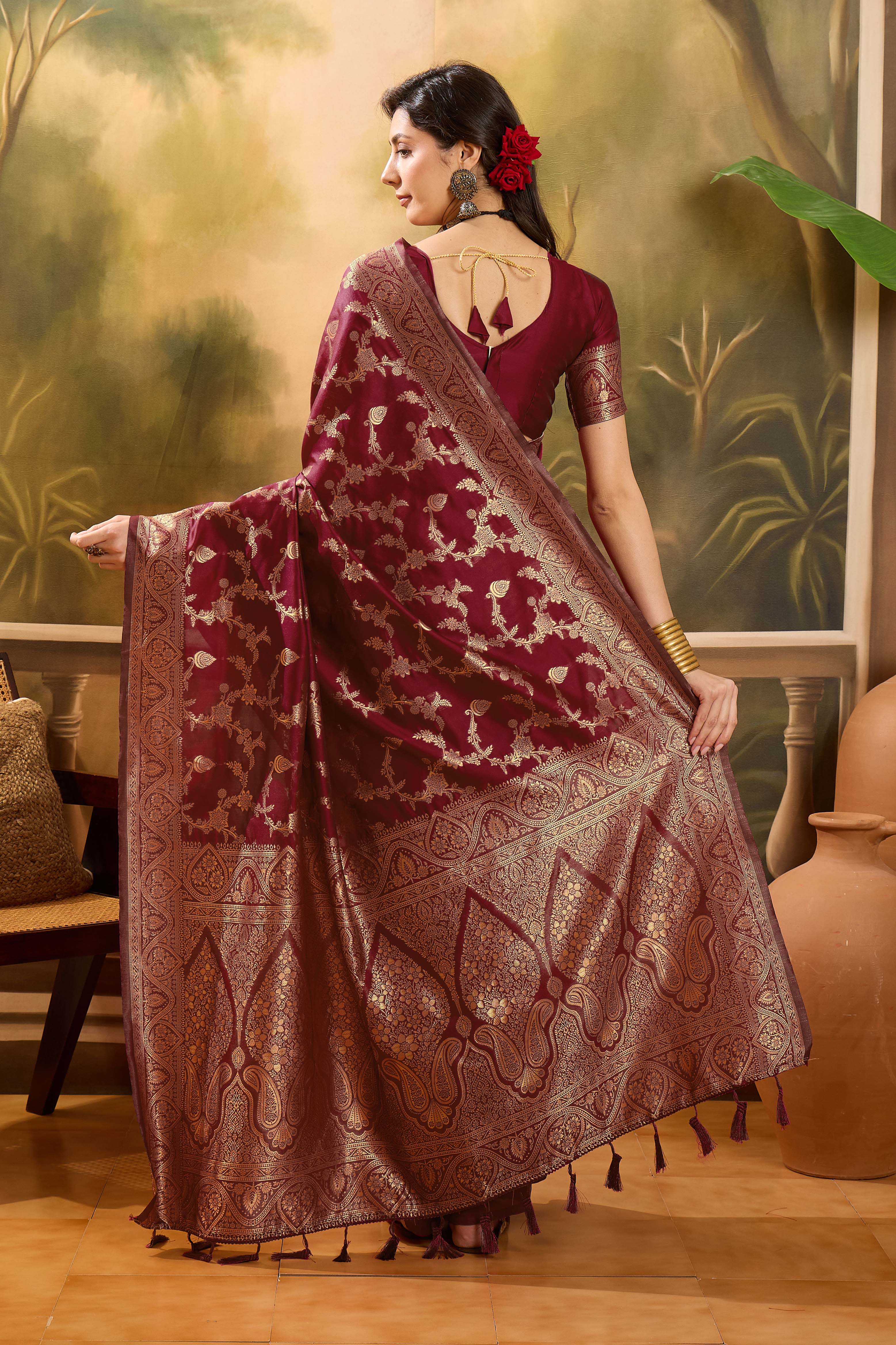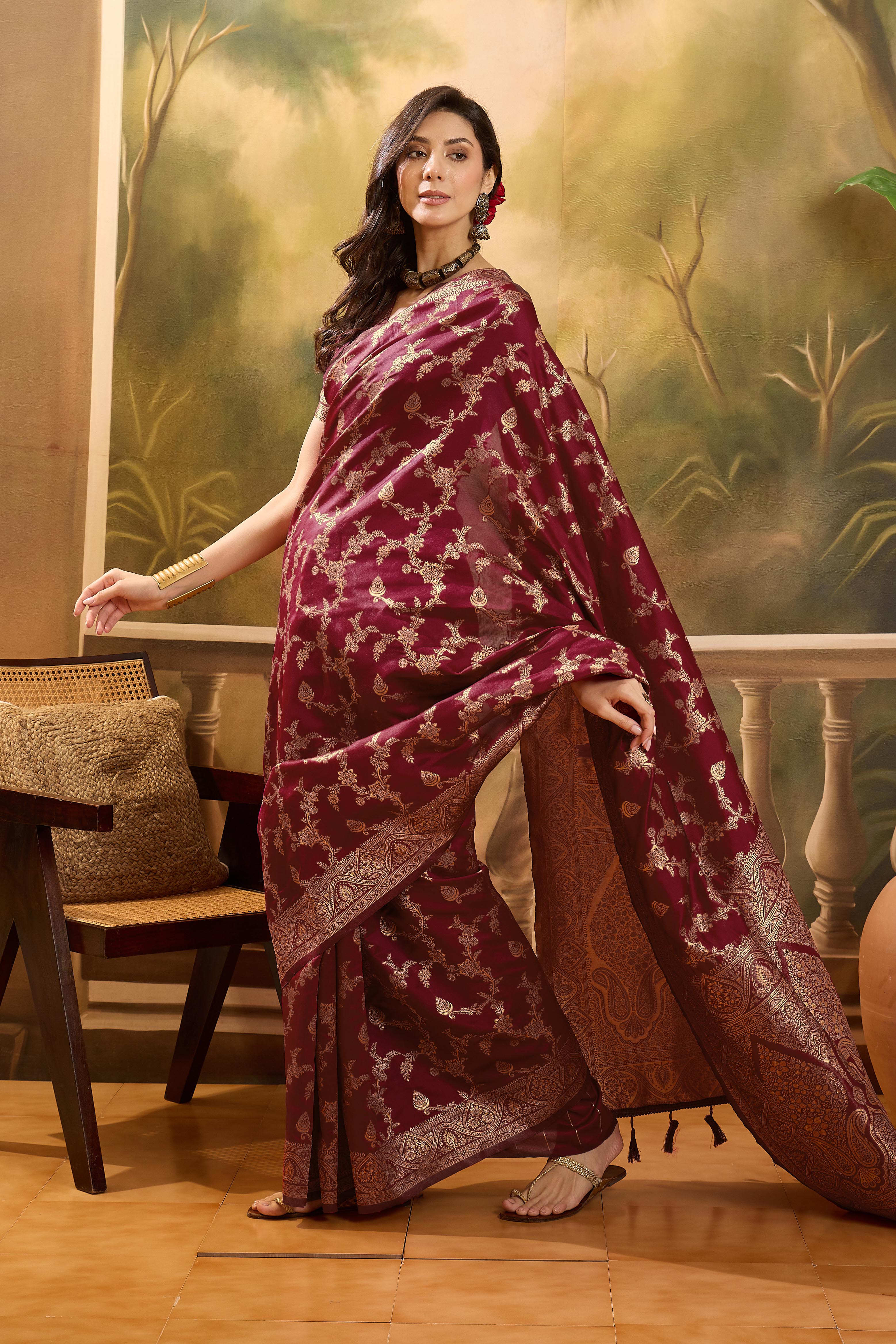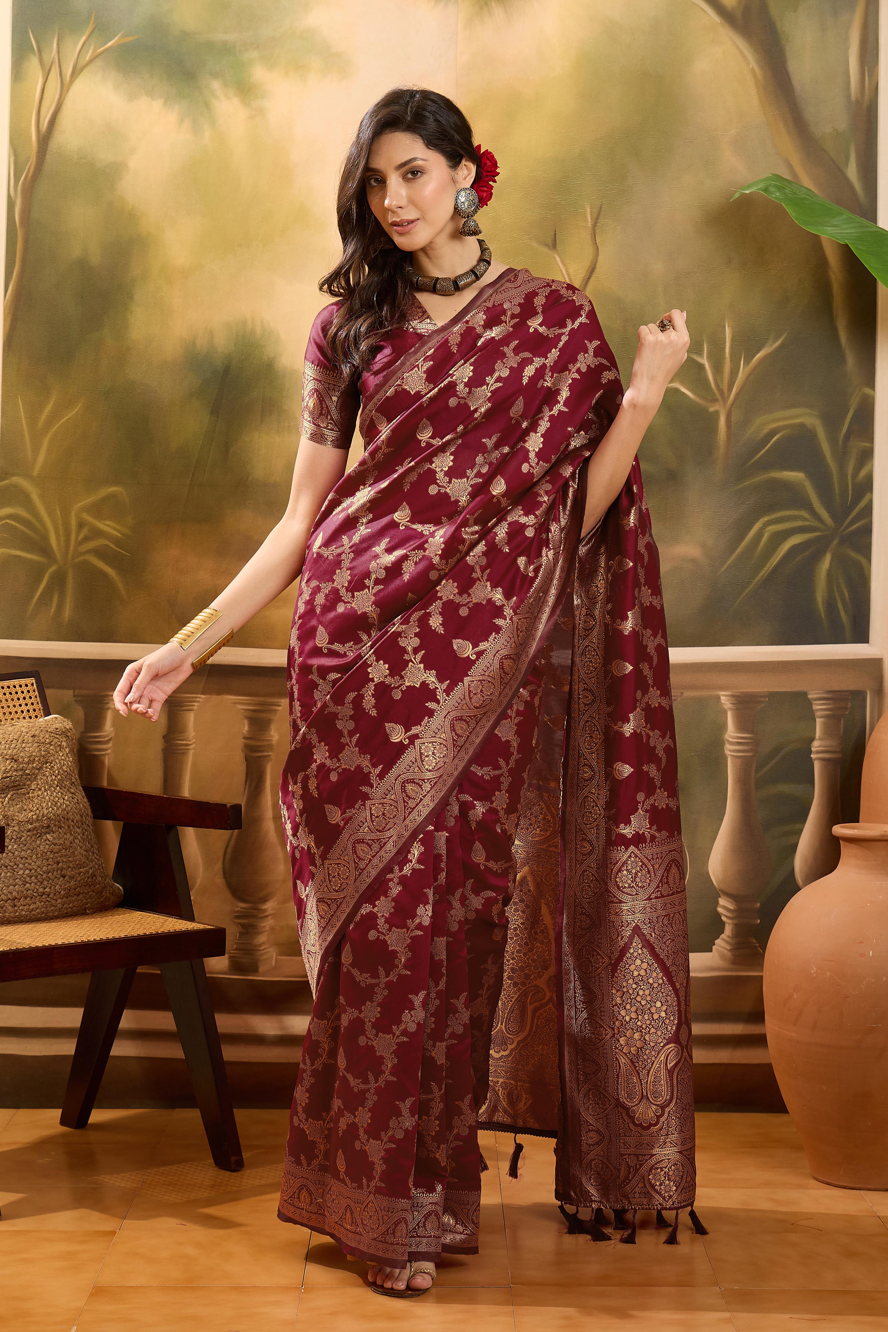 AASTHA FASHION Fashion Dream Womens Maroon Banarasi Jacquard Saree | Soft & Elegant Traditional Wear