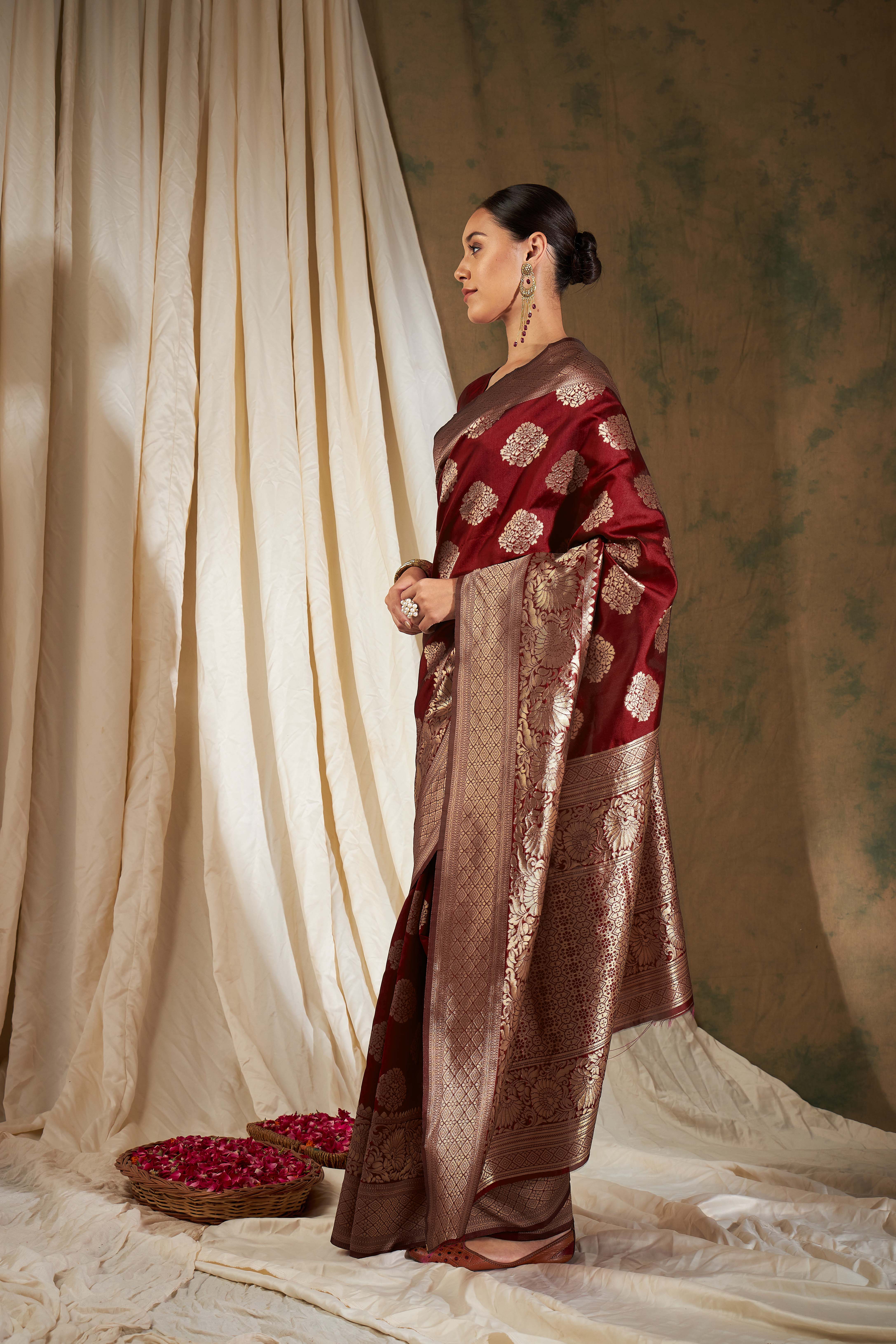 AASTHA FASHION Fashion Dream Womens MAROON Banarasi Silk Saree | Soft & Elegant Traditional Wear