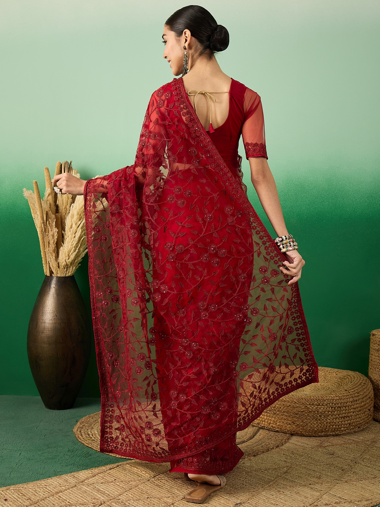 AASTHA FASHION Fashion Dream Womens Maroon Net Saree | Soft & Elegant Traditional Wear