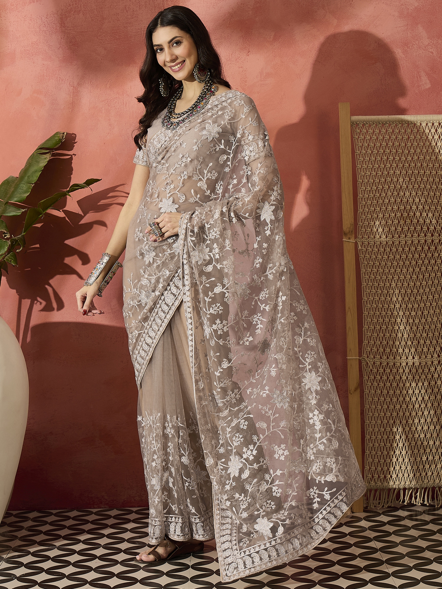 AASTHA FASHION Fashion Dream Womens Mouse Grey Net Saree | Soft & Elegant Traditional Wear
