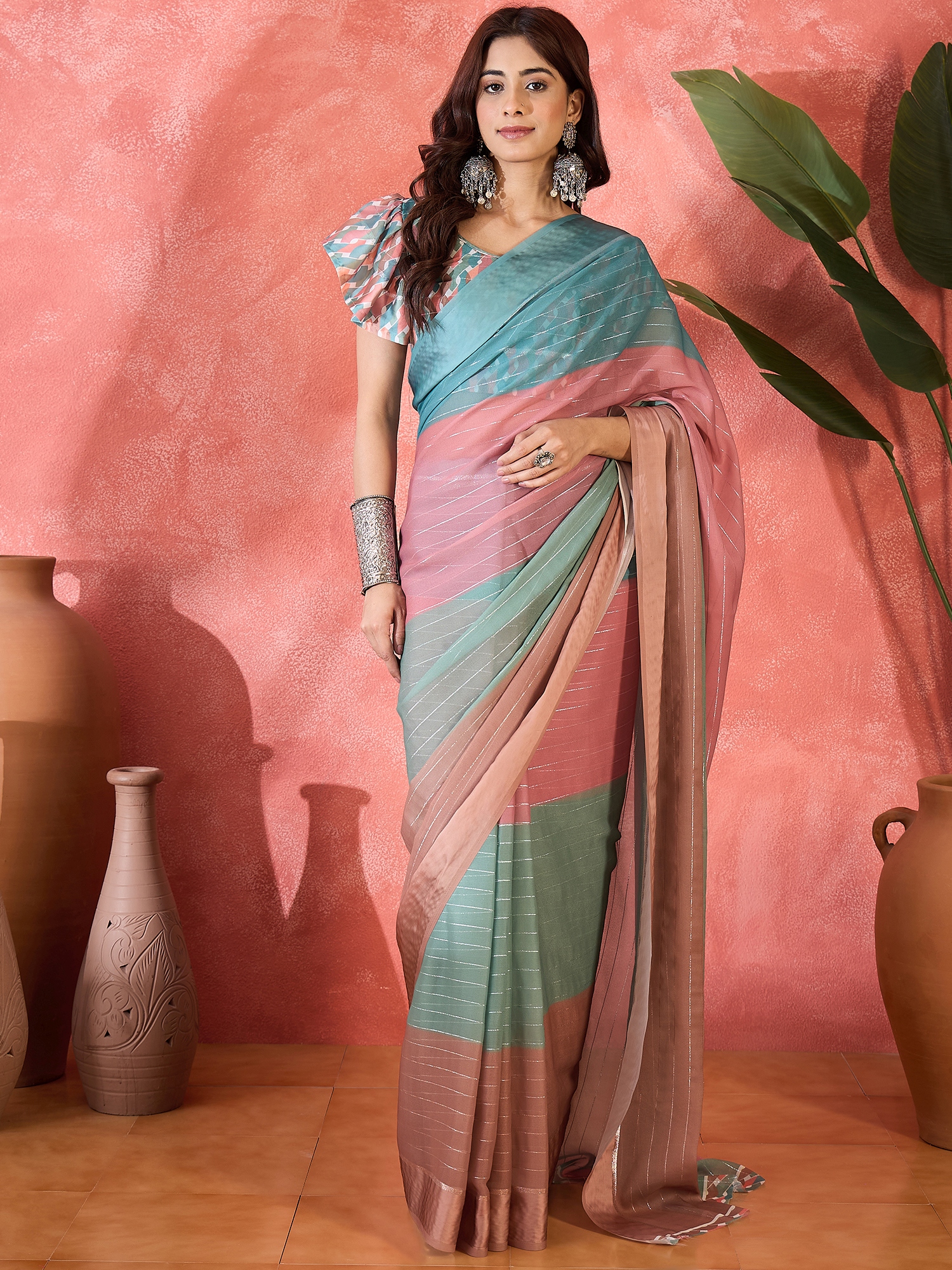 AASTHA FASHION Fashion Dream Womens Multi Moss Chiffon Saree | Soft & Elegant Traditional Wear