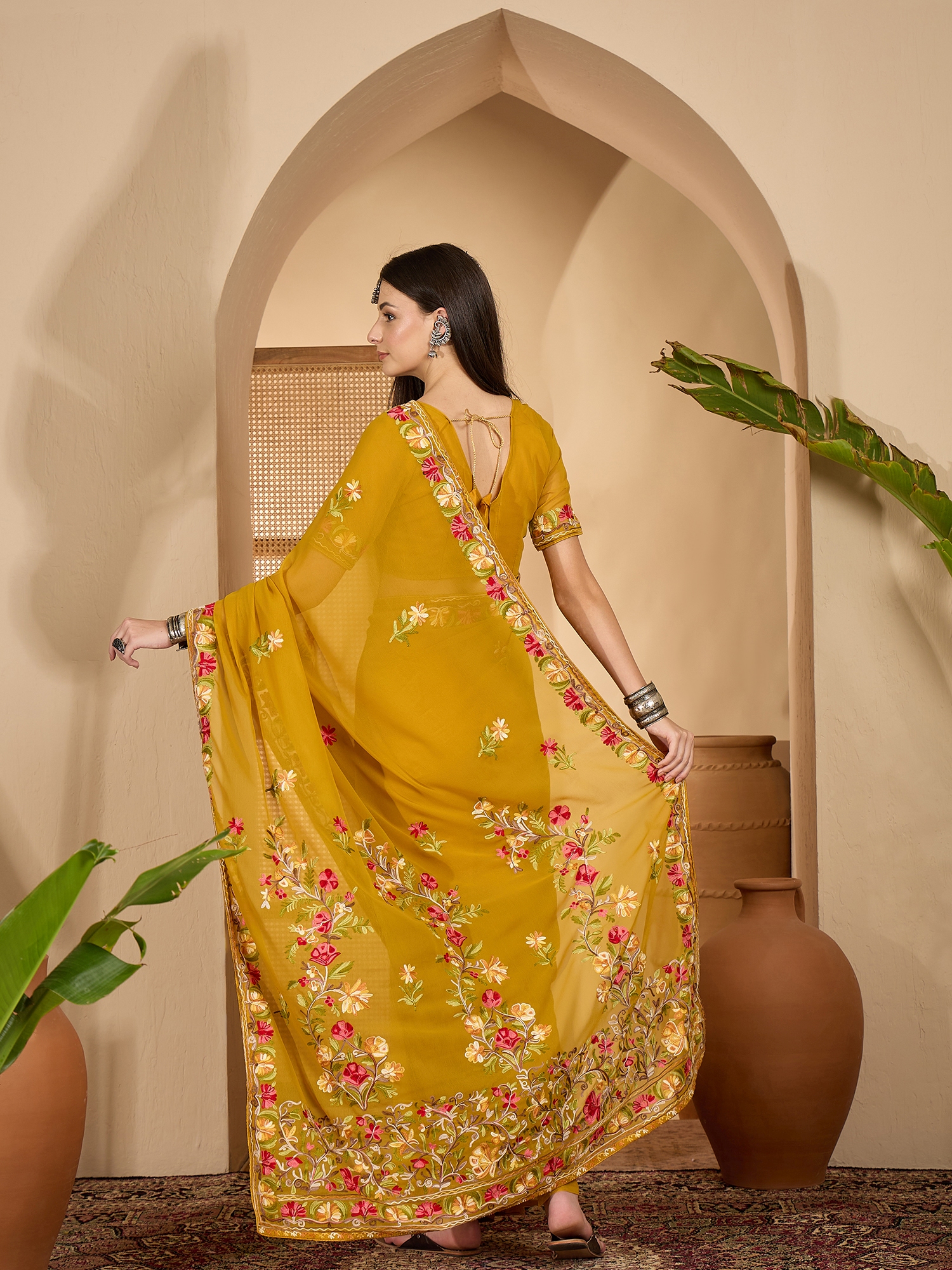 AASTHA FASHION Fashion Dream Womens Mustard Georgette Saree | Soft & Elegant Traditional Wear