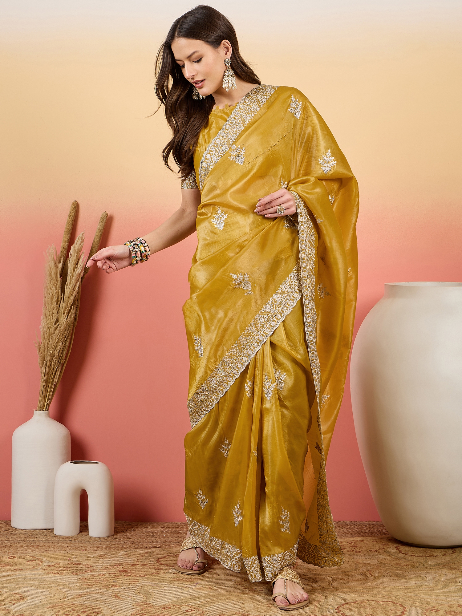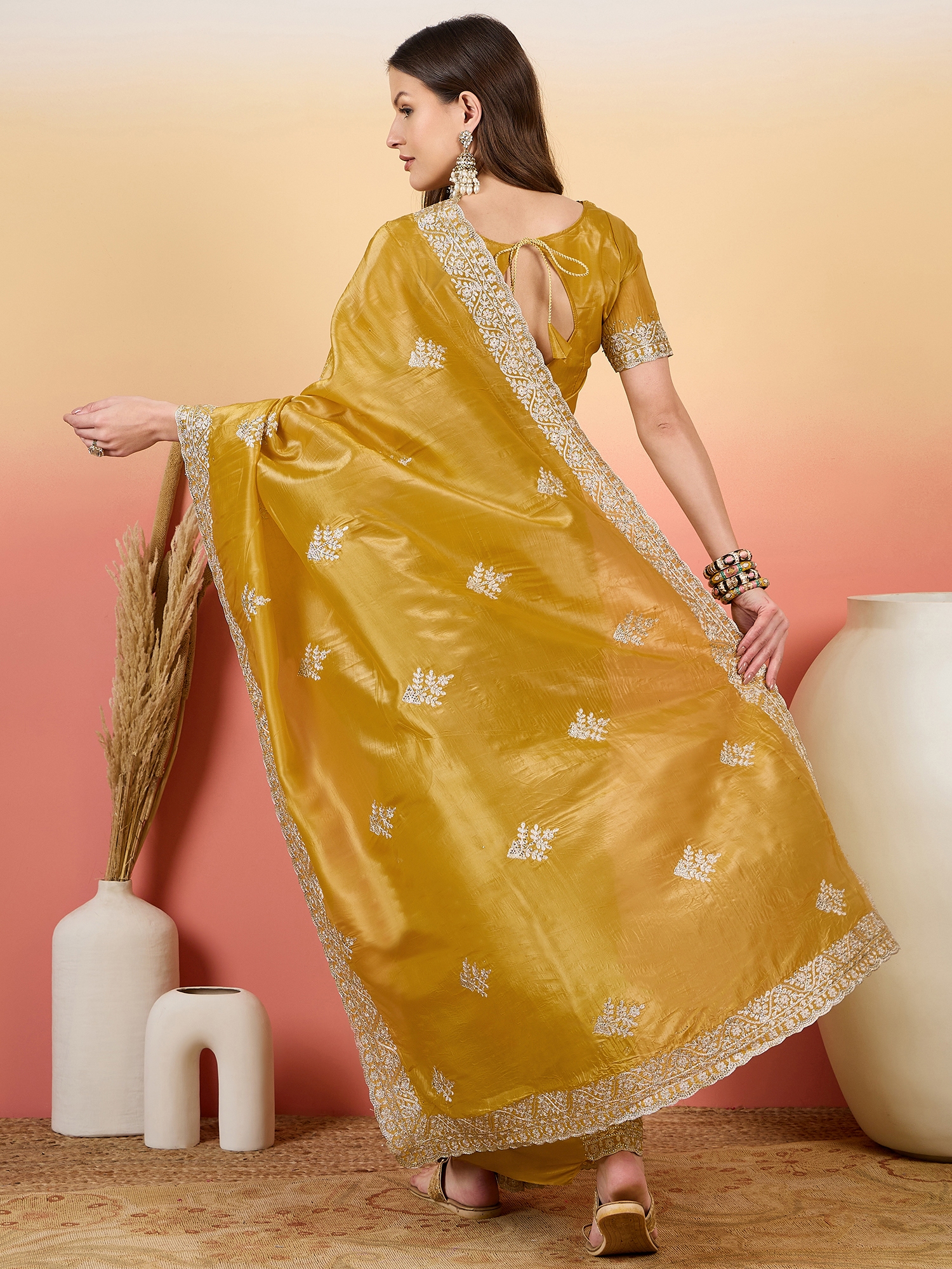 • Saree Work-Embroidered ,Blouse Work- Gold Crush