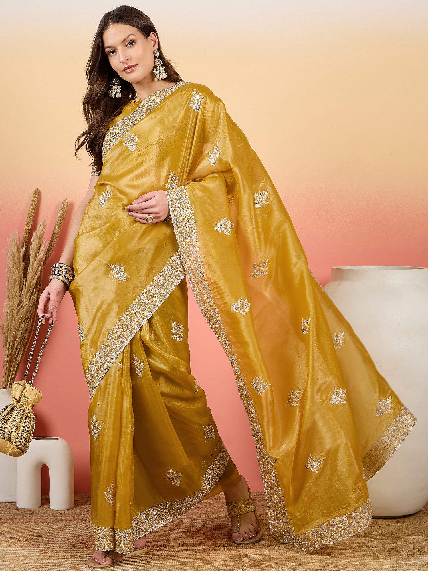 • Saree Fabric-Gold Crush ,Blouse Fabric-Gold Crush