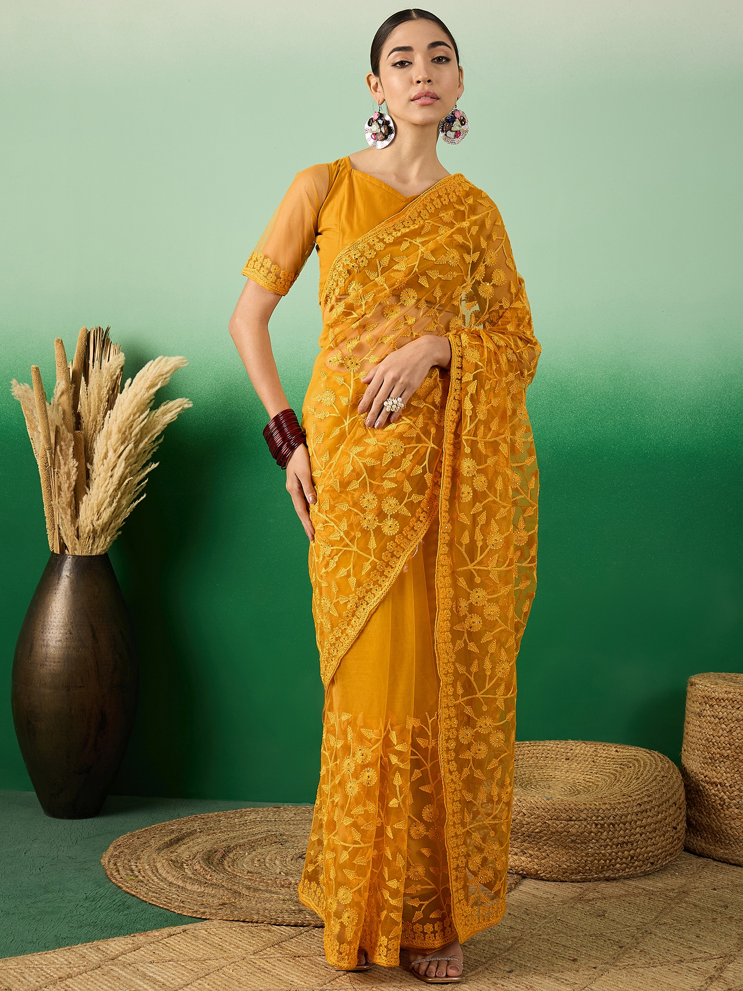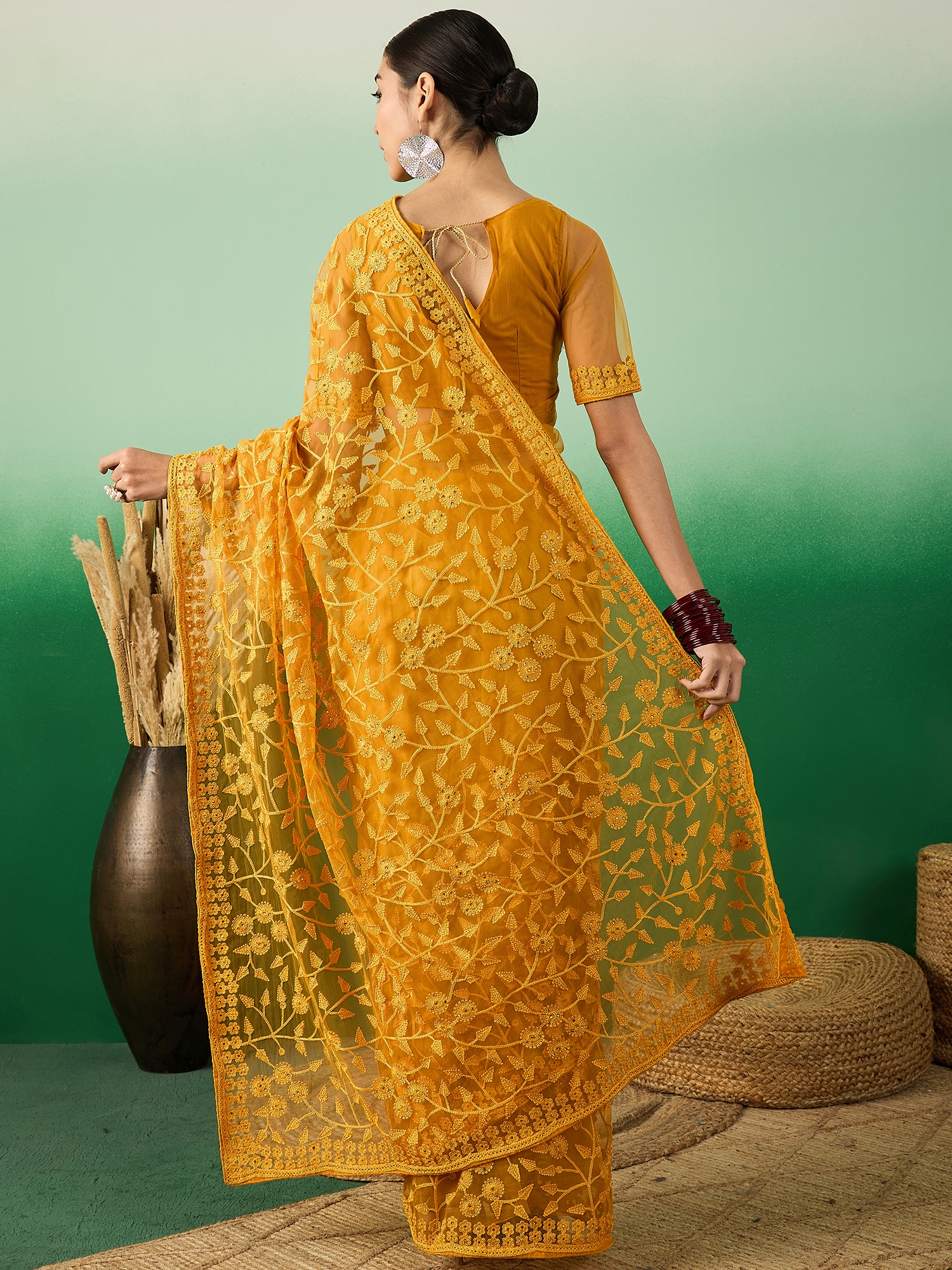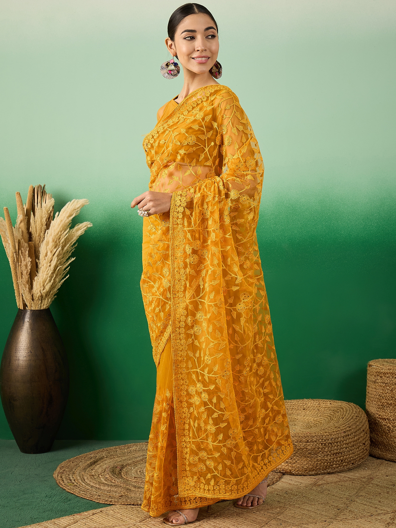 AASTHA FASHION Fashion Dream Womens Mustard Net Saree | Soft & Elegant Traditional Wear