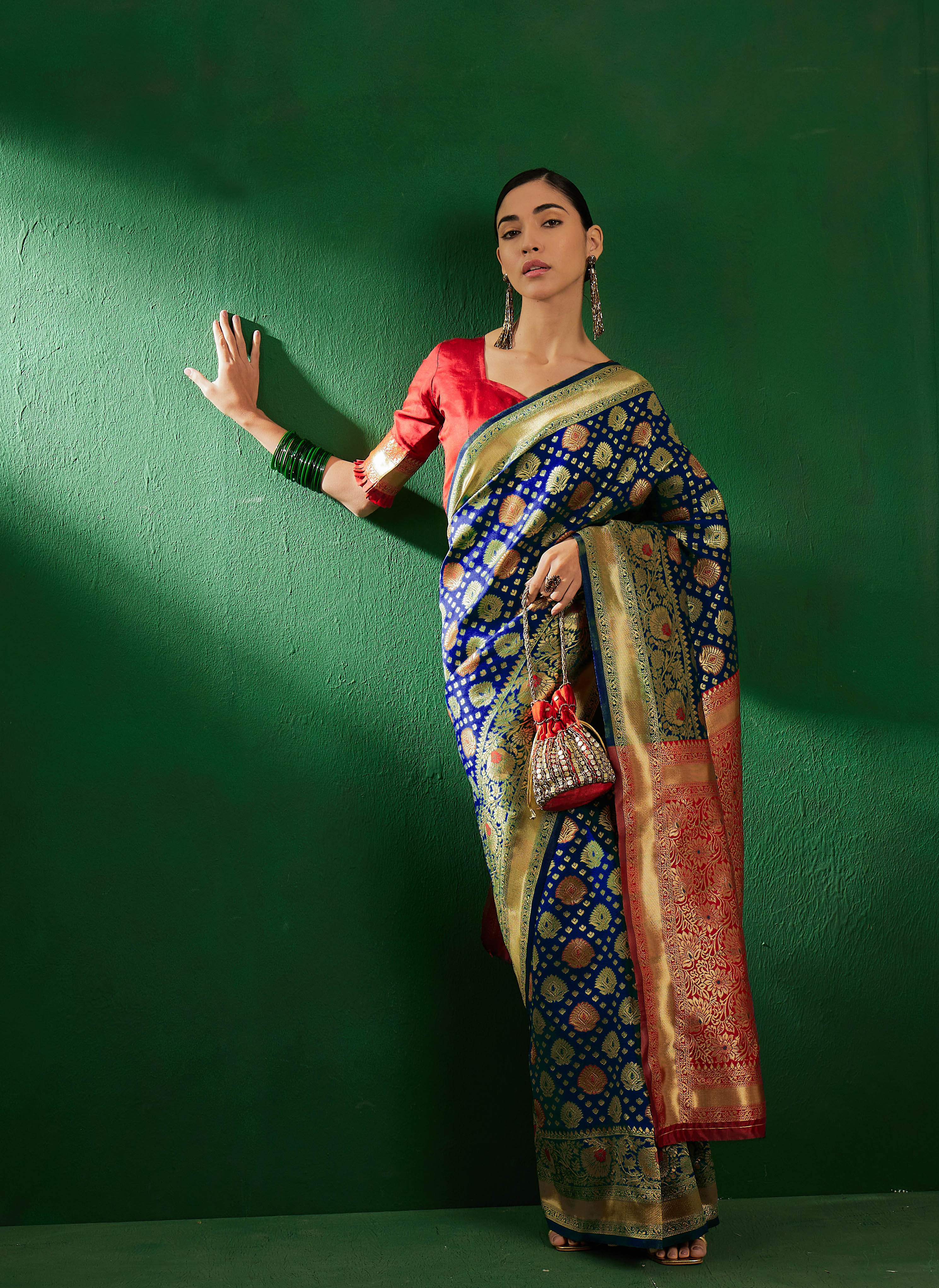 AASTHA FASHION Fashion Dream Womens Navy Blue Banarasi Silk Saree | Soft & Elegant Traditional Wear