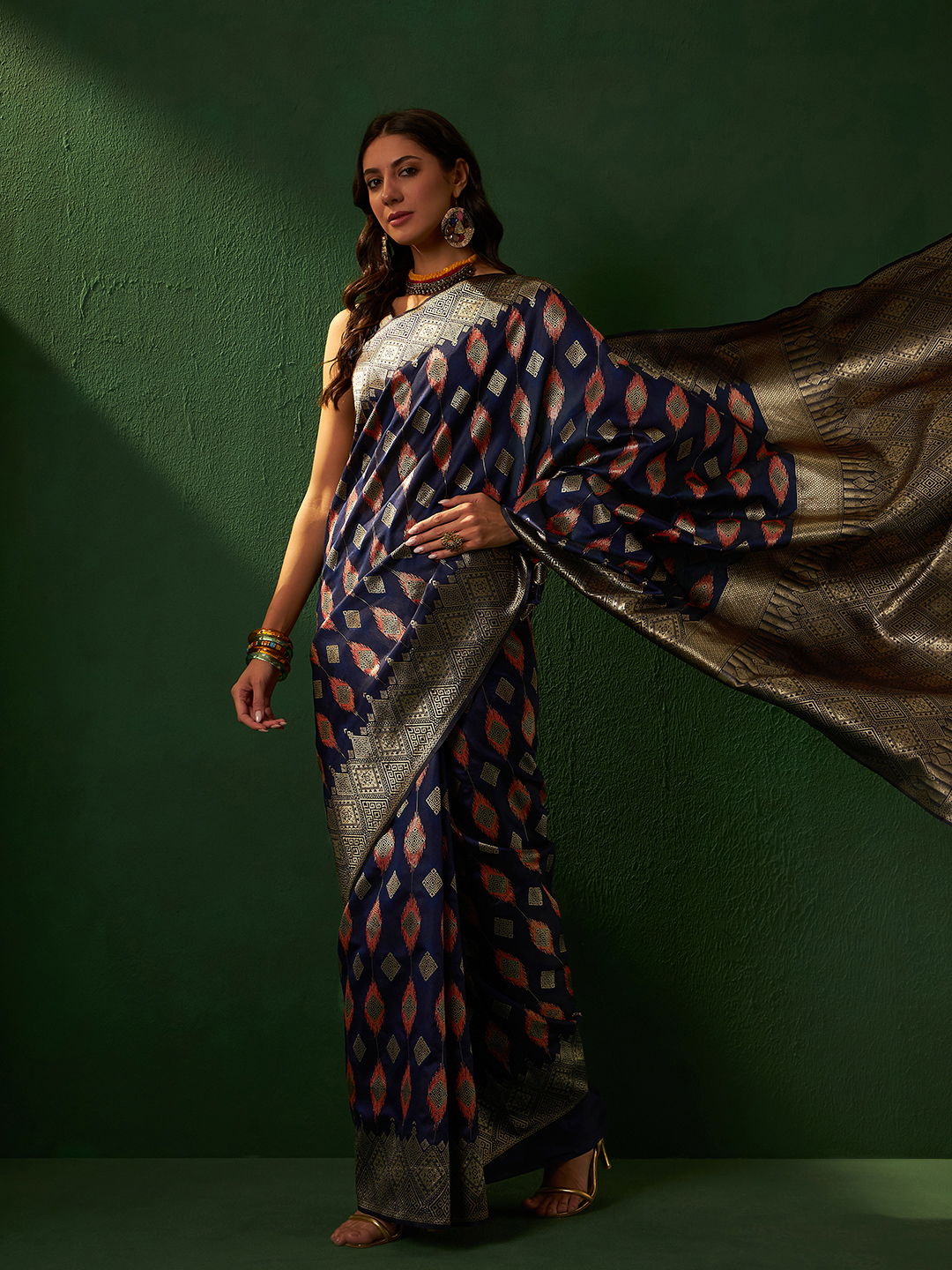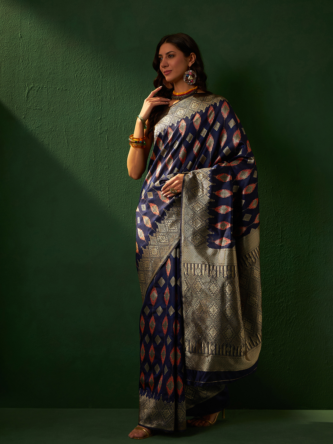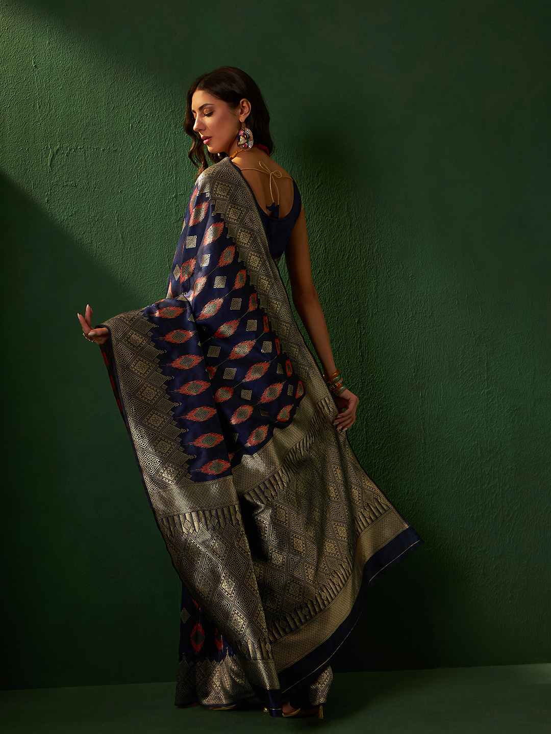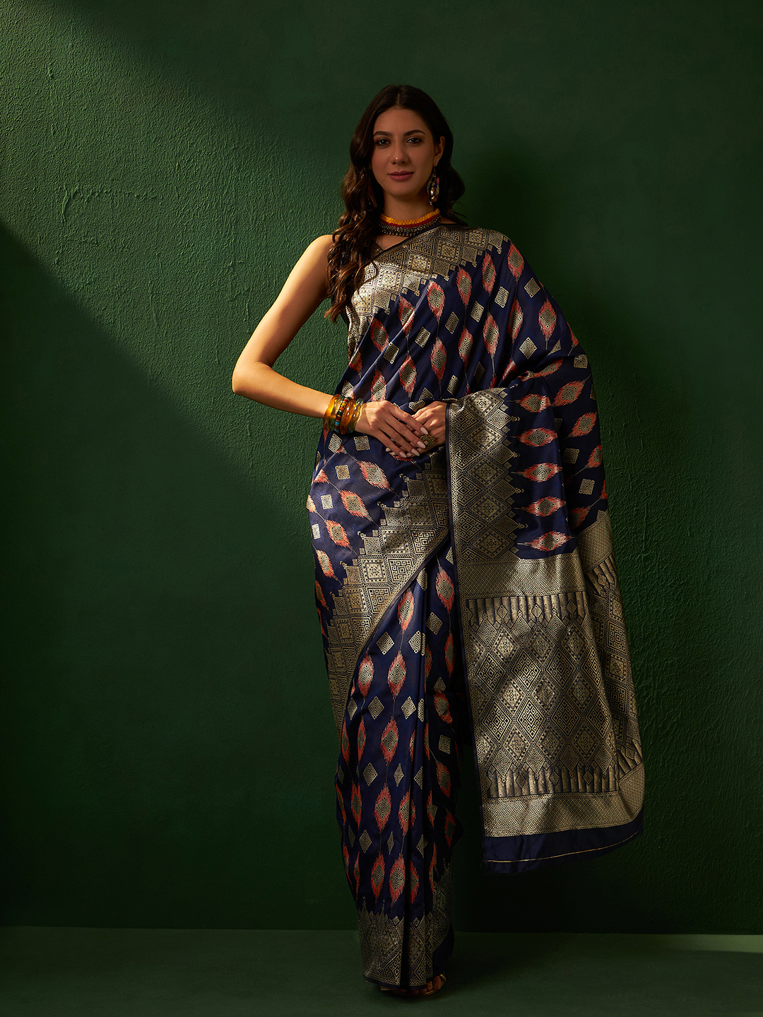 AASTHA FASHION Fashion Dream Womens Navy Blue BANARASI SILK Saree | Soft & Elegant Traditional Wear