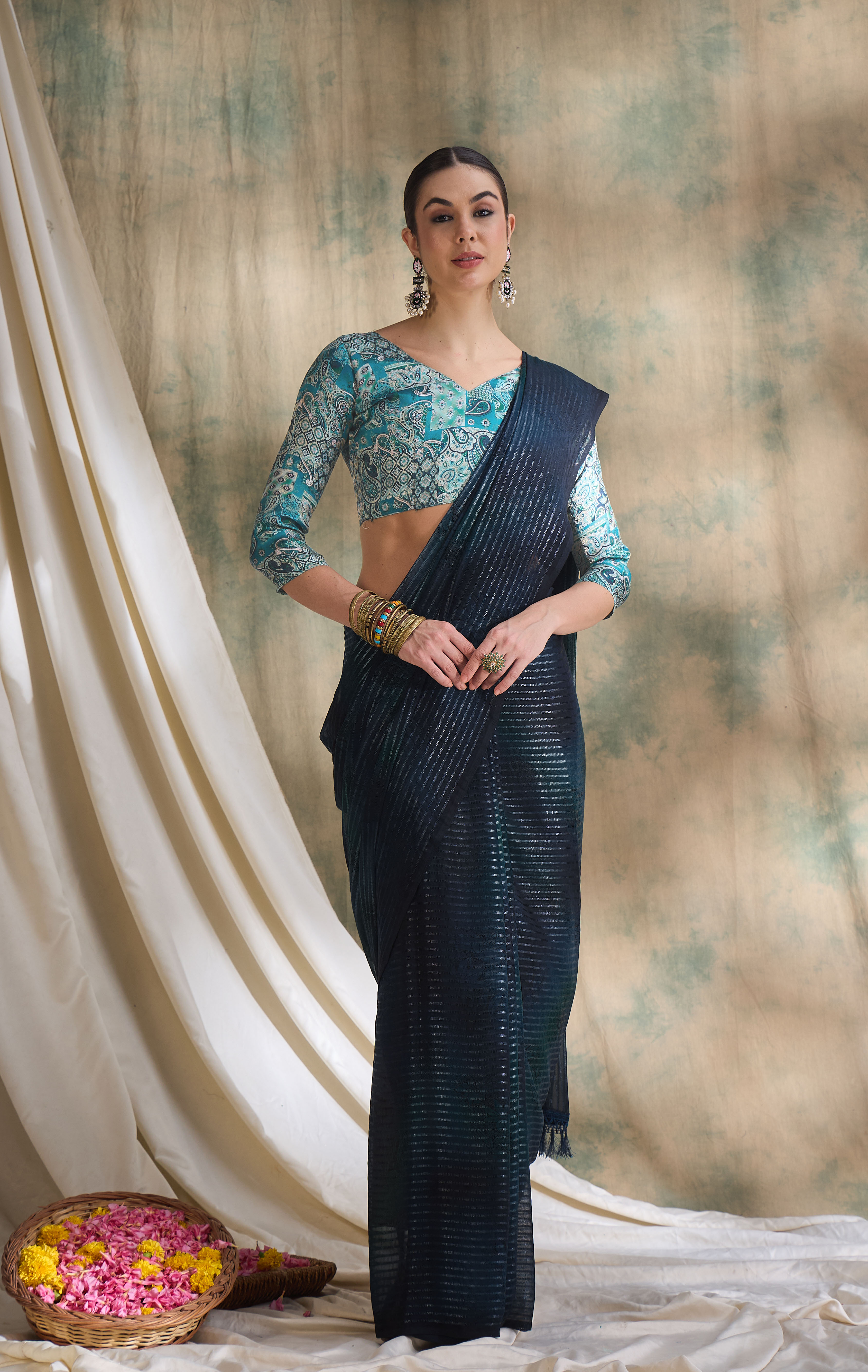 AASTHA FASHION Fashion Dream Womens Navy Blue Sparkle Lining Saree | Soft & Elegant Traditional Wear