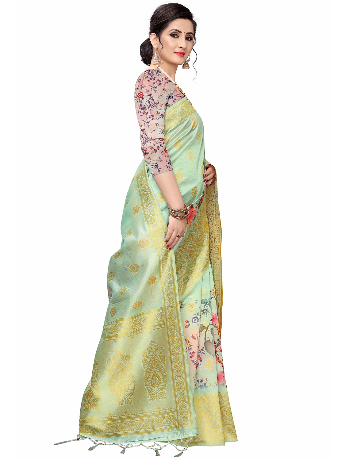 • Saree Fabric-Cotton Silk Blend ,Blouse Fabric-Cotton Silk Blend