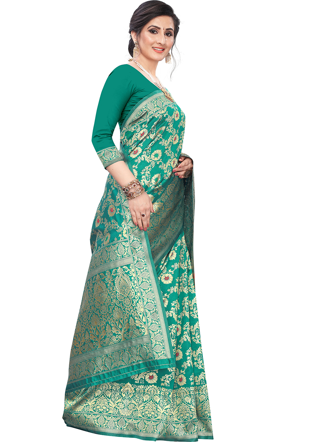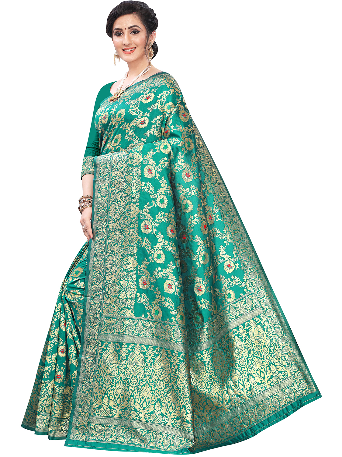 AASTHA FASHION Fashion Dream Womens Ocean Green Silk Blend Saree | Soft & Elegant Traditional Wear