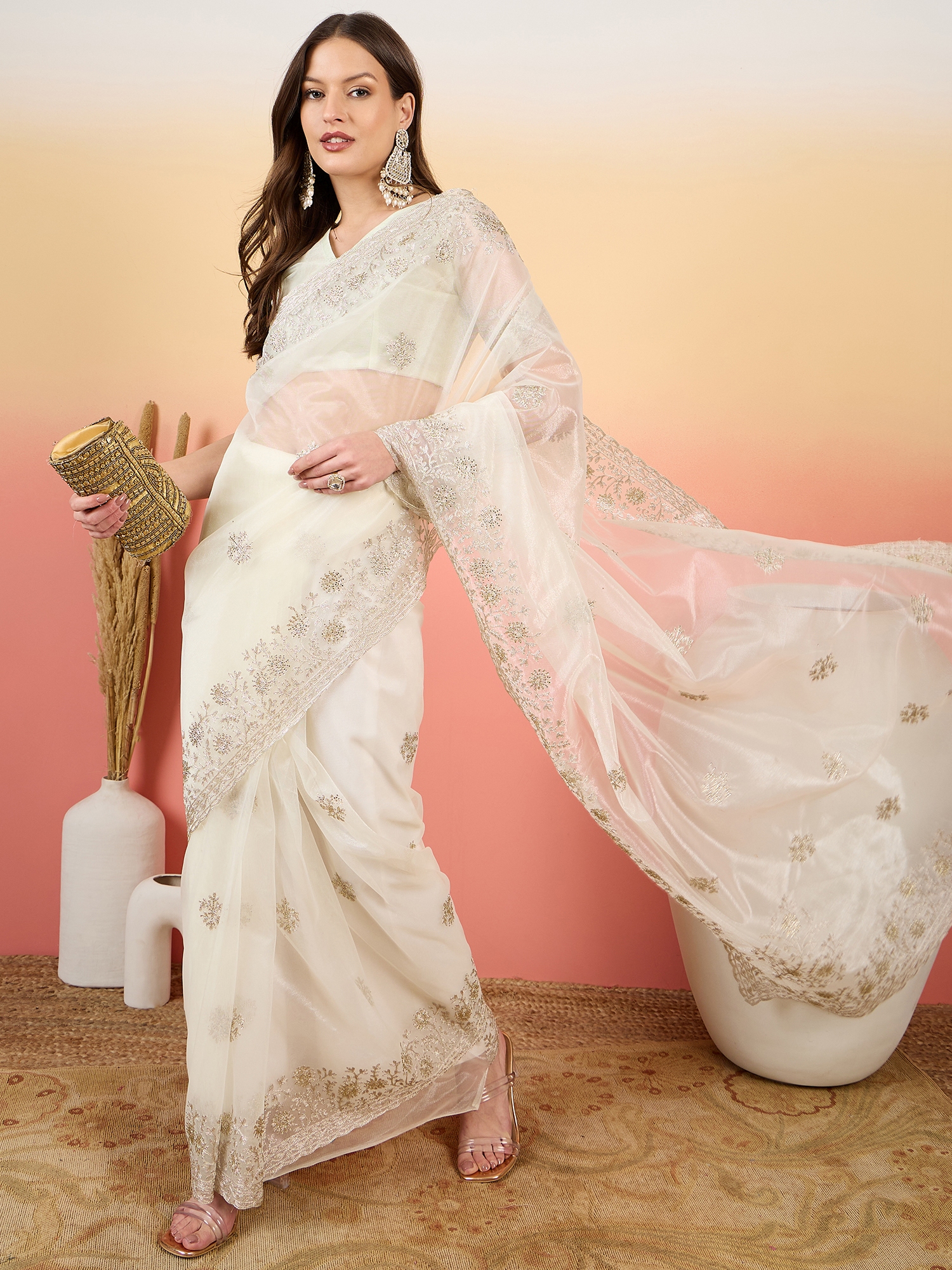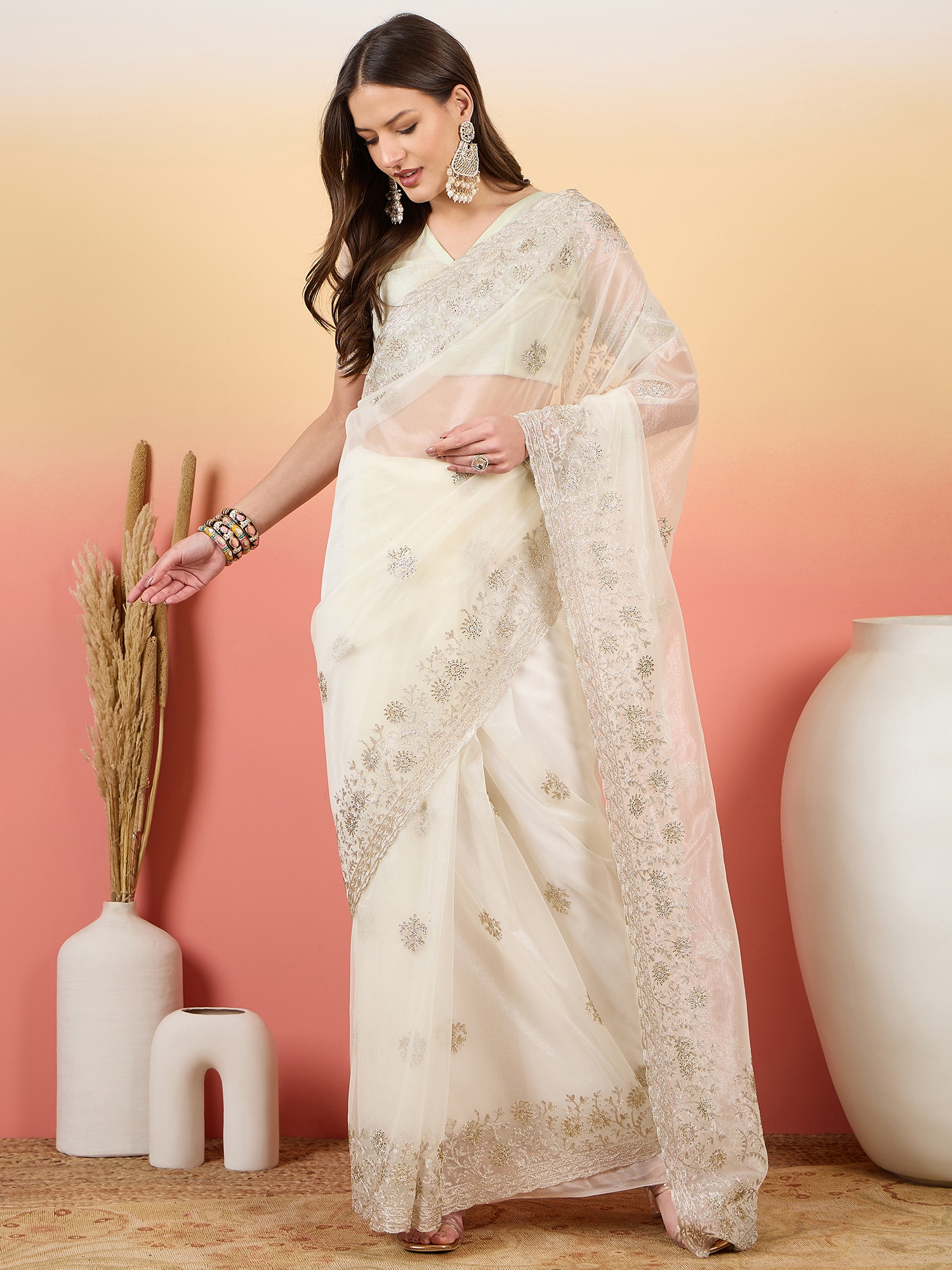 AASTHA FASHION Fashion Dream Womens Off White Twil Net Saree | Soft & Elegant Traditional Wear