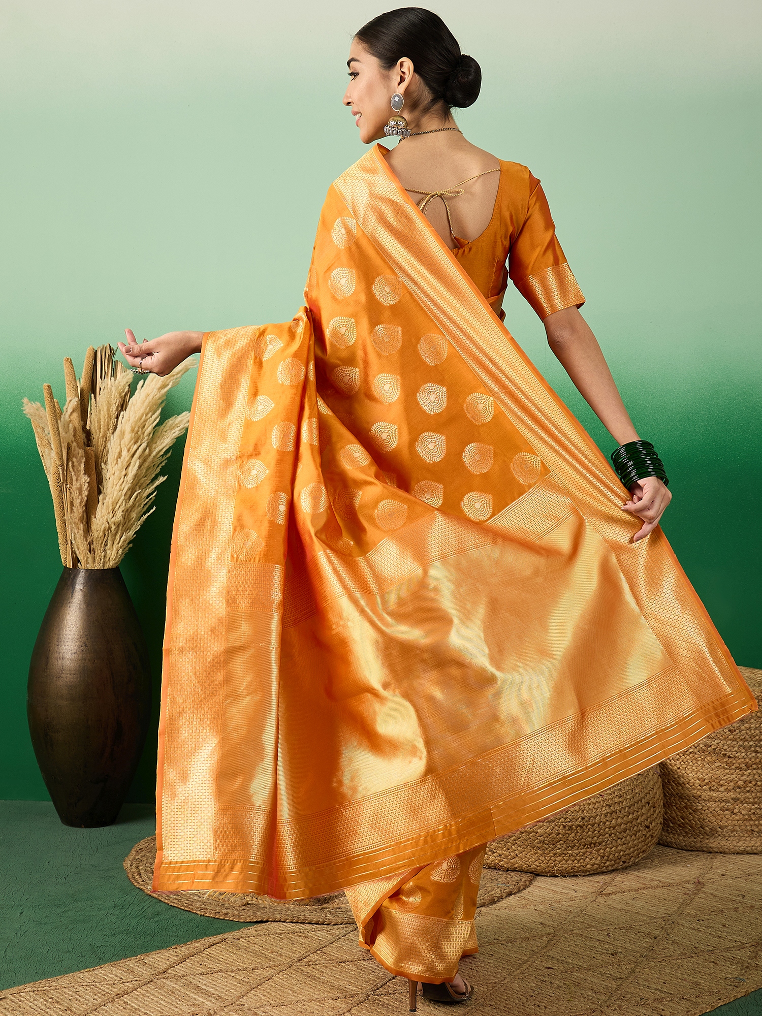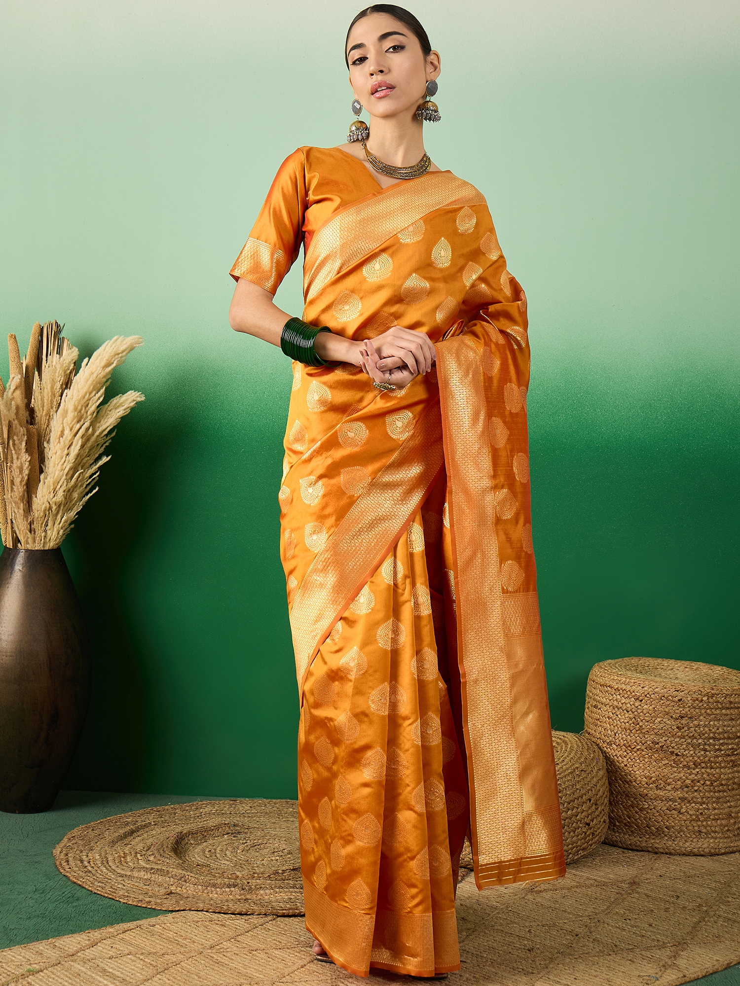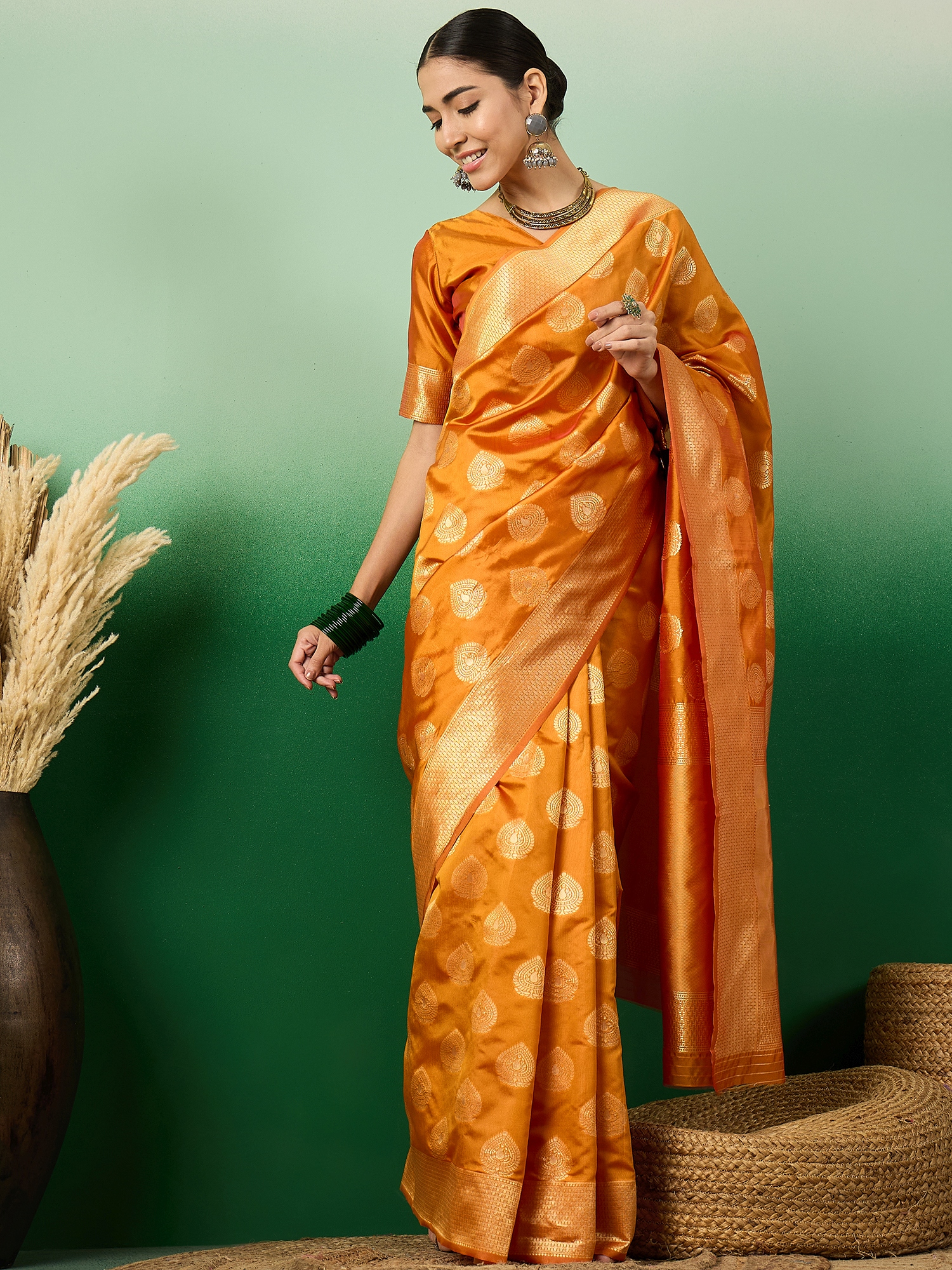 AASTHA FASHION Fashion Dream Womens Orange Banarasi Silk Saree | Soft & Elegant Traditional Wear