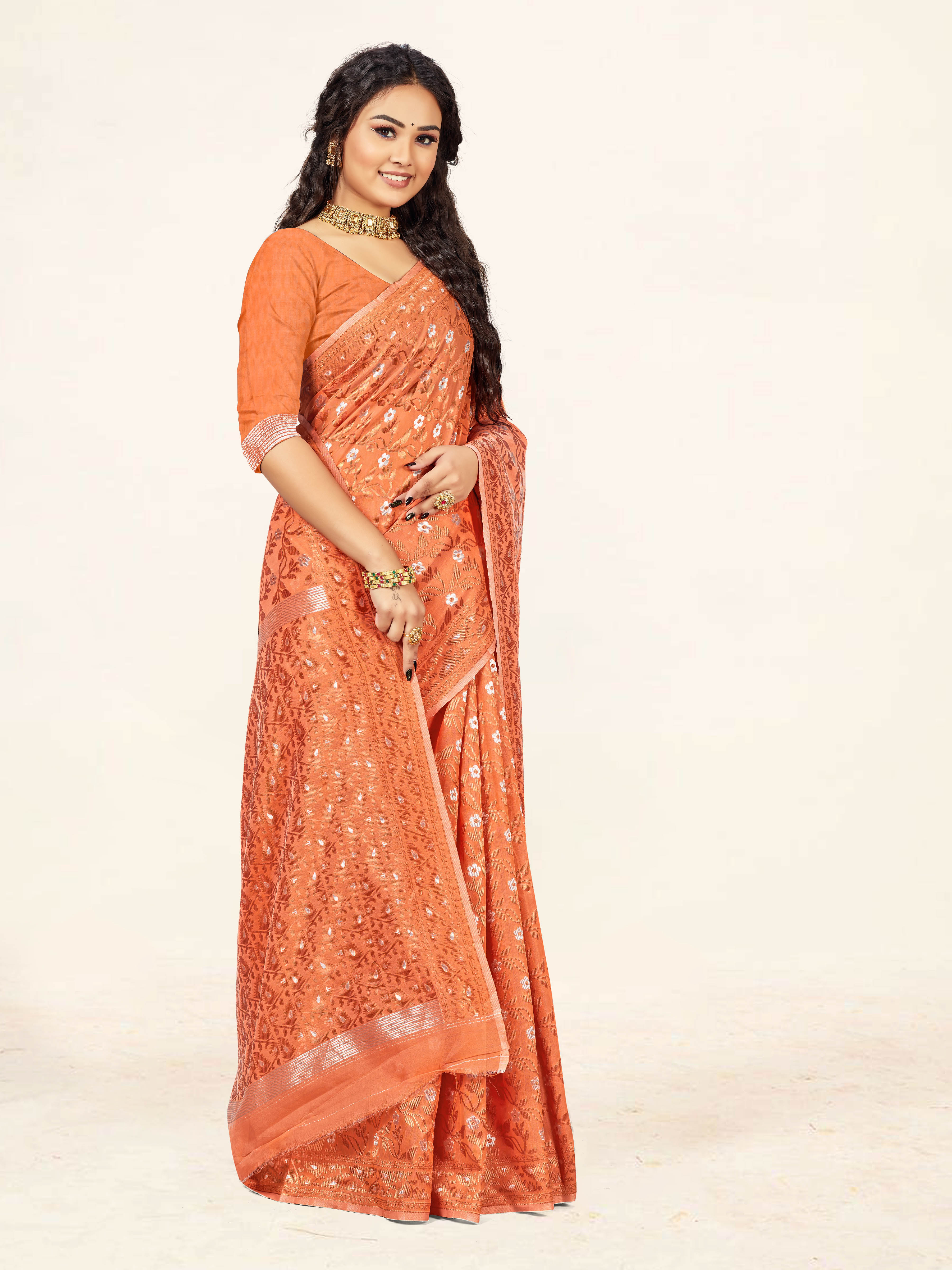 AASTHA FASHION Fashion Dream Womens Peach Cotton Saree | Soft & Elegant Traditional Wear