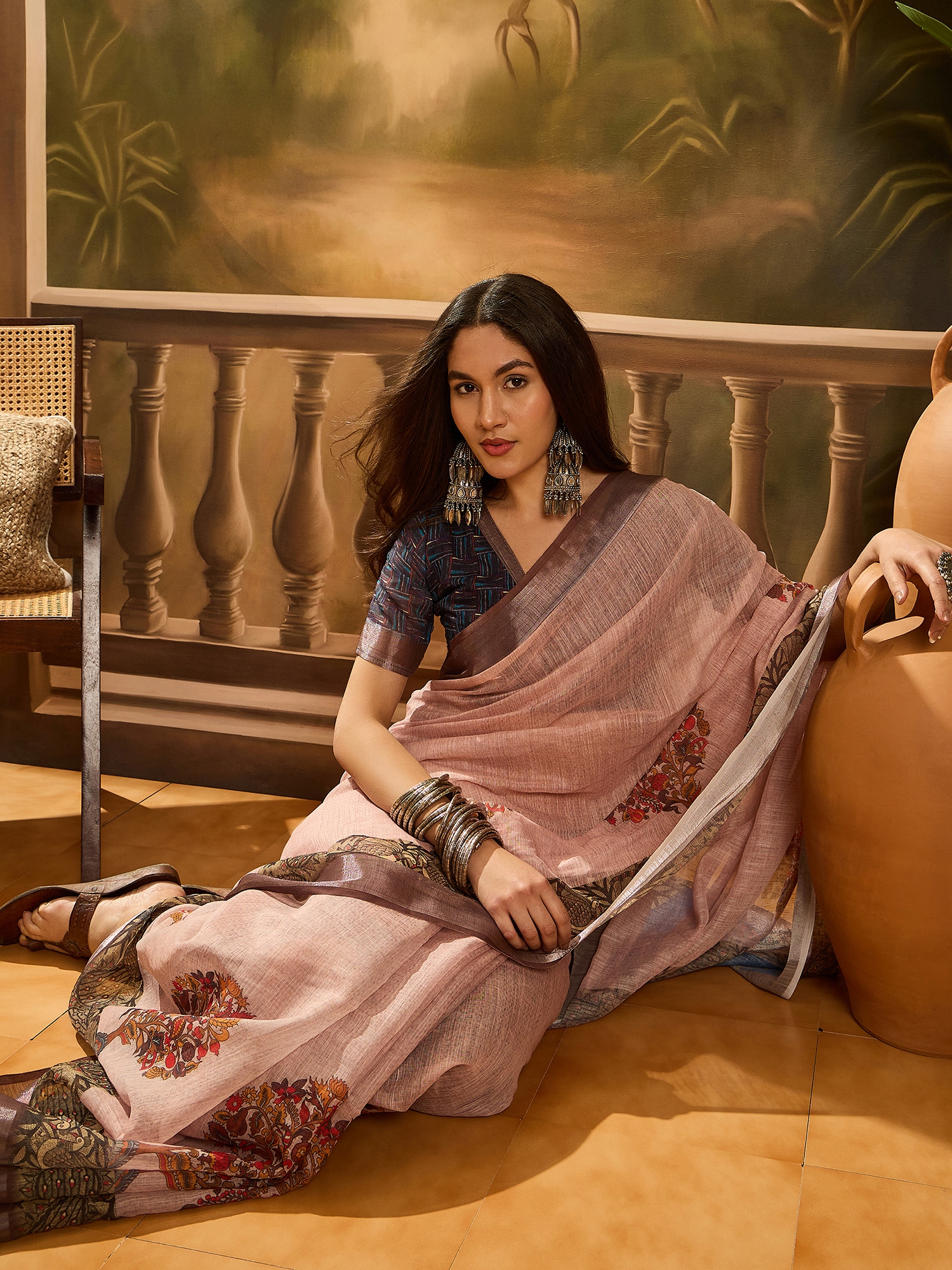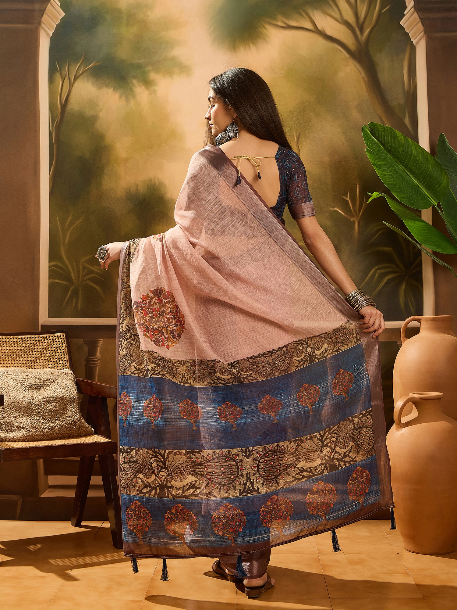 AASTHA FASHION Fashion Dream Womens Peach Linen Cotton Blend Saree | Soft & Elegant Traditional Wear