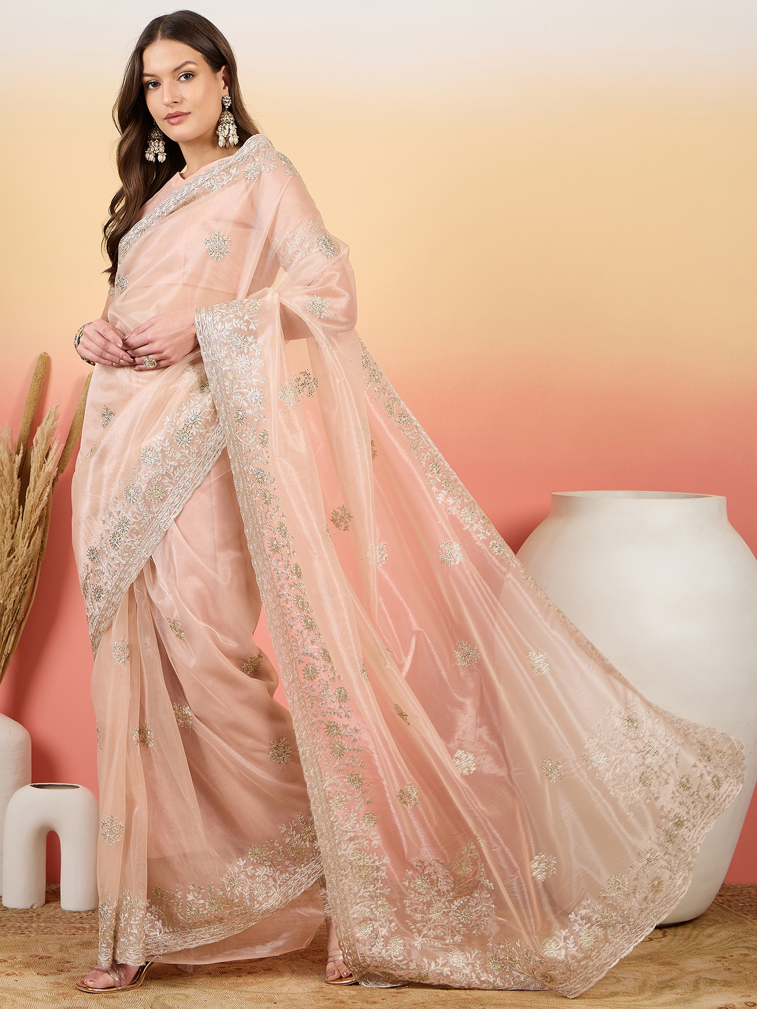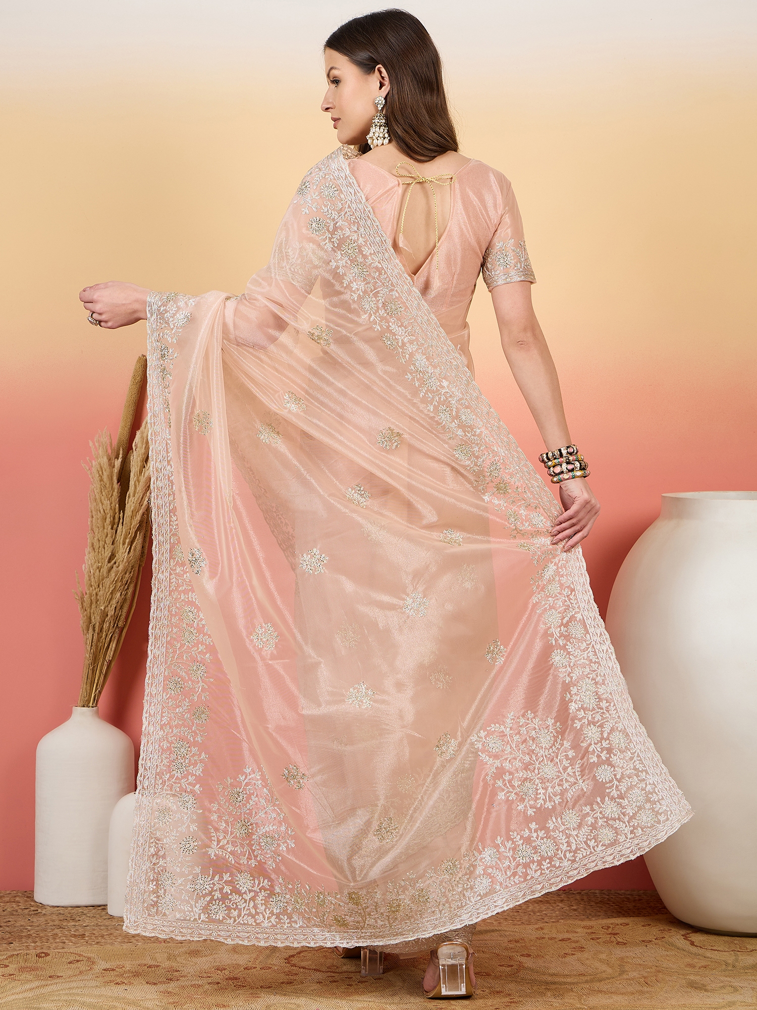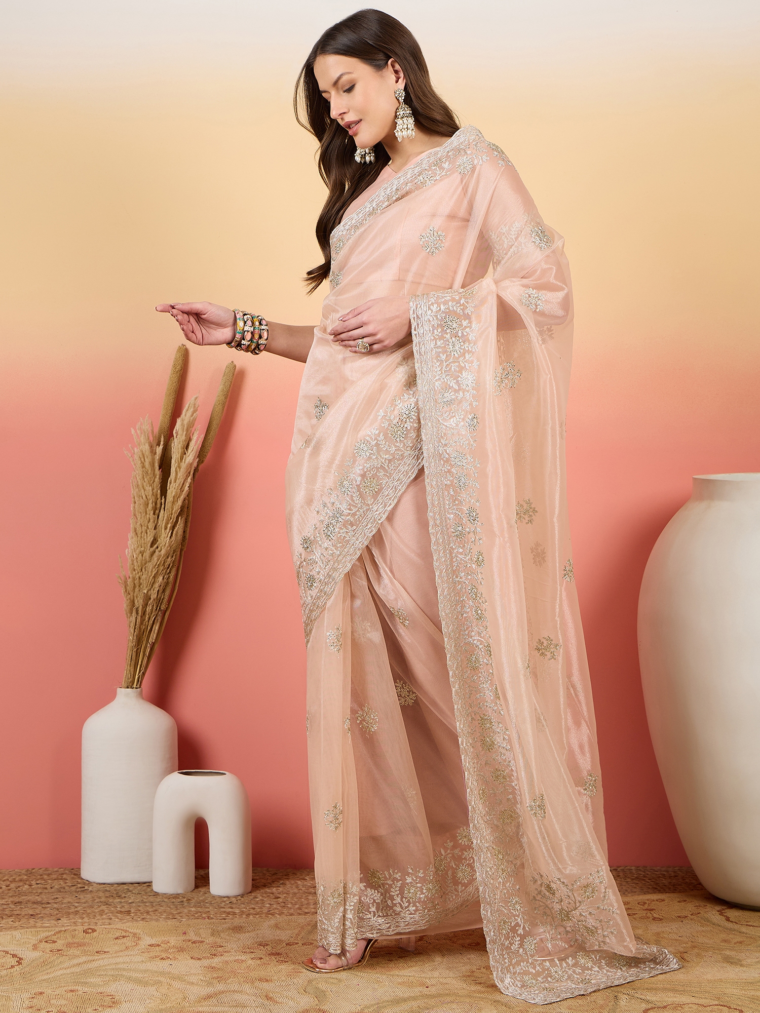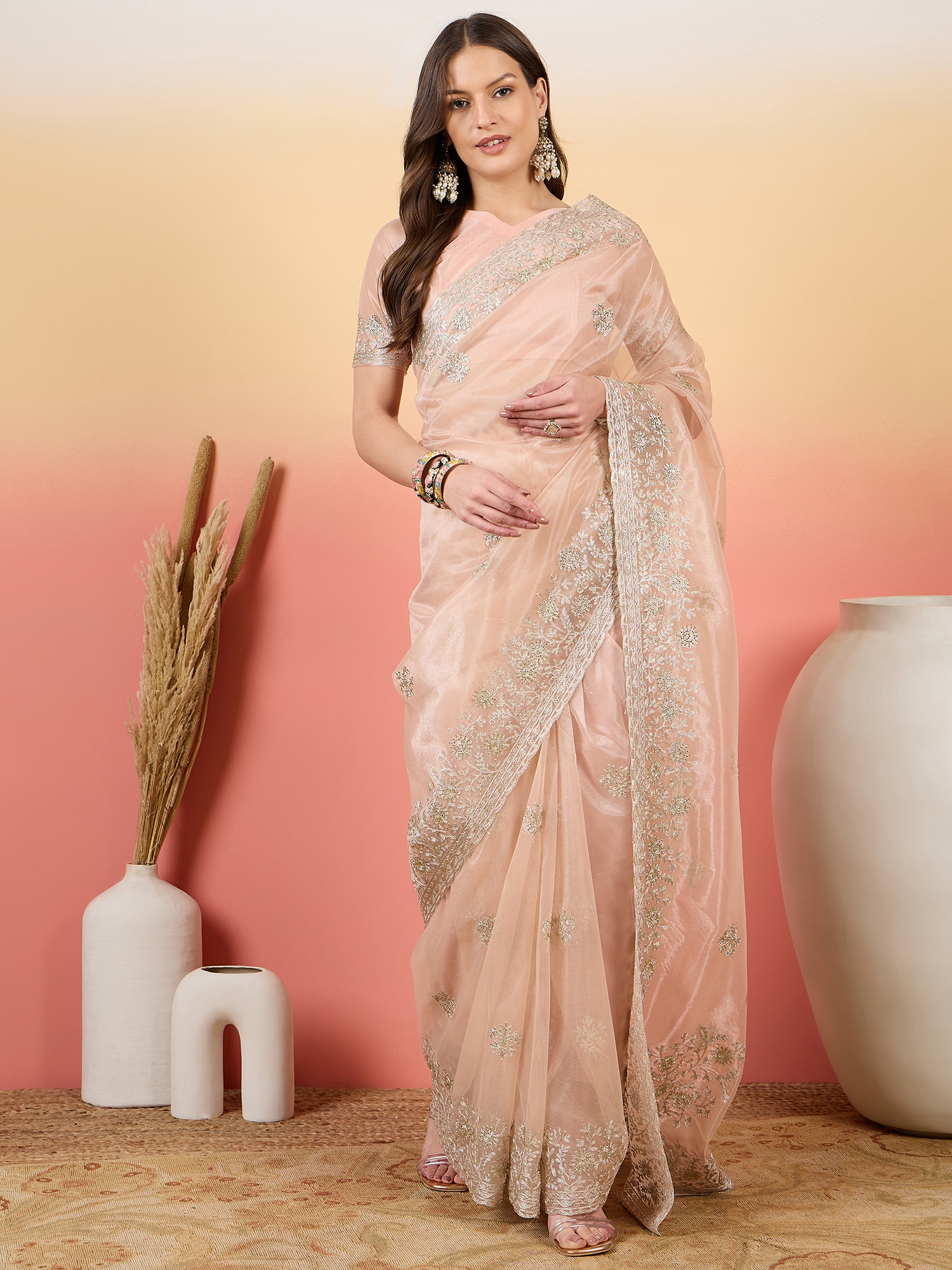 AASTHA FASHION Fashion Dream Womens Peach Twil Net Saree | Soft & Elegant Traditional Wear