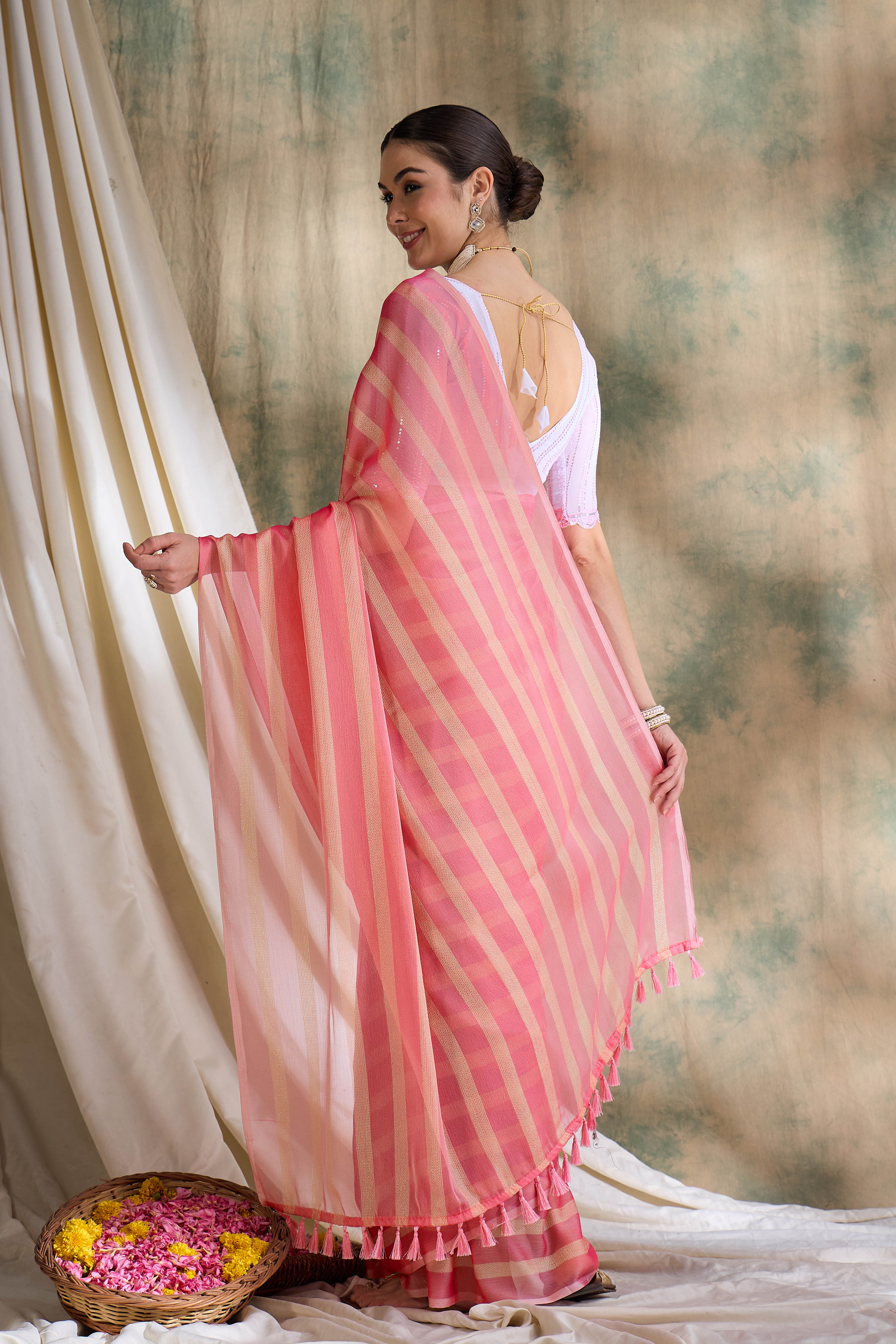 AASTHA FASHION Fashion Dream Womens Peach Vichitra Silk Saree | Soft & Elegant Traditional Wear