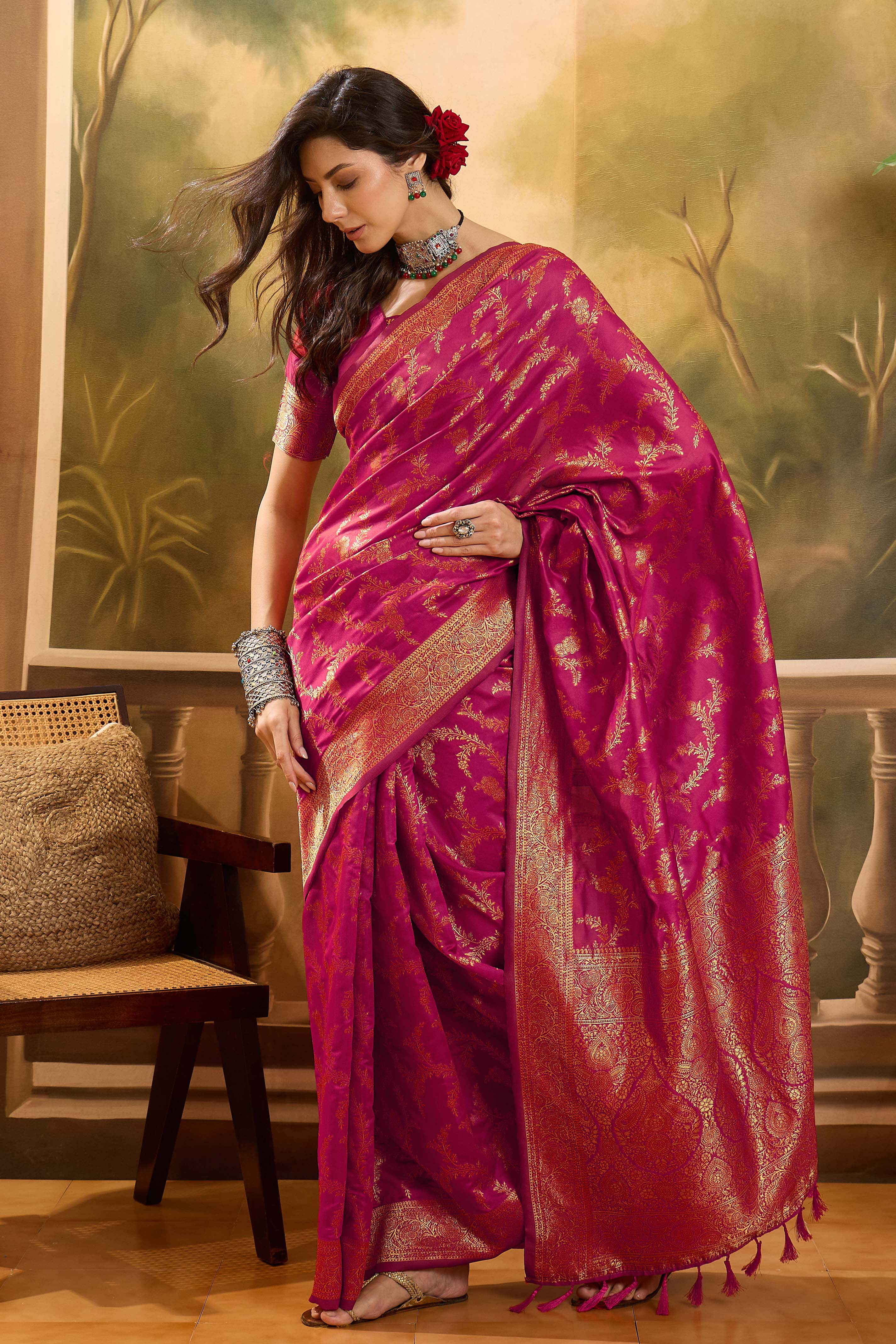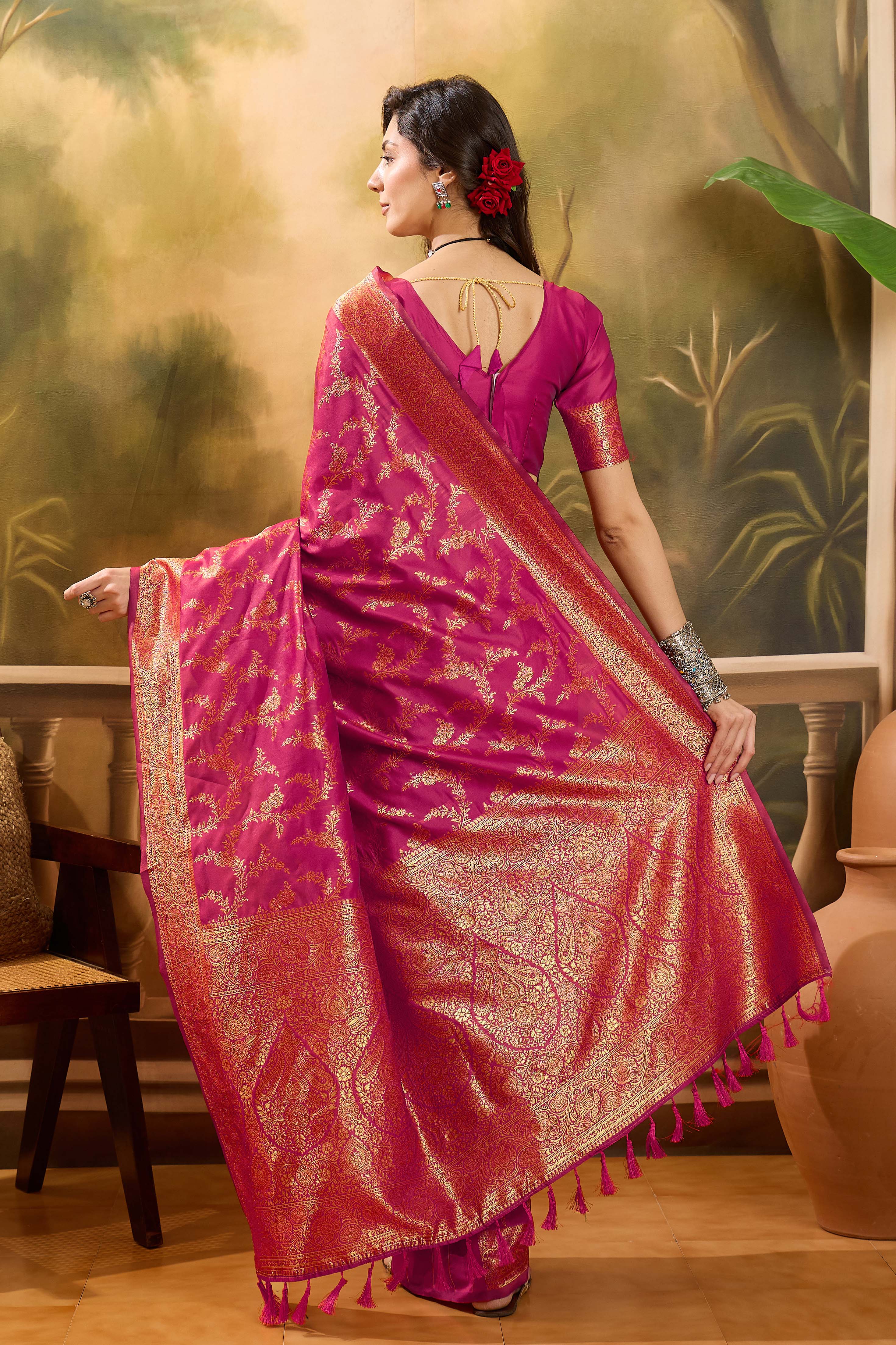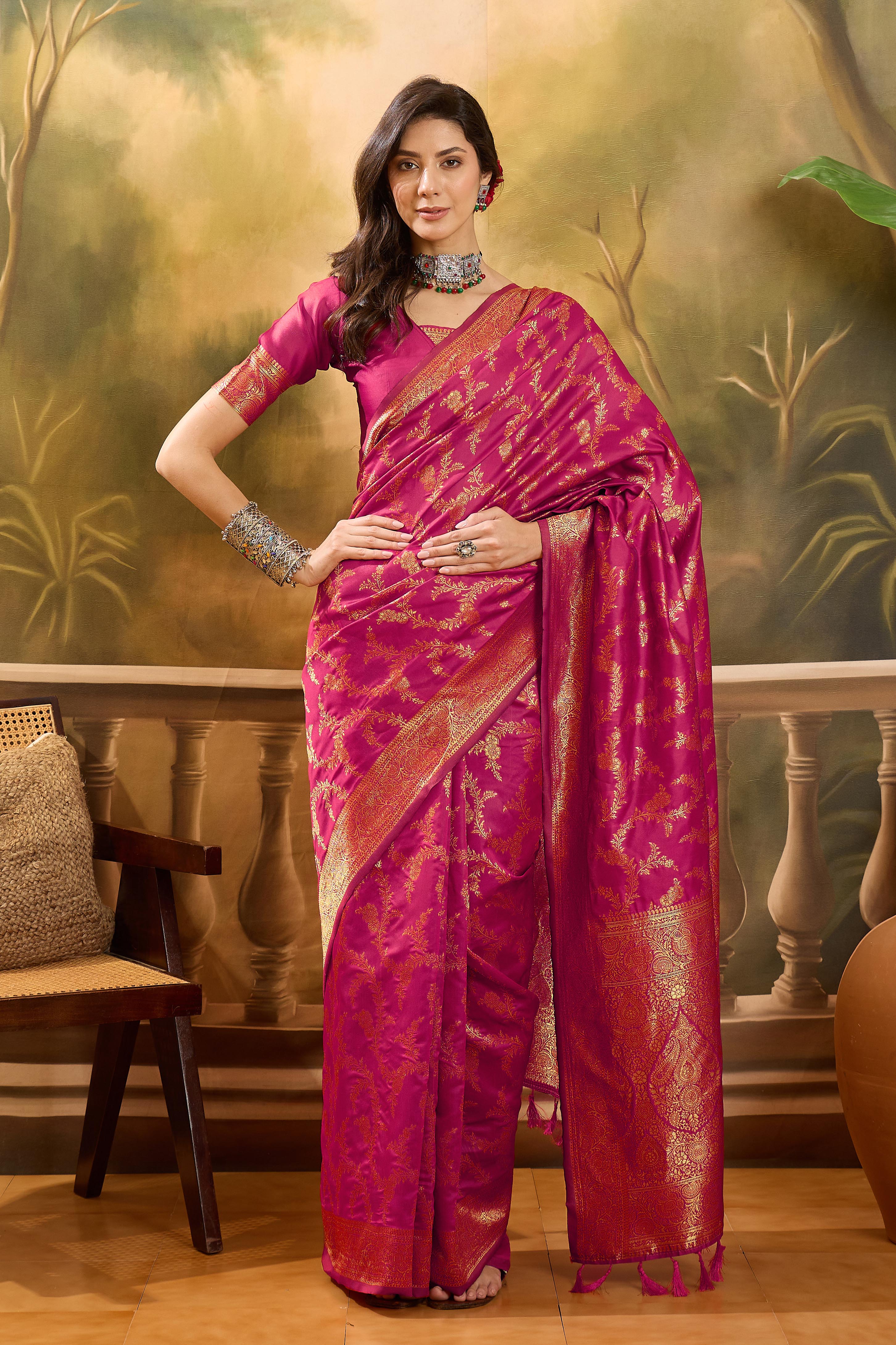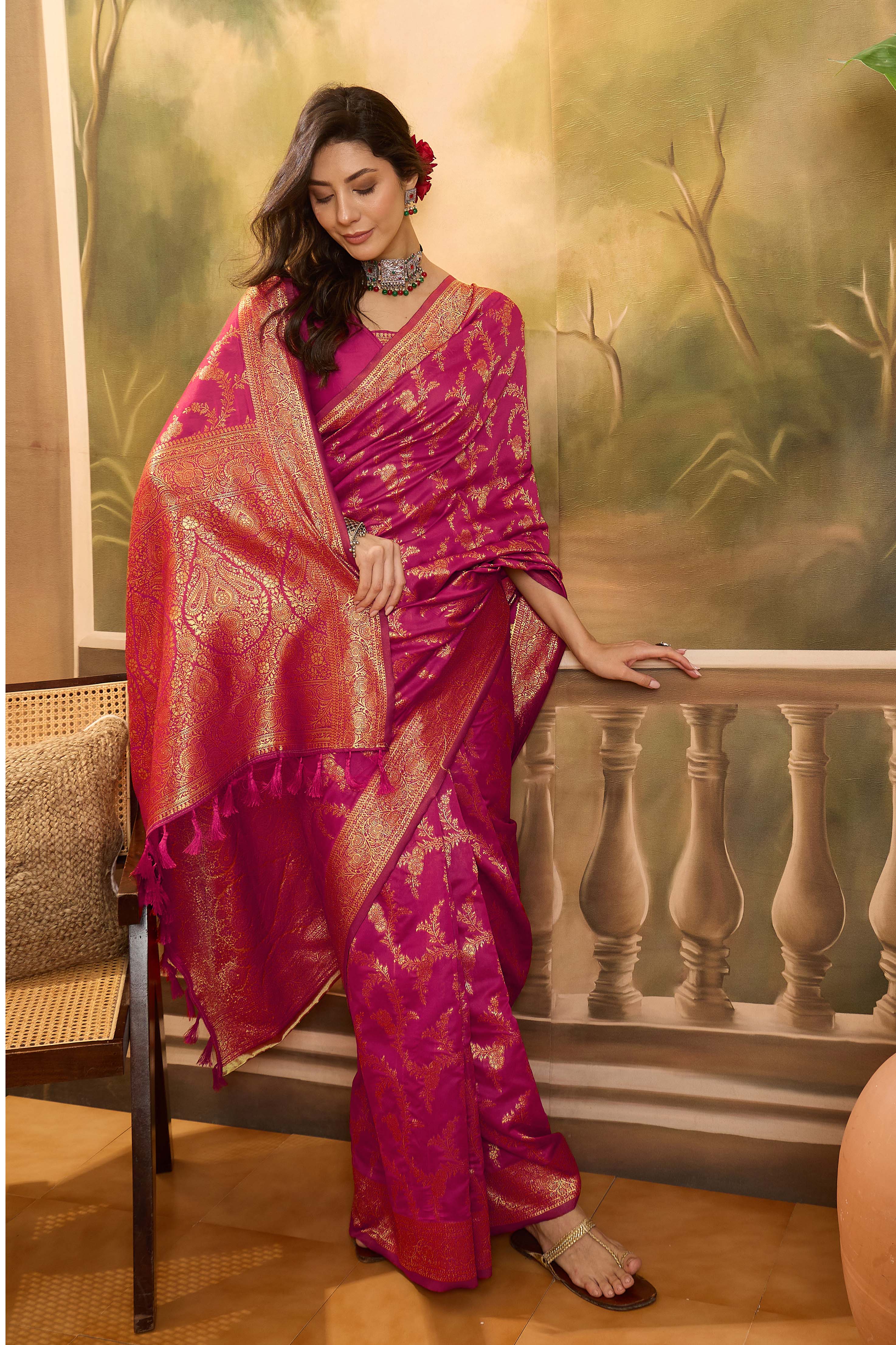 AASTHA FASHION Fashion Dream Womens Pink Banarasi Jacquard Saree | Soft & Elegant Traditional Wear