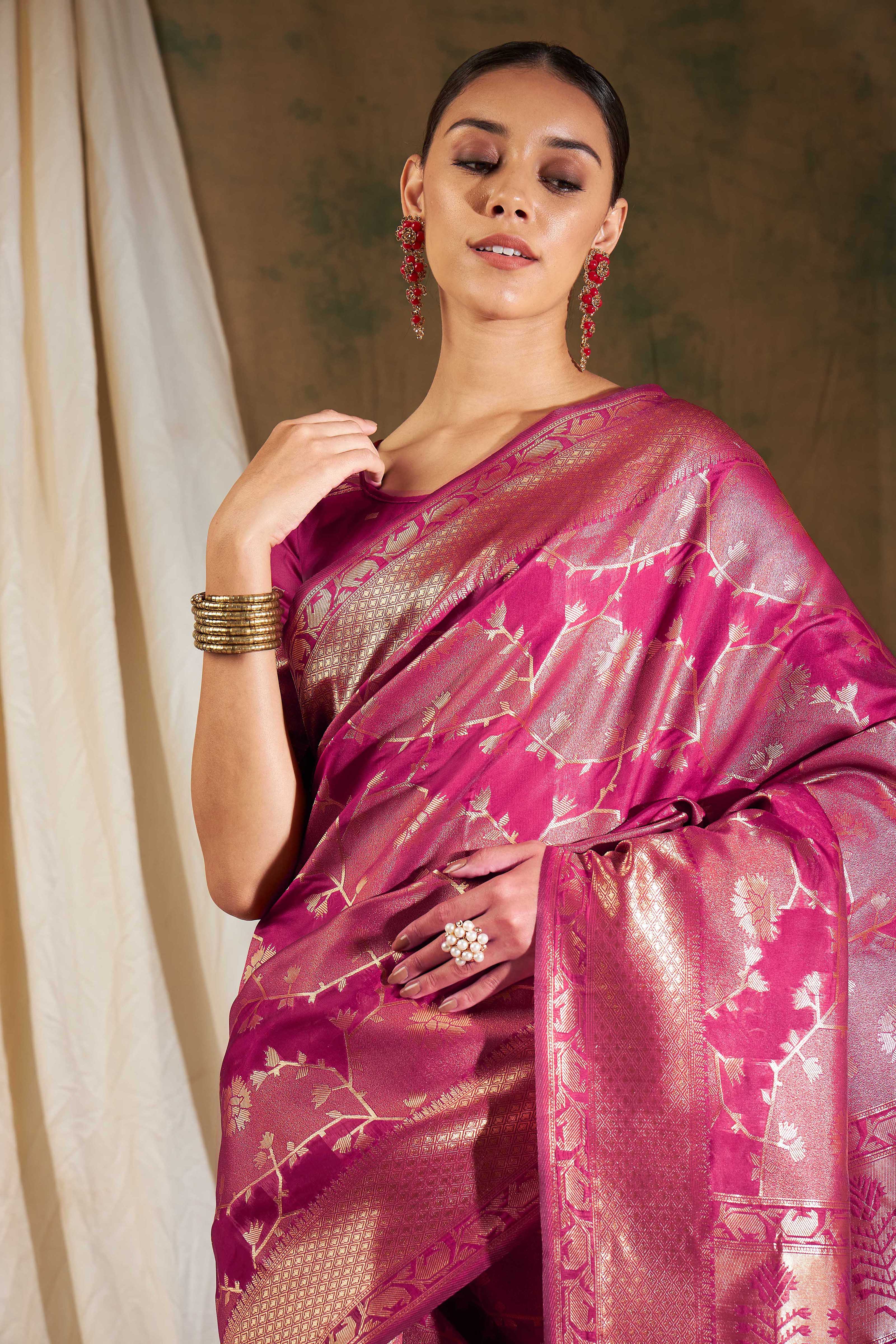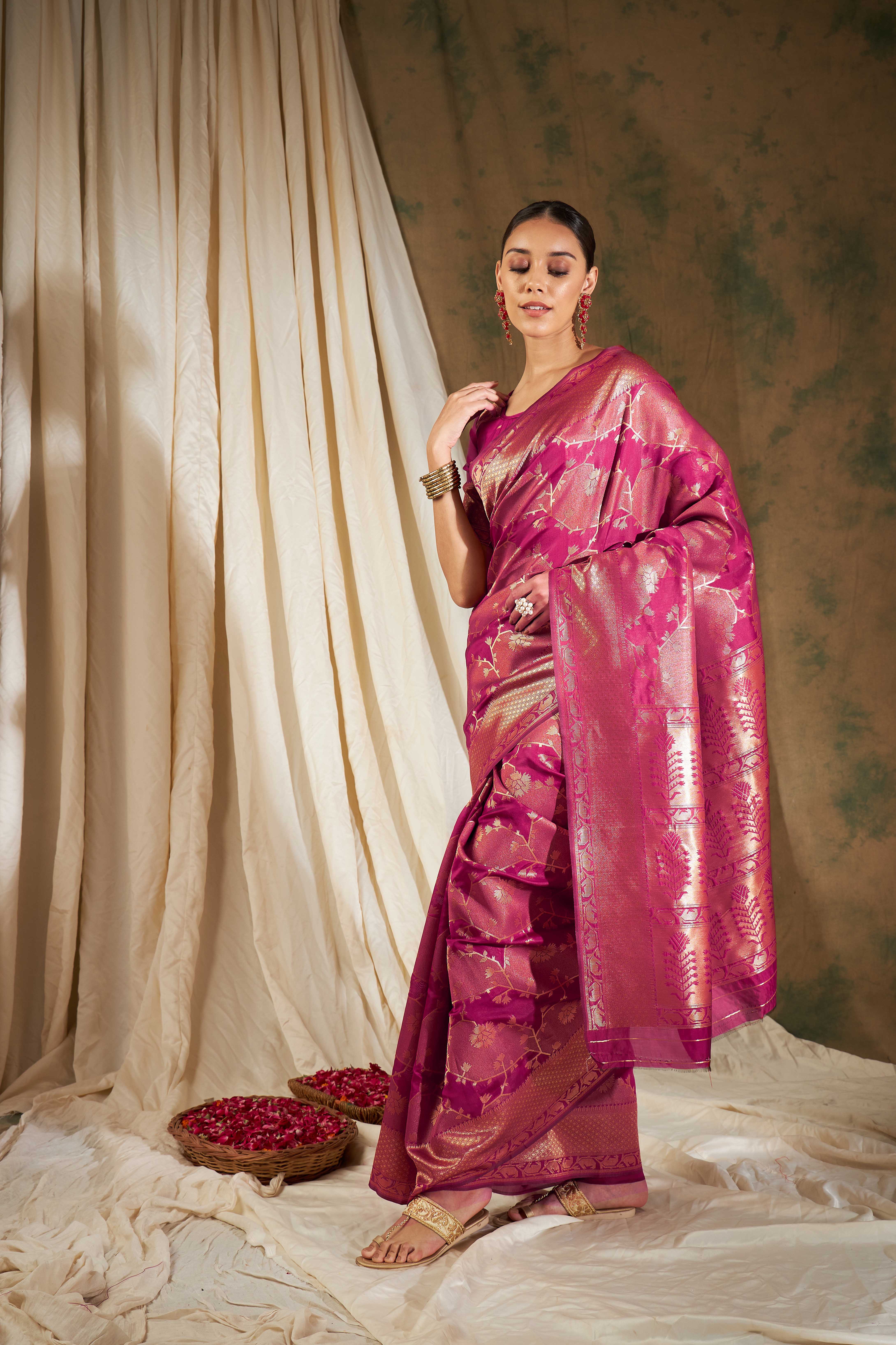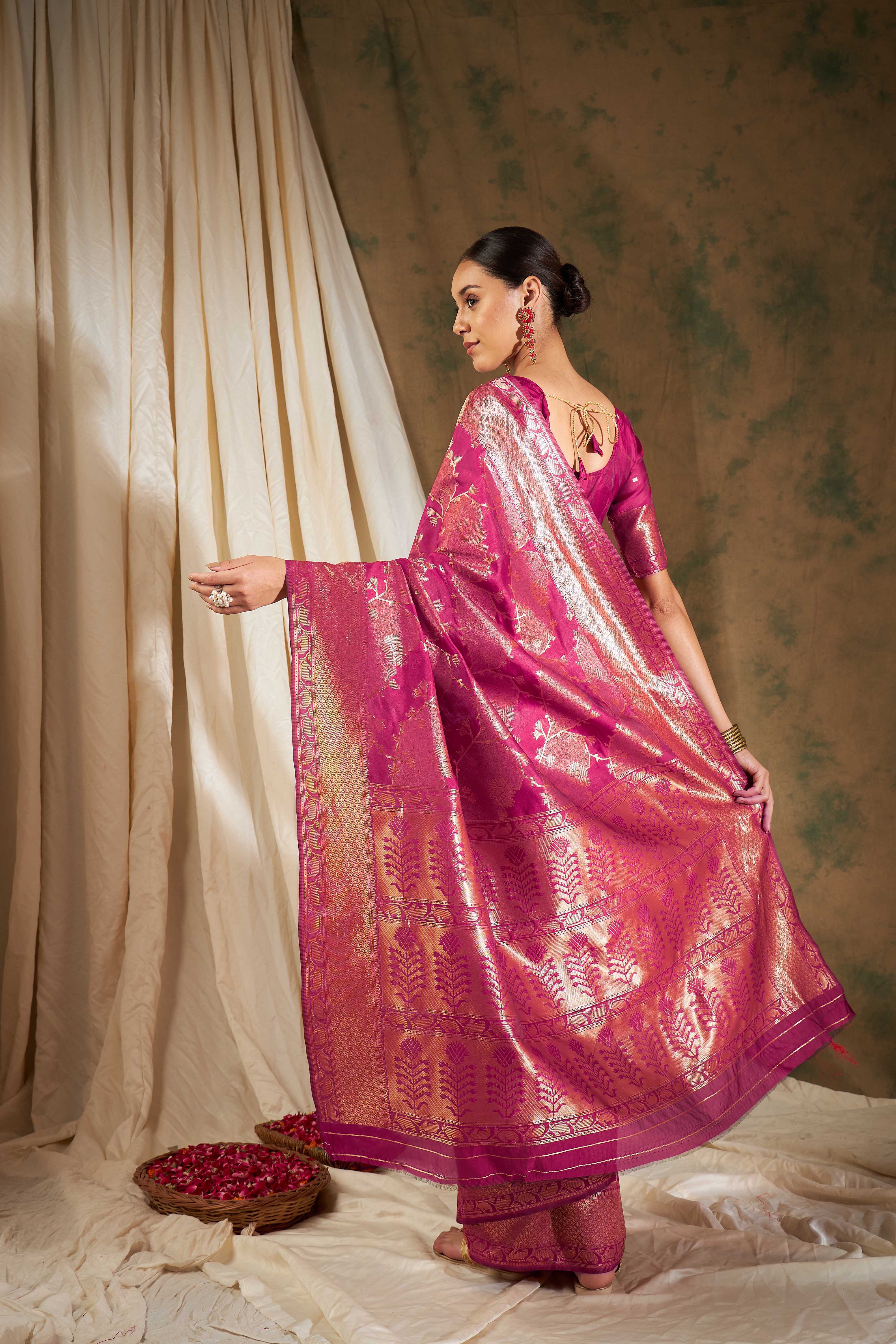 AASTHA FASHION Fashion Dream Womens Pink Banarasi Silk Saree | Soft & Elegant Traditional Wear