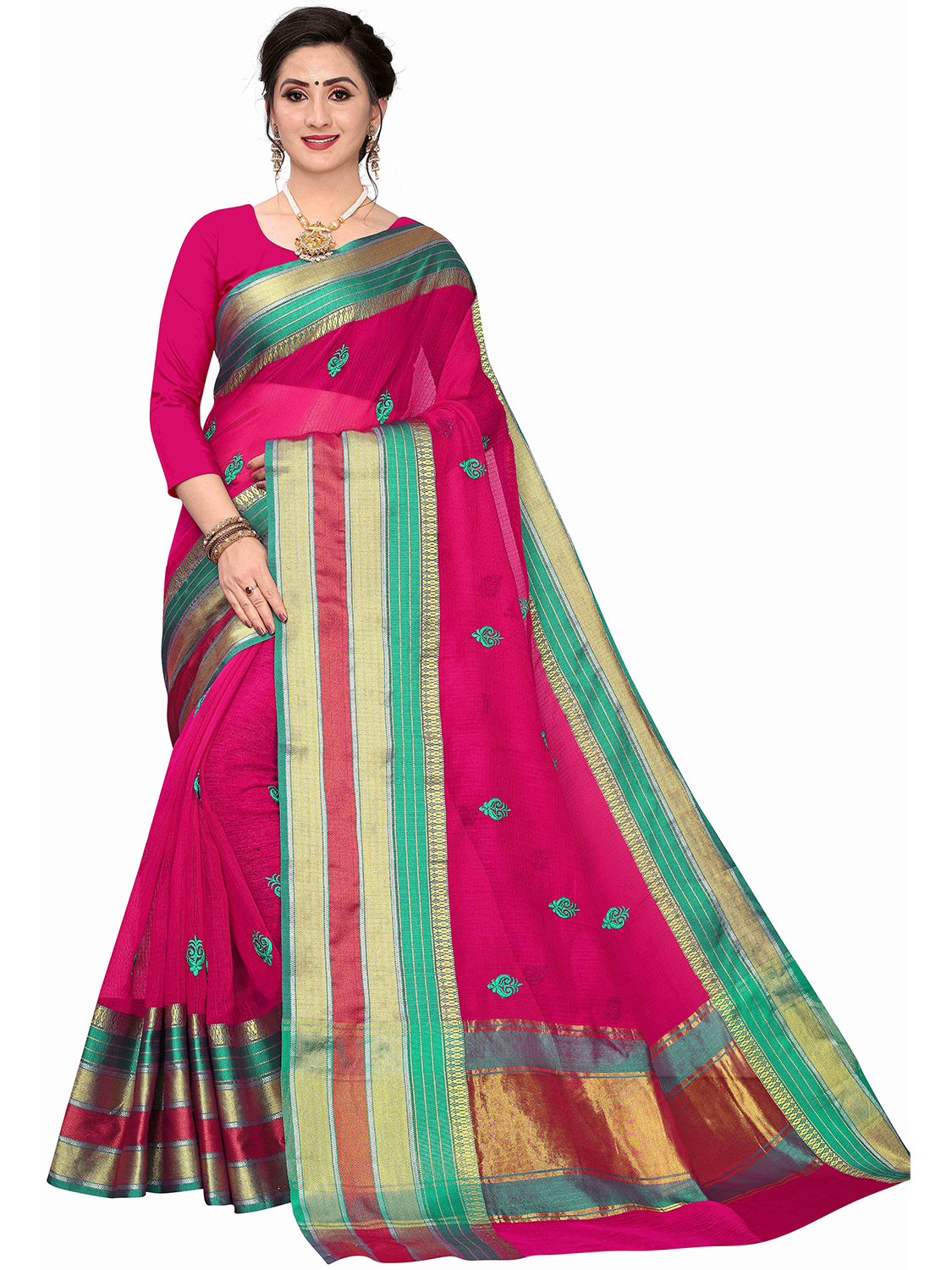 • Saree Fabric-Cotton Silk ,Blouse Fabric-Silk Blend