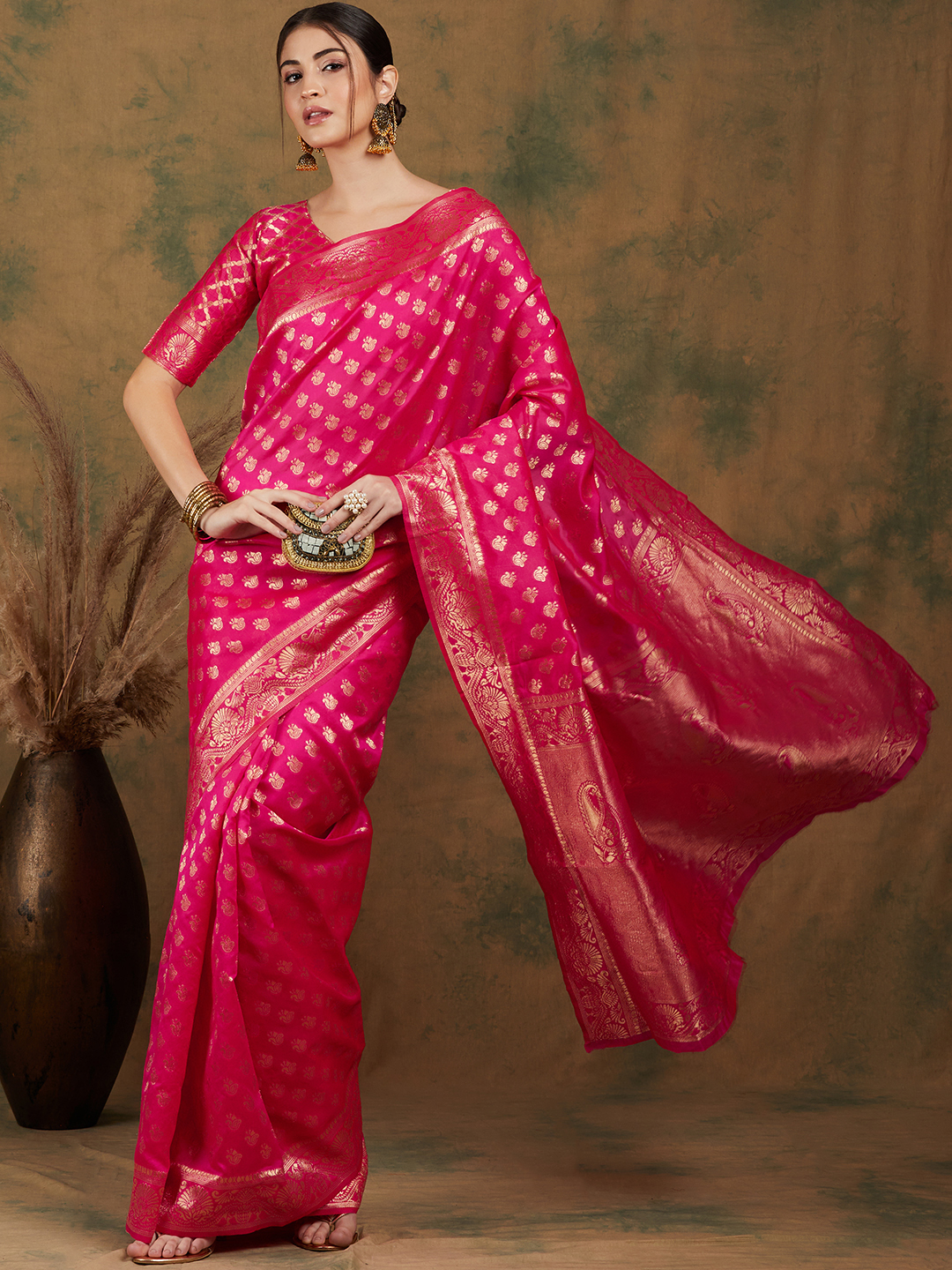 • Saree Fabric-Kanjivaram Silk ,Blouse Fabric-Kanjivaram Silk