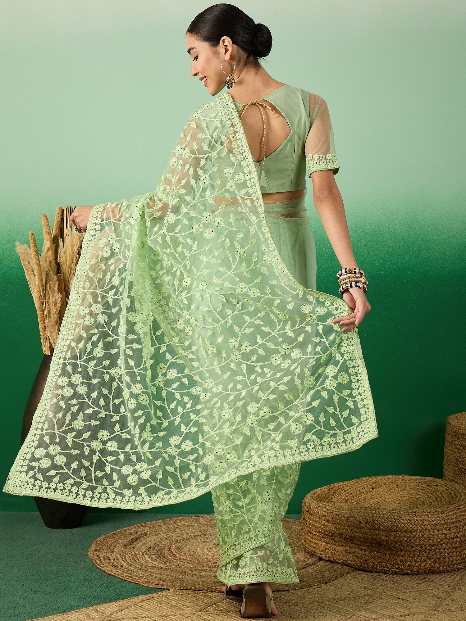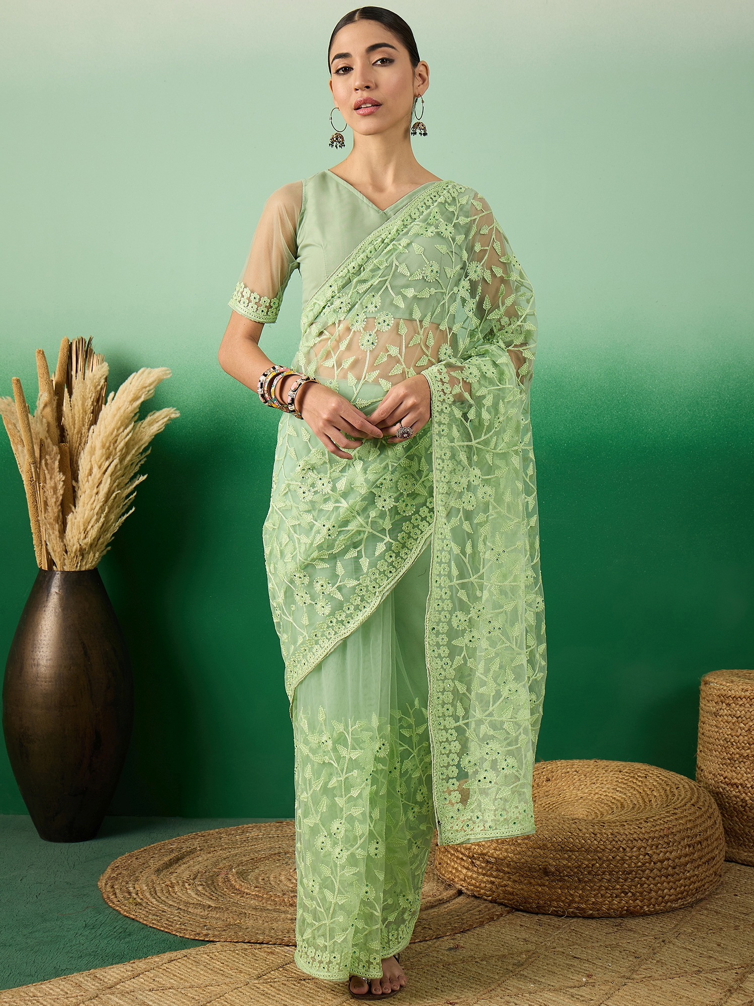 AASTHA FASHION Fashion Dream Womens Pista Green Net Saree | Soft & Elegant Traditional Wear