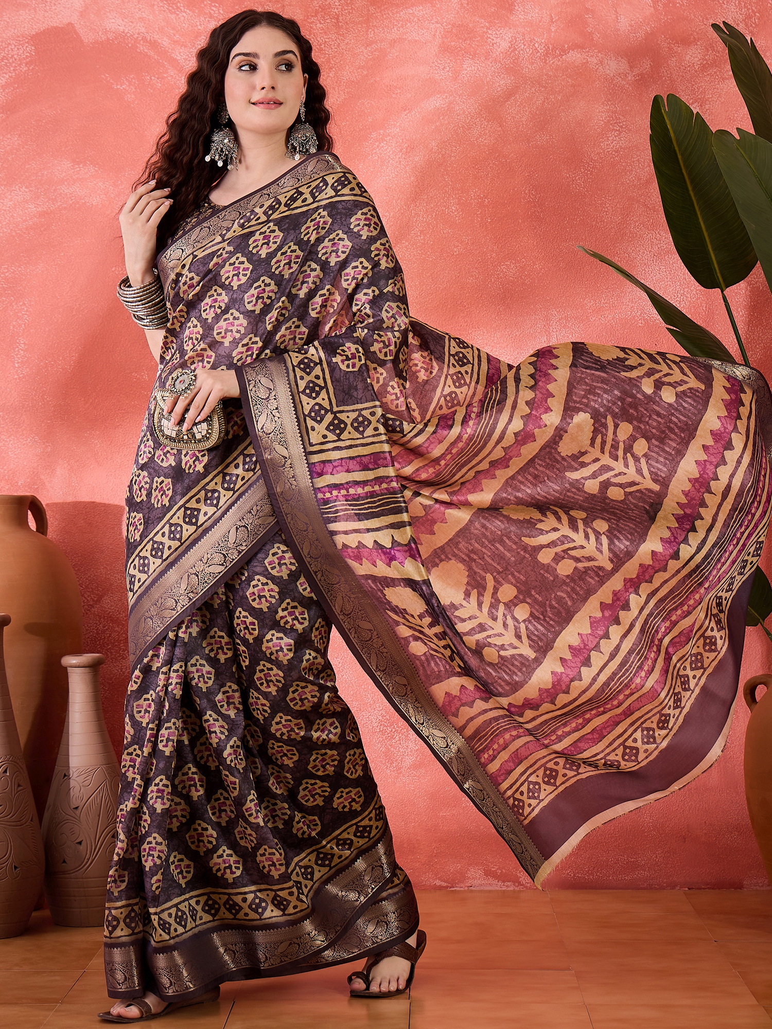 Elevate your ethnic wardrobe with this elegant AASTHA FASHION Womens Blend Saree, designed to offer a perfect balance of comfort and traditional style. Crafted from a premium blend fabric, this saree provides a smooth texture, graceful drape, and lasting durability. The rich look and versatile design make it suitable for daily wear, festive occasions, office functions, and social gatherings. Its lightweight feel ensures all-day comfort, while the refined finish adds a touch of sophistication to your appearance.