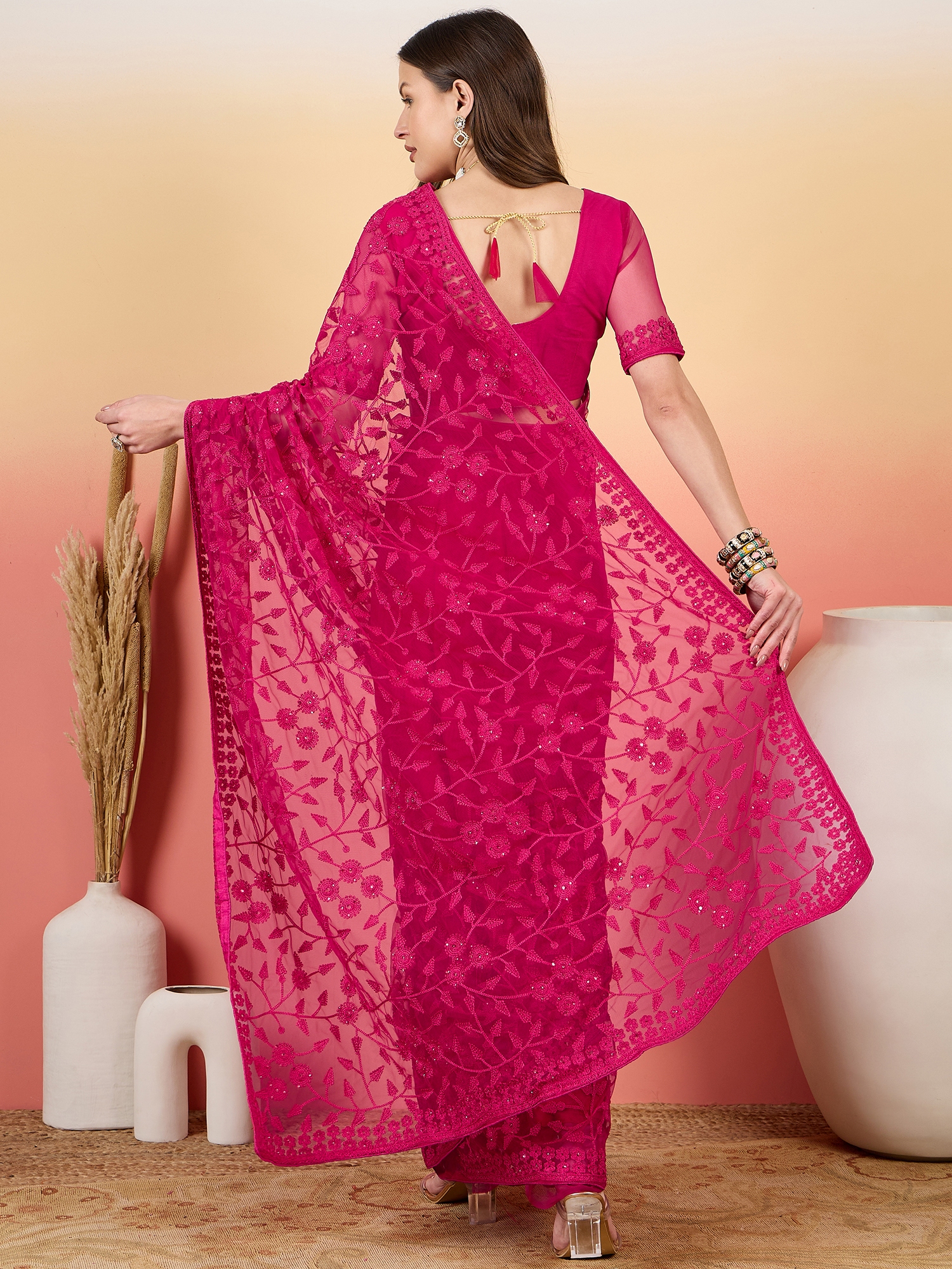 AASTHA FASHION Fashion Dream Womens Rani Net Saree | Soft & Elegant Traditional Wear