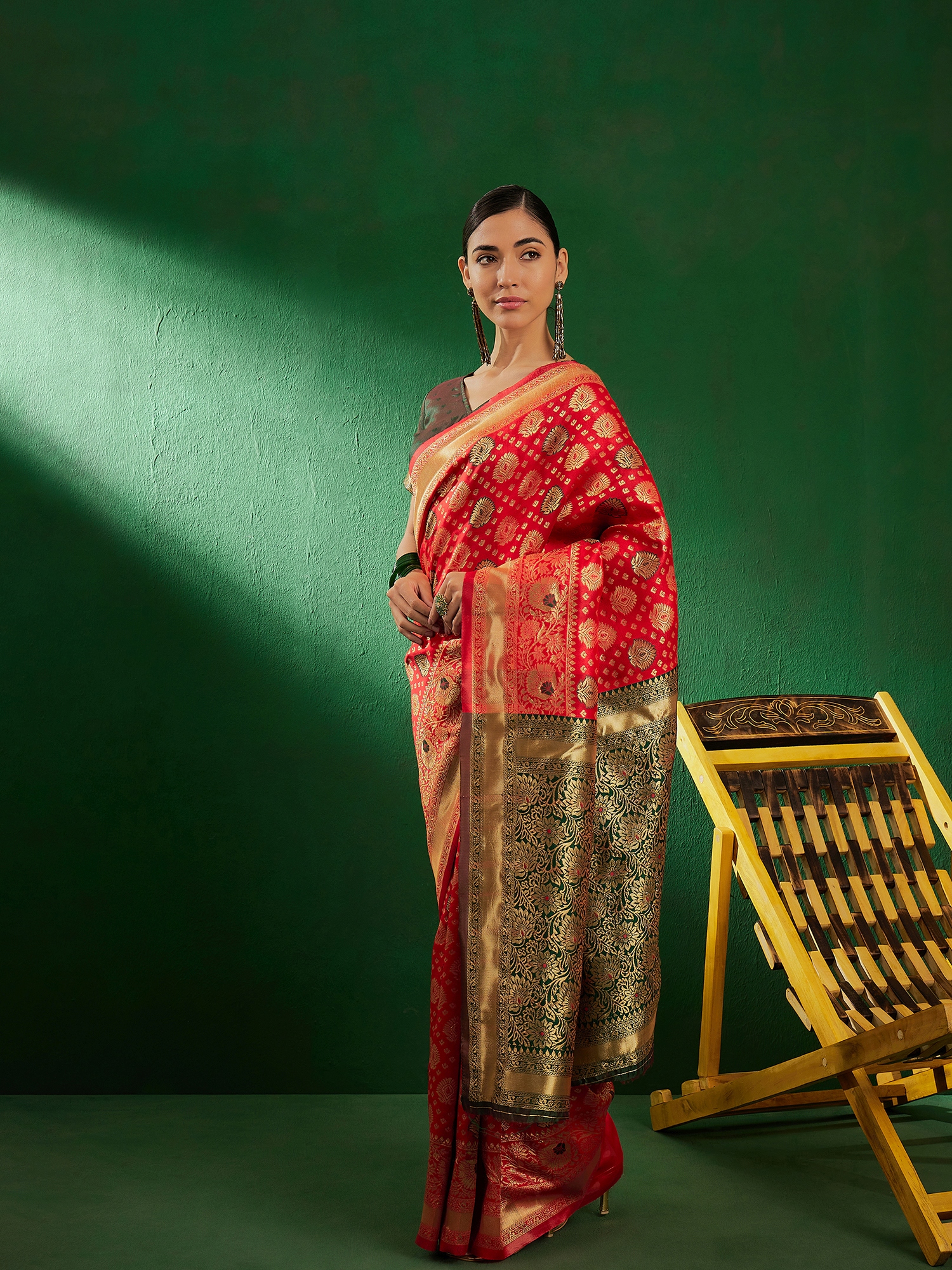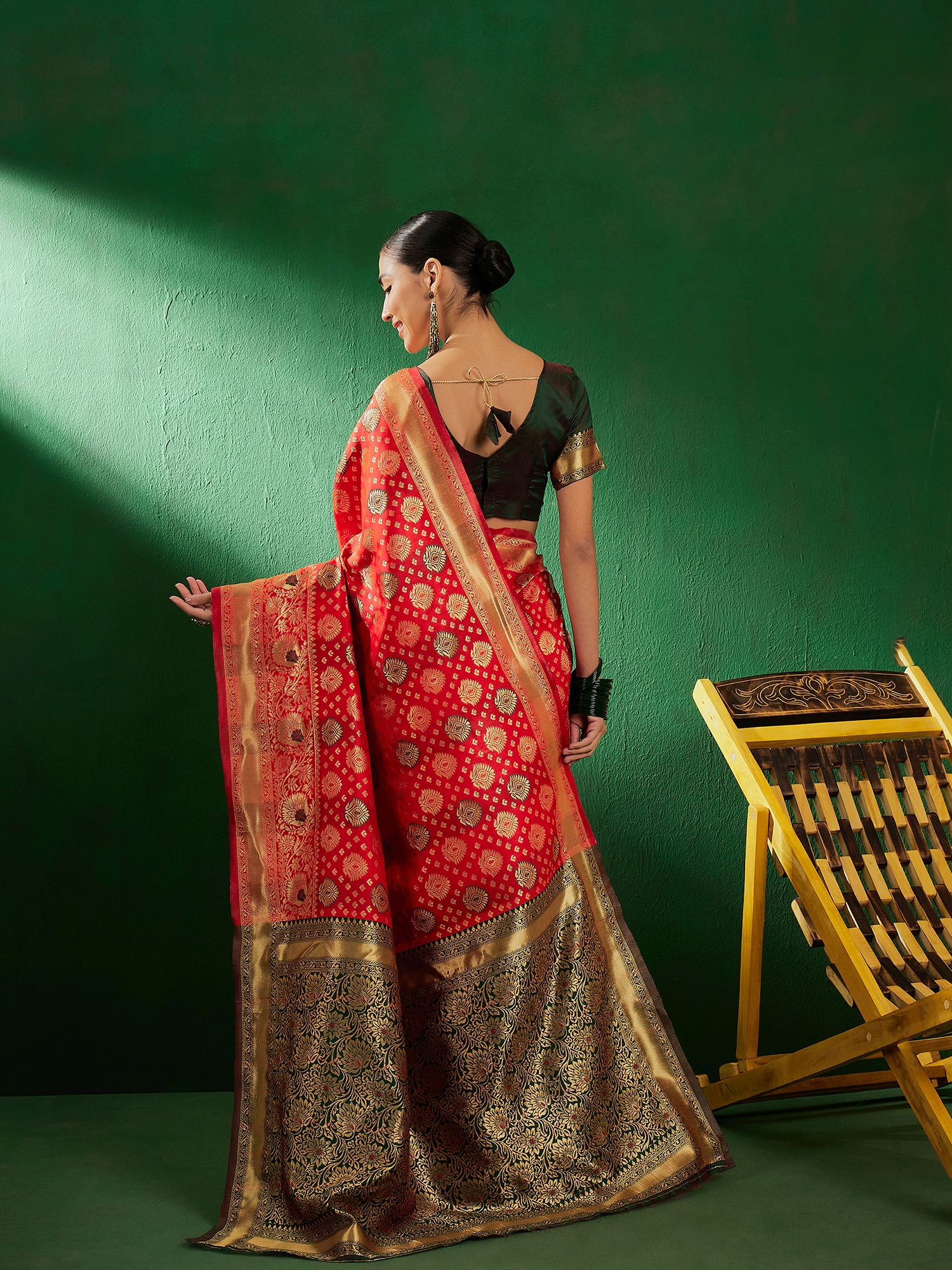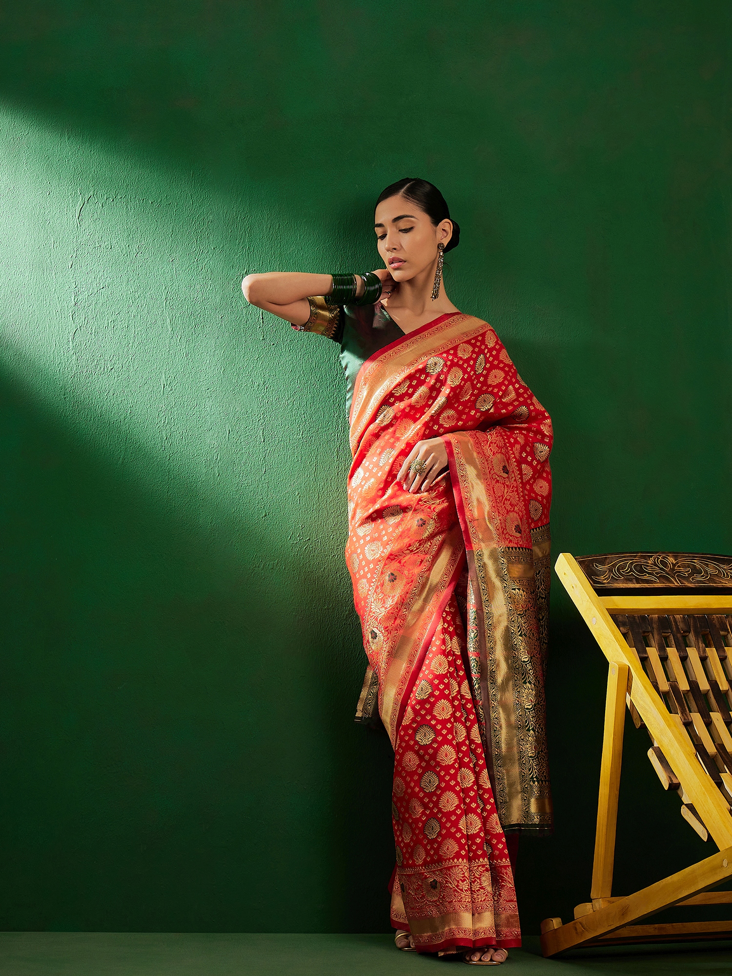 AASTHA FASHION Fashion Dream Womens Red Banarasi Silk Saree | Soft & Elegant Traditional Wear