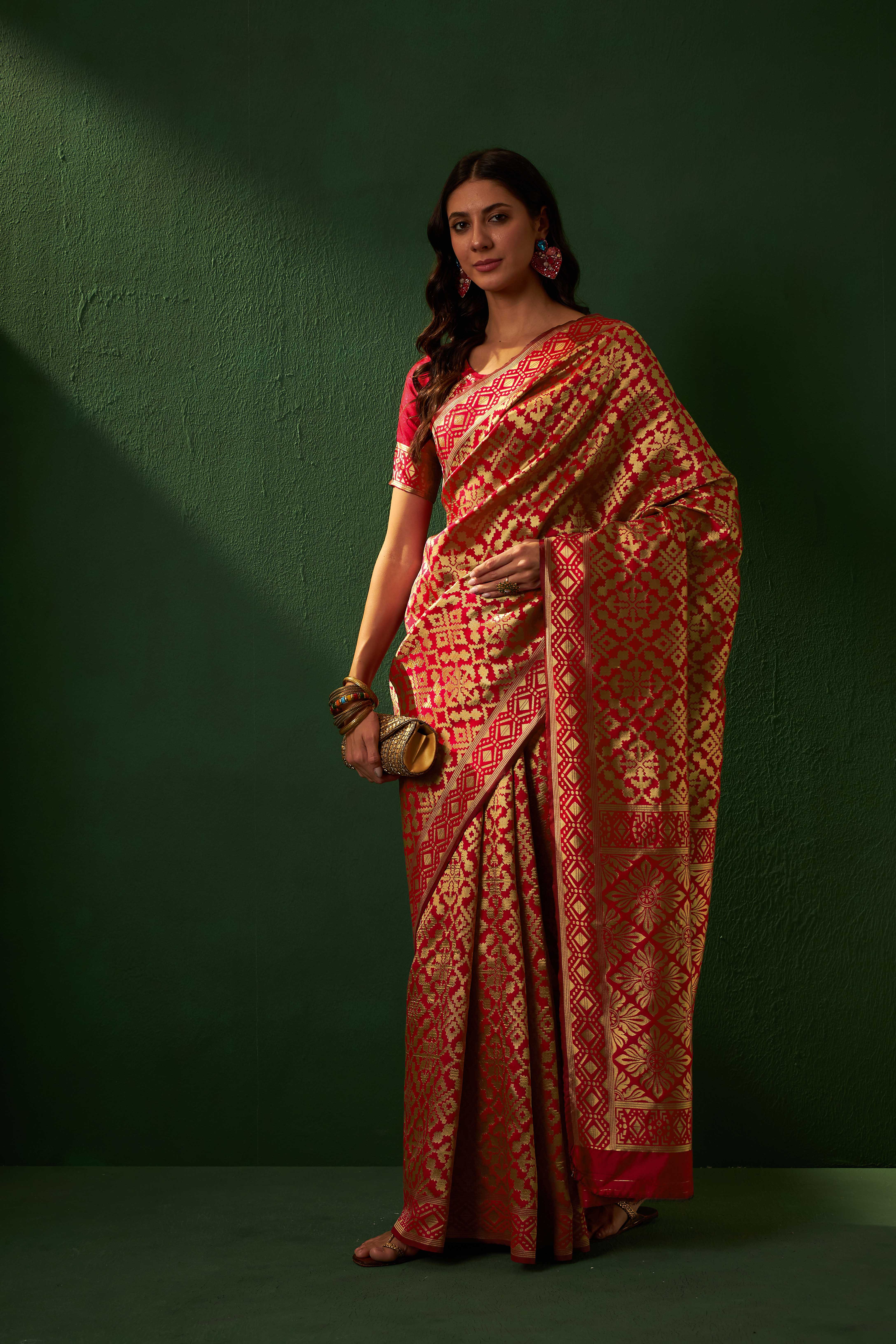 AASTHA FASHION Fashion Dream Womens Red Banarasi Silk Saree | Soft & Elegant Traditional Wear