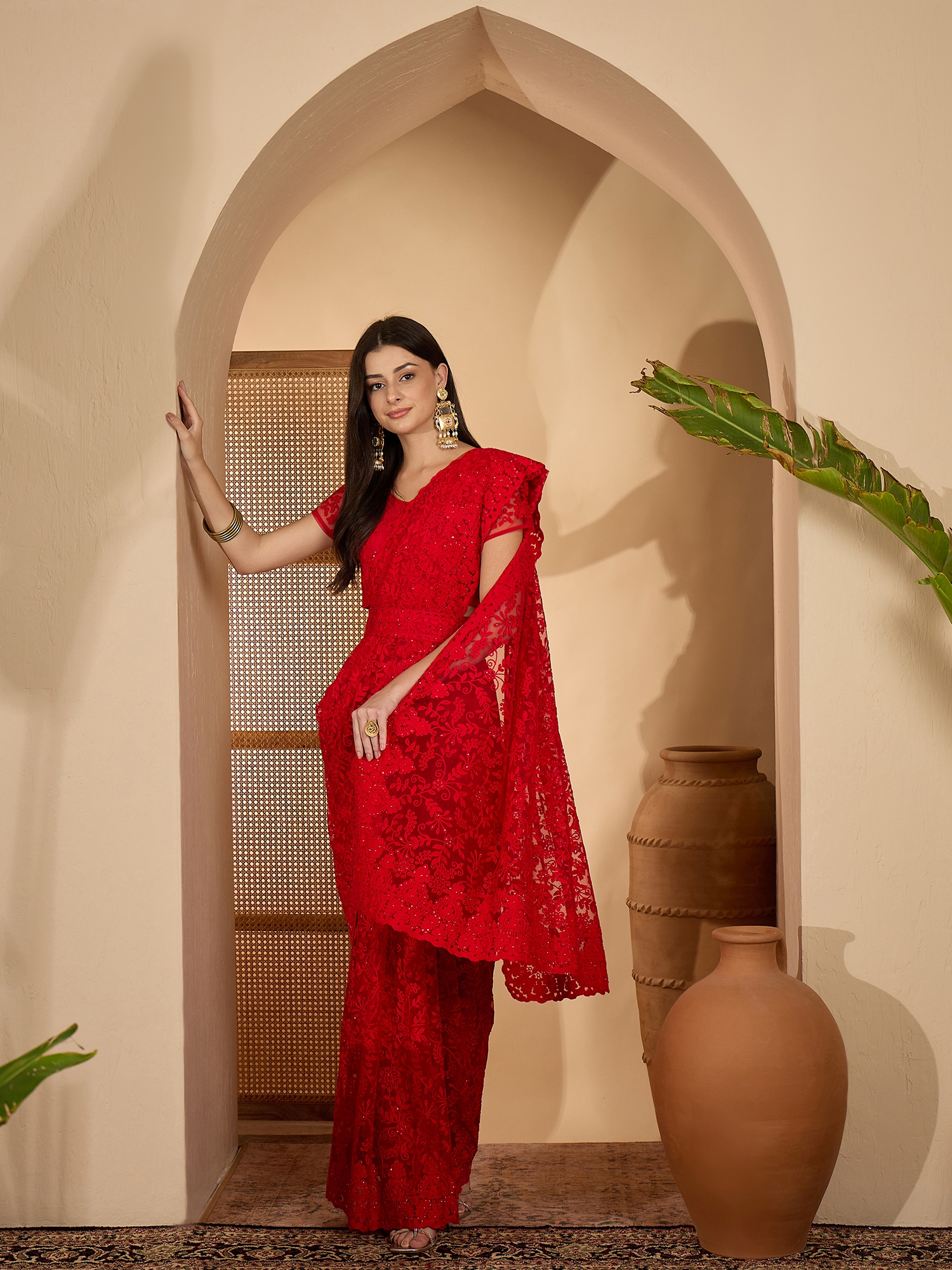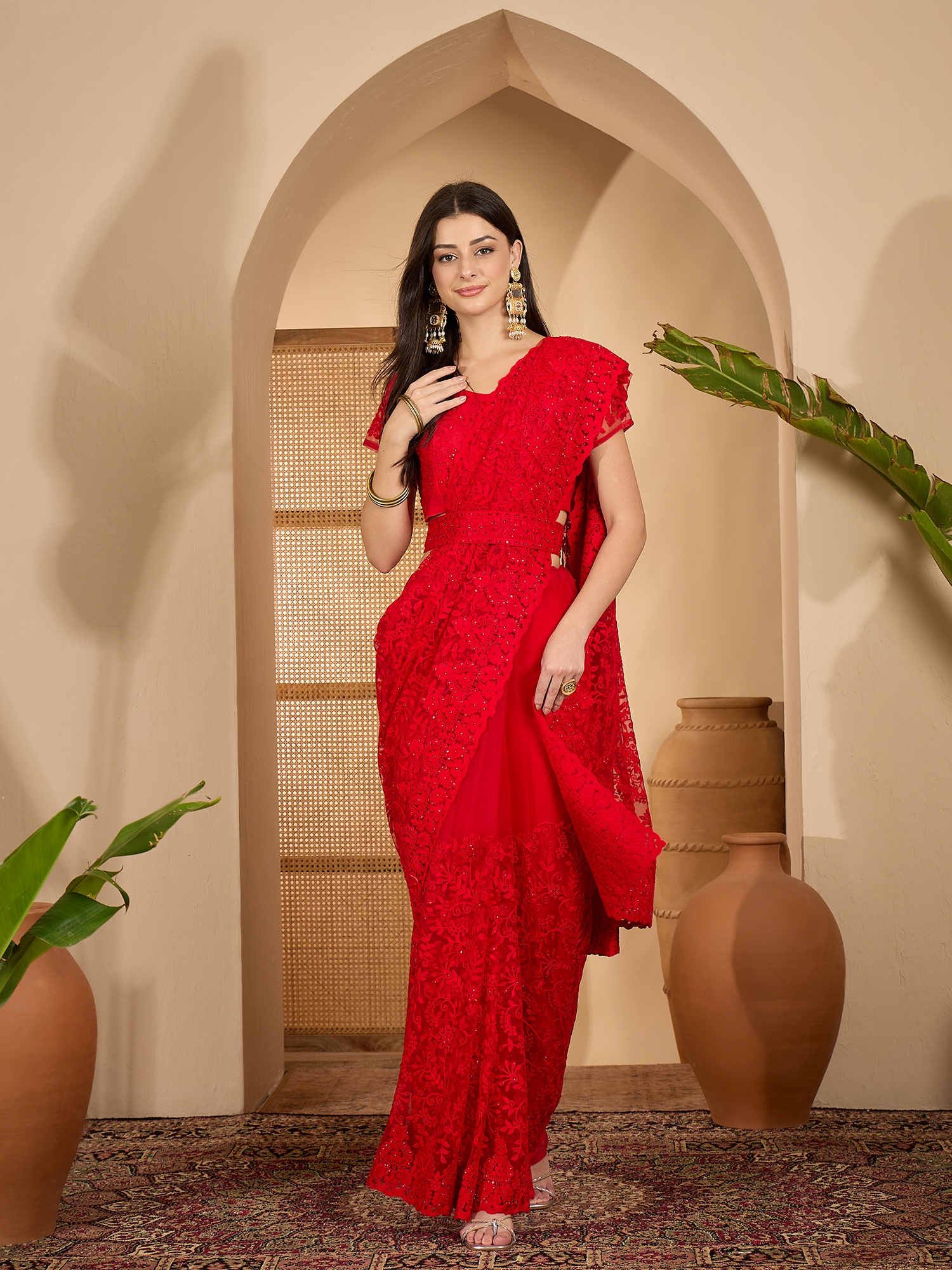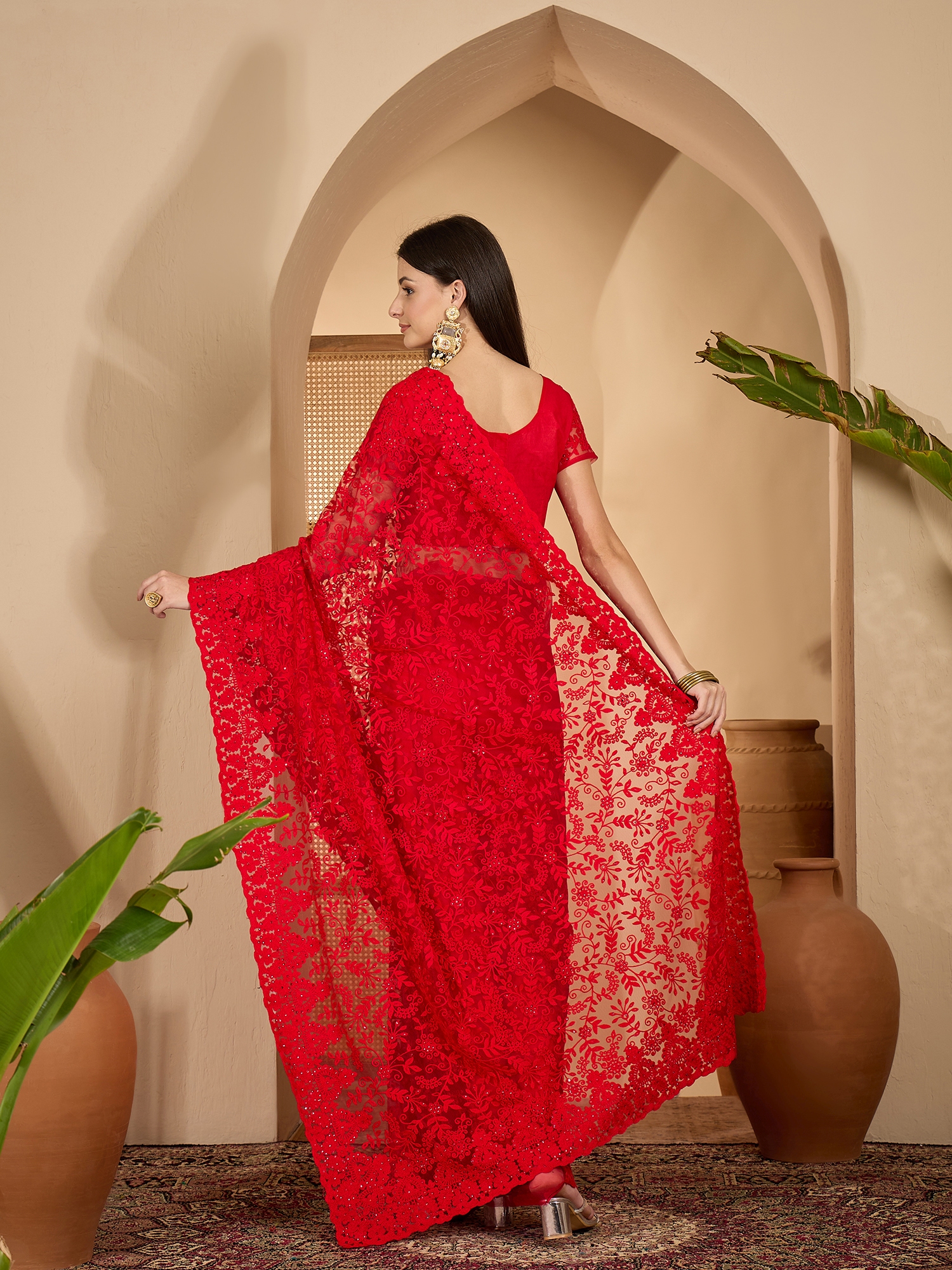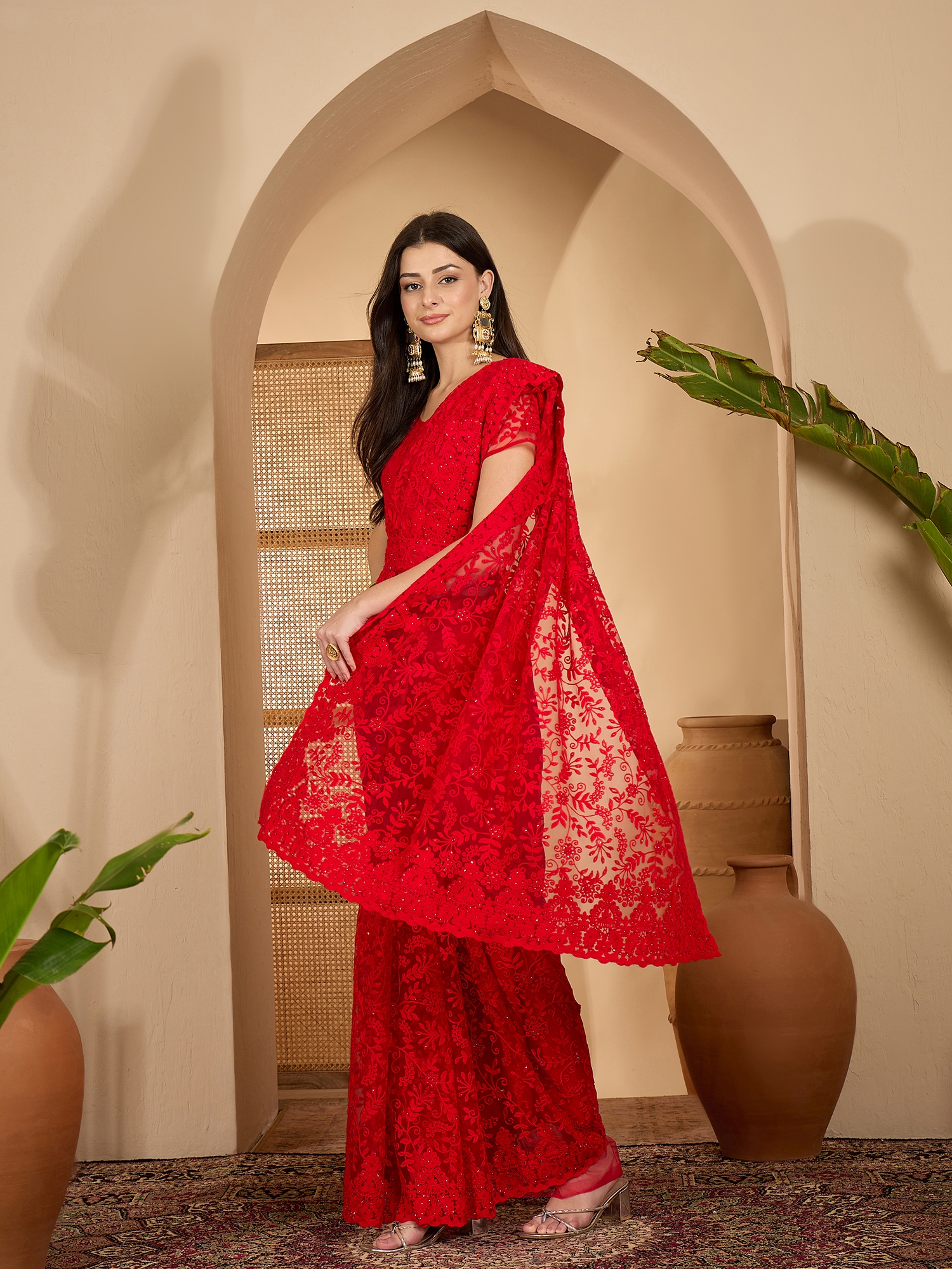 AASTHA FASHION Fashion Dream Womens Red Heavy Net Saree | Soft & Elegant Traditional Wear