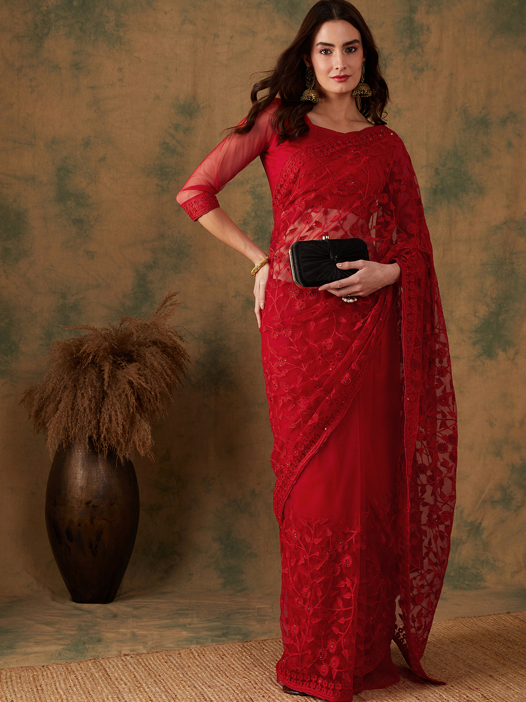 AASTHA FASHION Fashion Dream Womens Red Net Saree | Soft & Elegant Traditional Wear