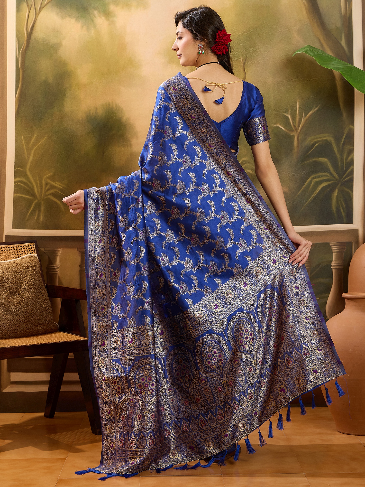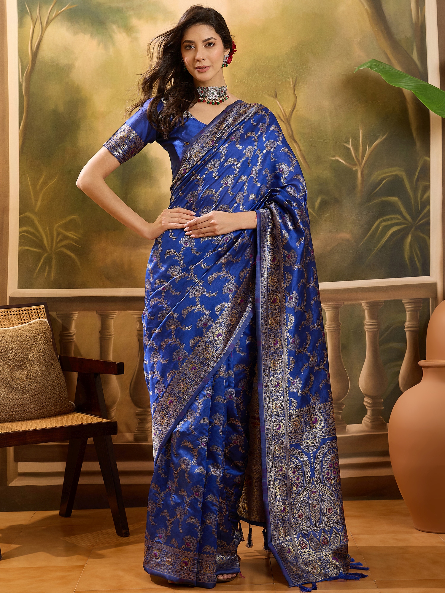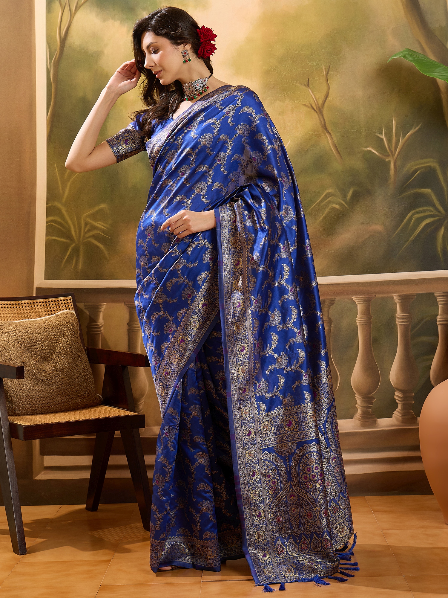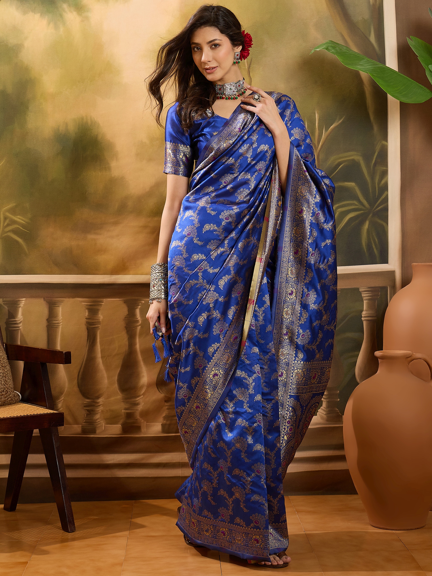 AASTHA FASHION Fashion Dream Womens Royal Blue Banarasi Jacquard Saree | Soft & Elegant Traditional Wear