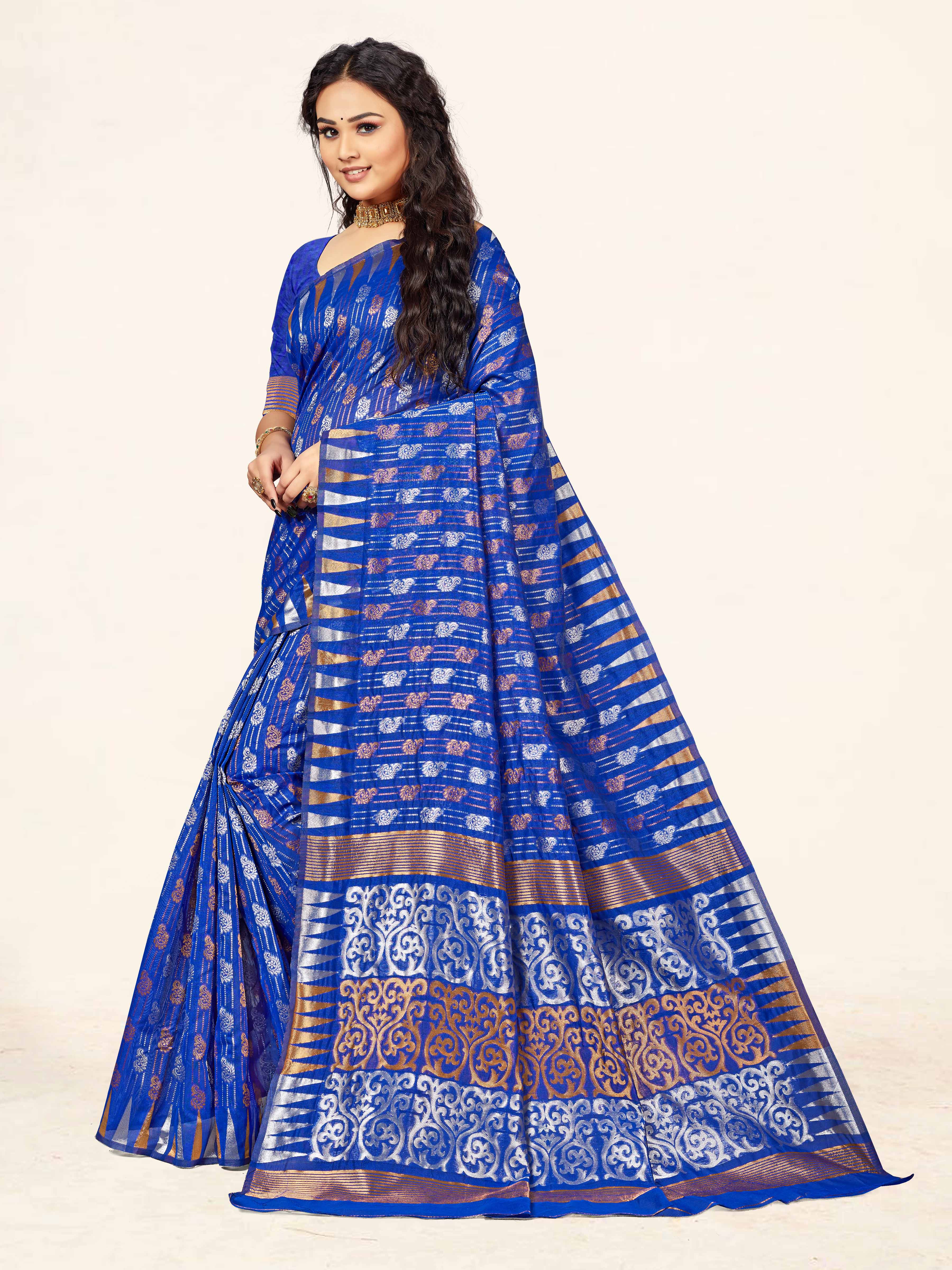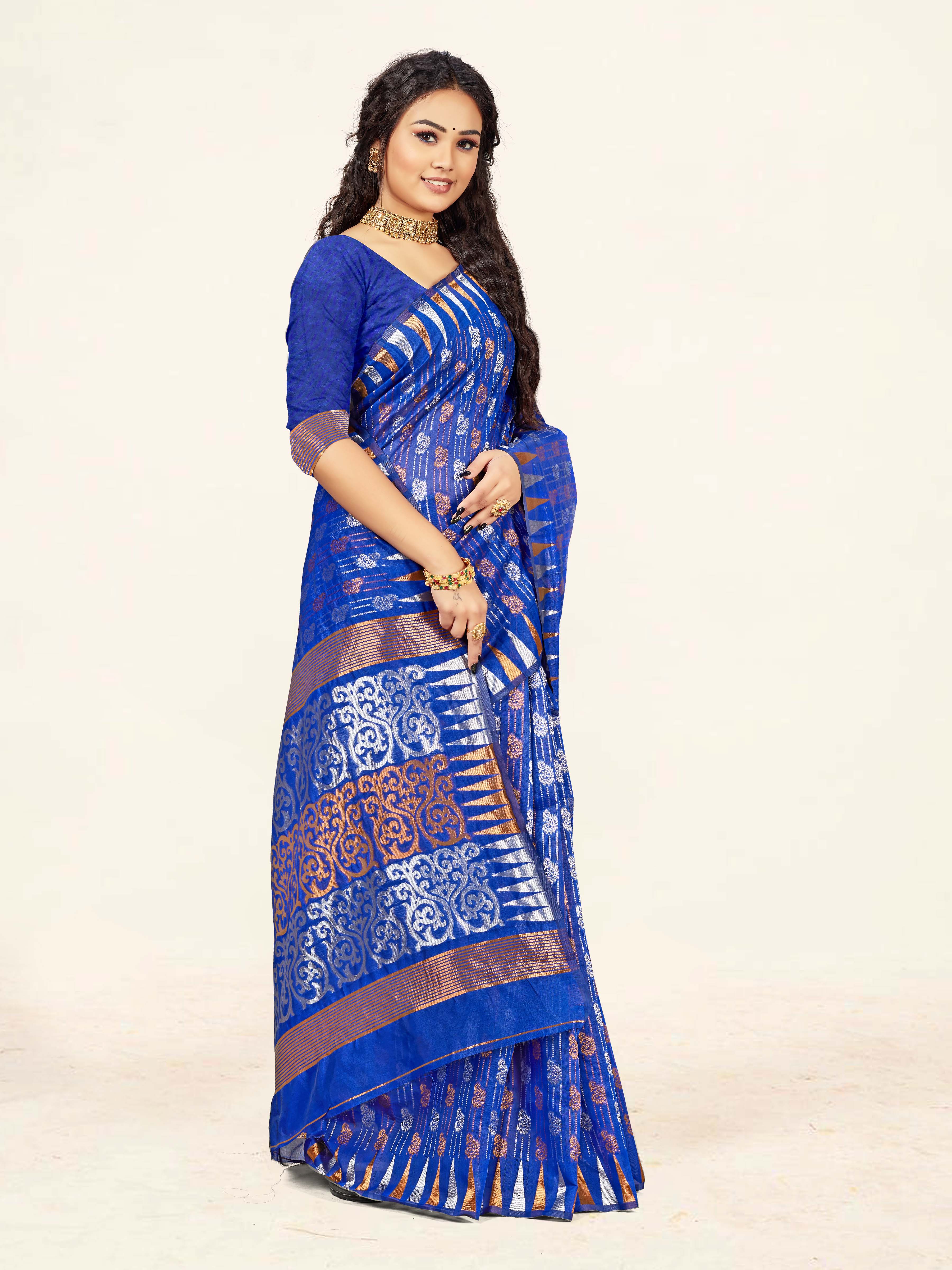 AASTHA FASHION Fashion Dream Womens Royal Blue Cotton Saree | Soft & Elegant Traditional Wear