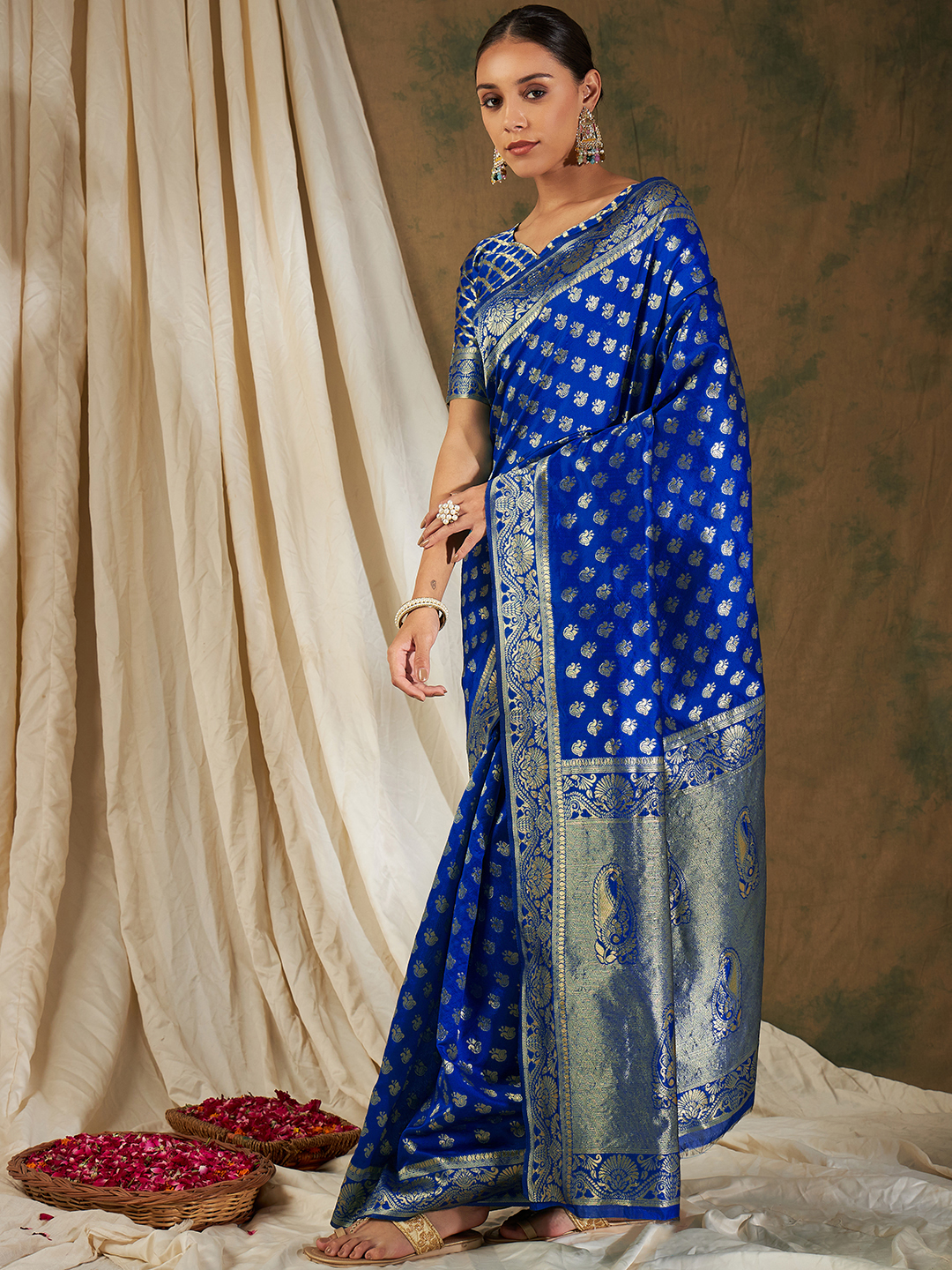 AASTHA FASHION Fashion Dream Womens Royal Blue Kanjivaram Silk Saree | Soft & Elegant Traditional Wear