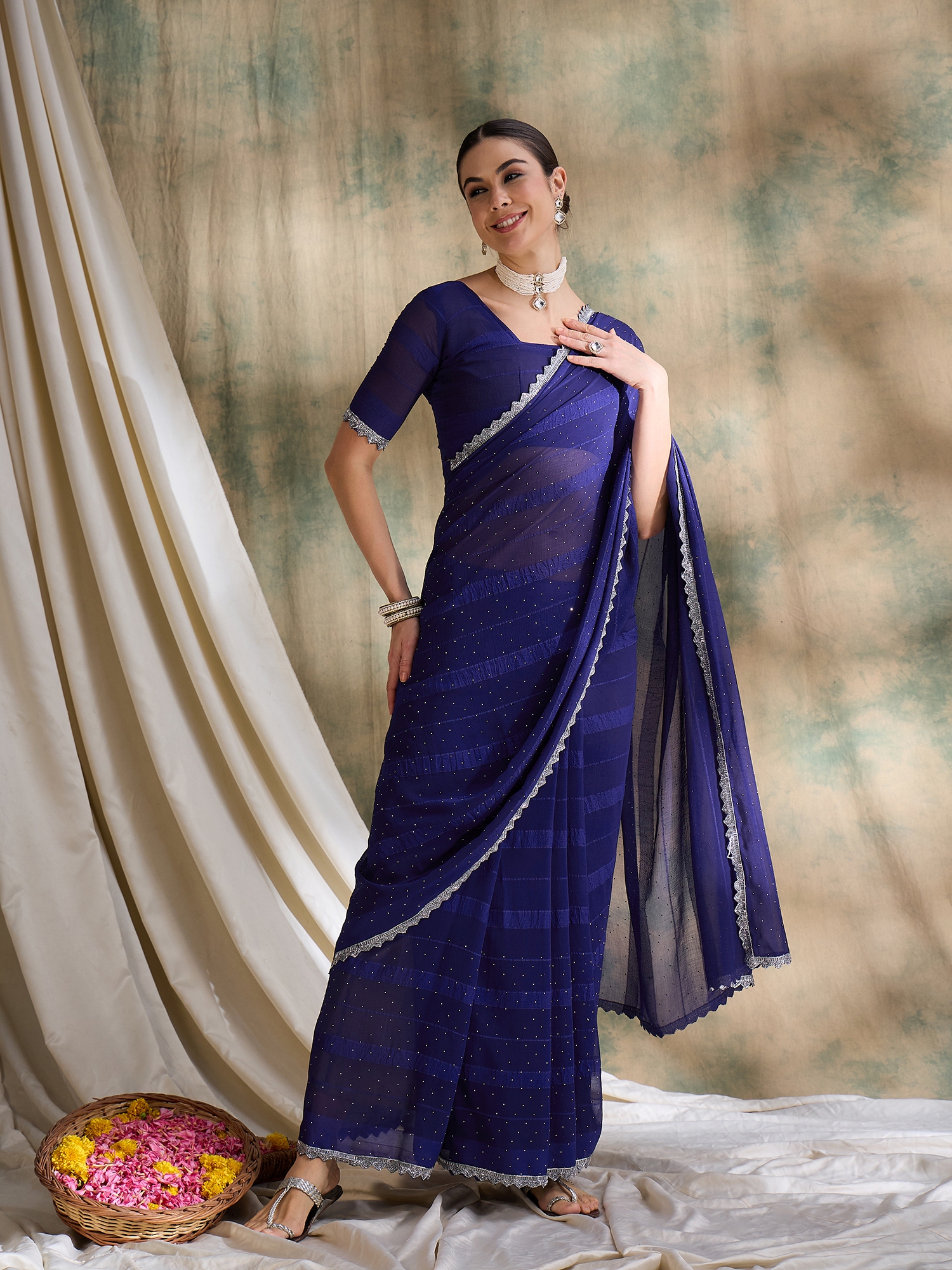 AASTHA FASHION Fashion Dream Womens Royal Blue Vichitra Silk Saree | Soft & Elegant Traditional Wear