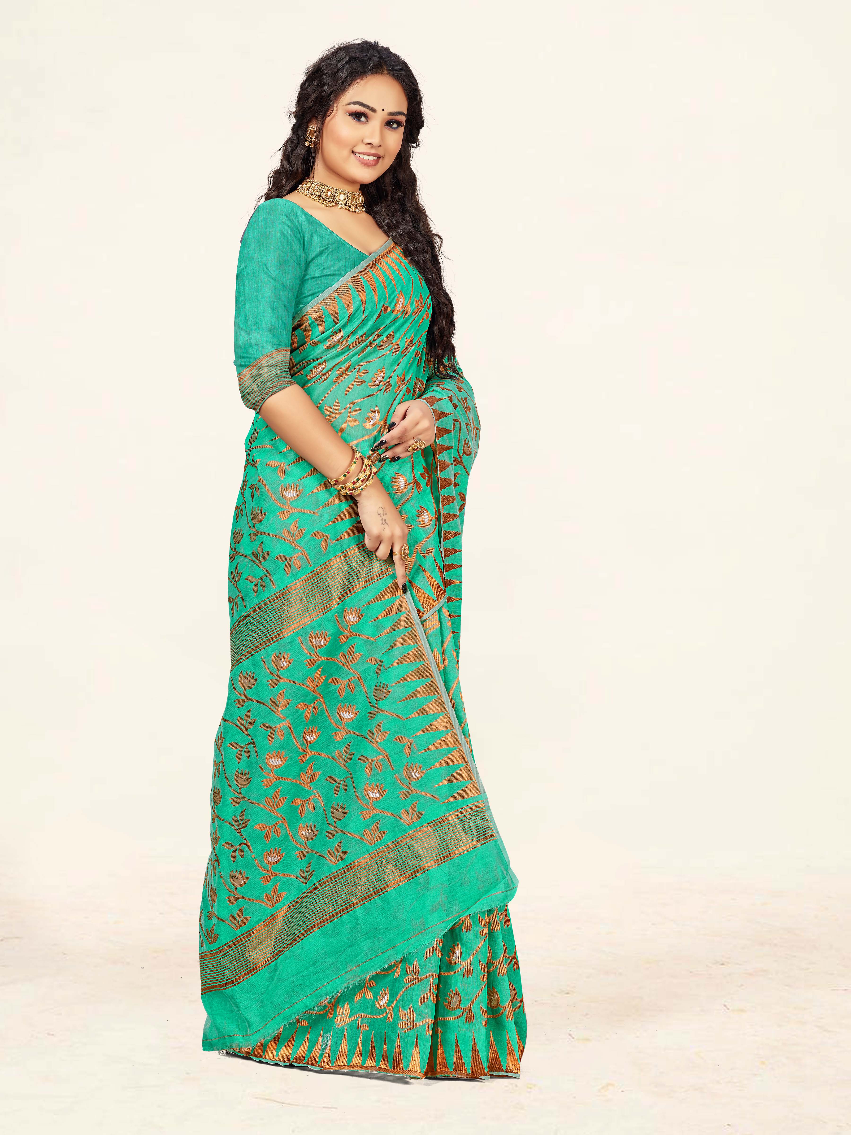 AASTHA FASHION Fashion Dream Womens Sea Green Cotton Saree | Soft & Elegant Traditional Wear