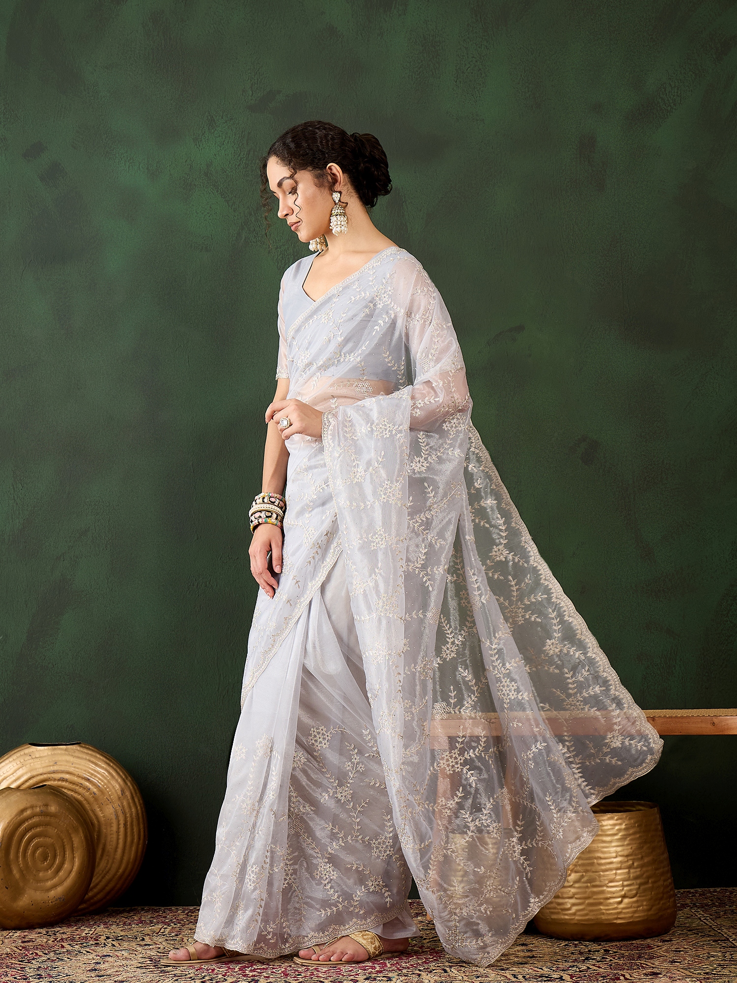 AASTHA FASHION Fashion Dream Womens Silver Simmer Saree | Soft & Elegant Traditional Wear