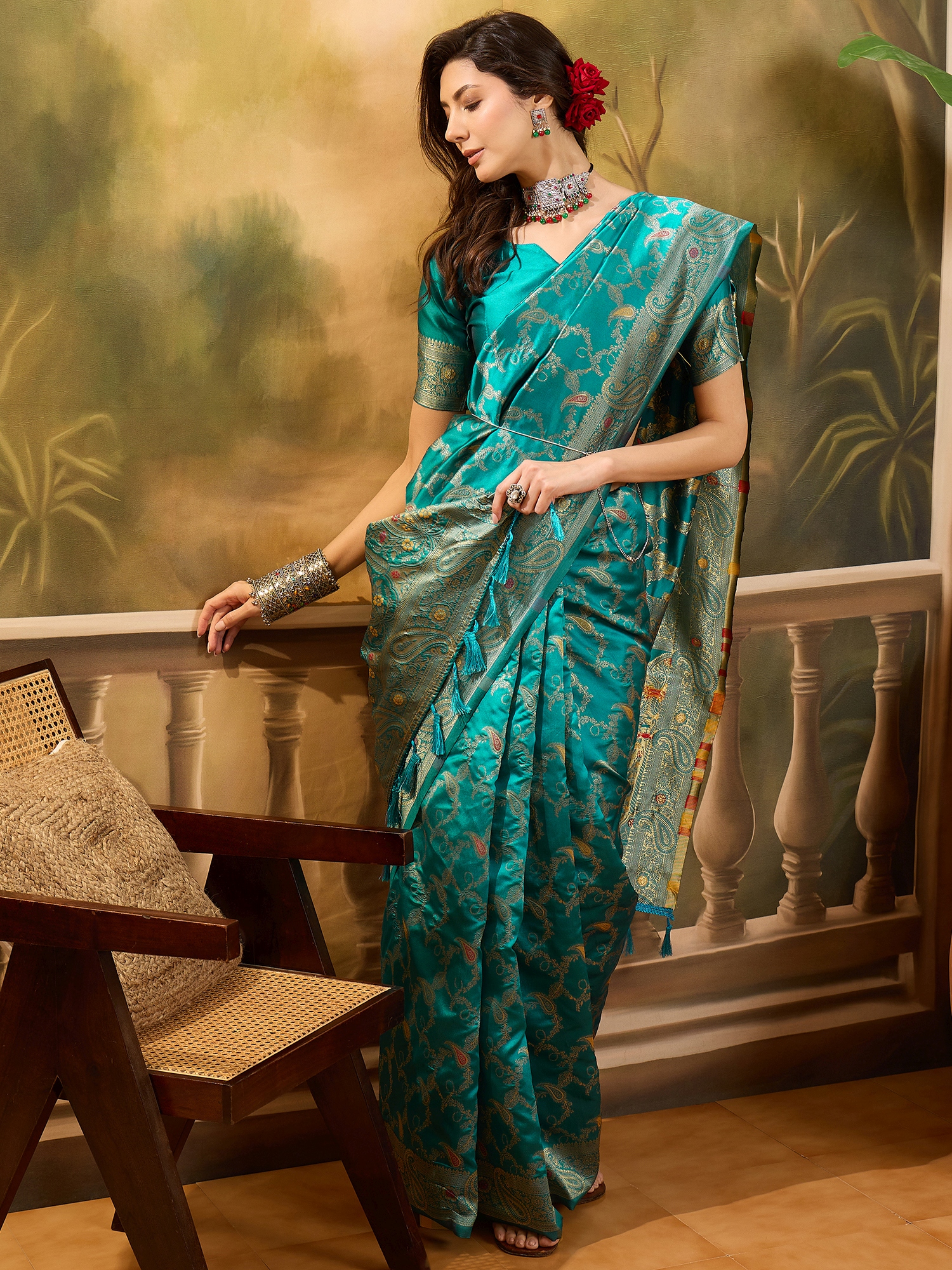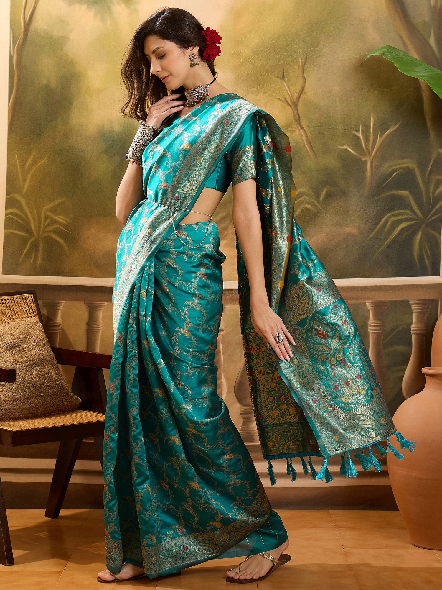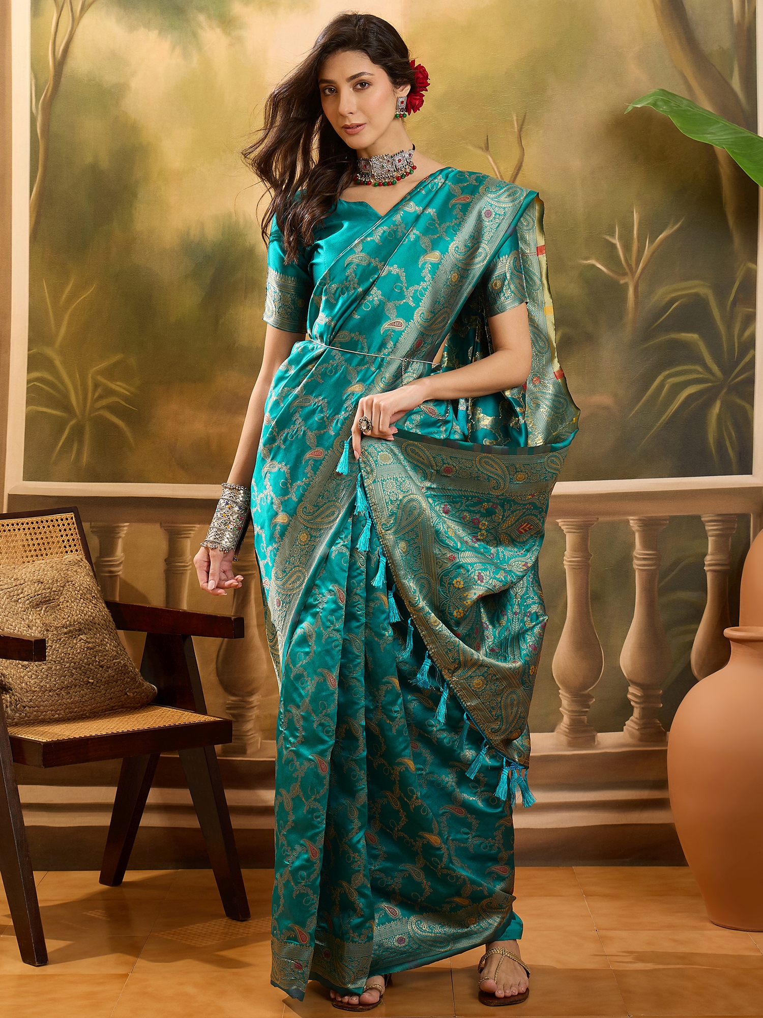 AASTHA FASHION Fashion Dream Womens Sky Blue Banarasi Jacquard Saree | Soft & Elegant Traditional Wear