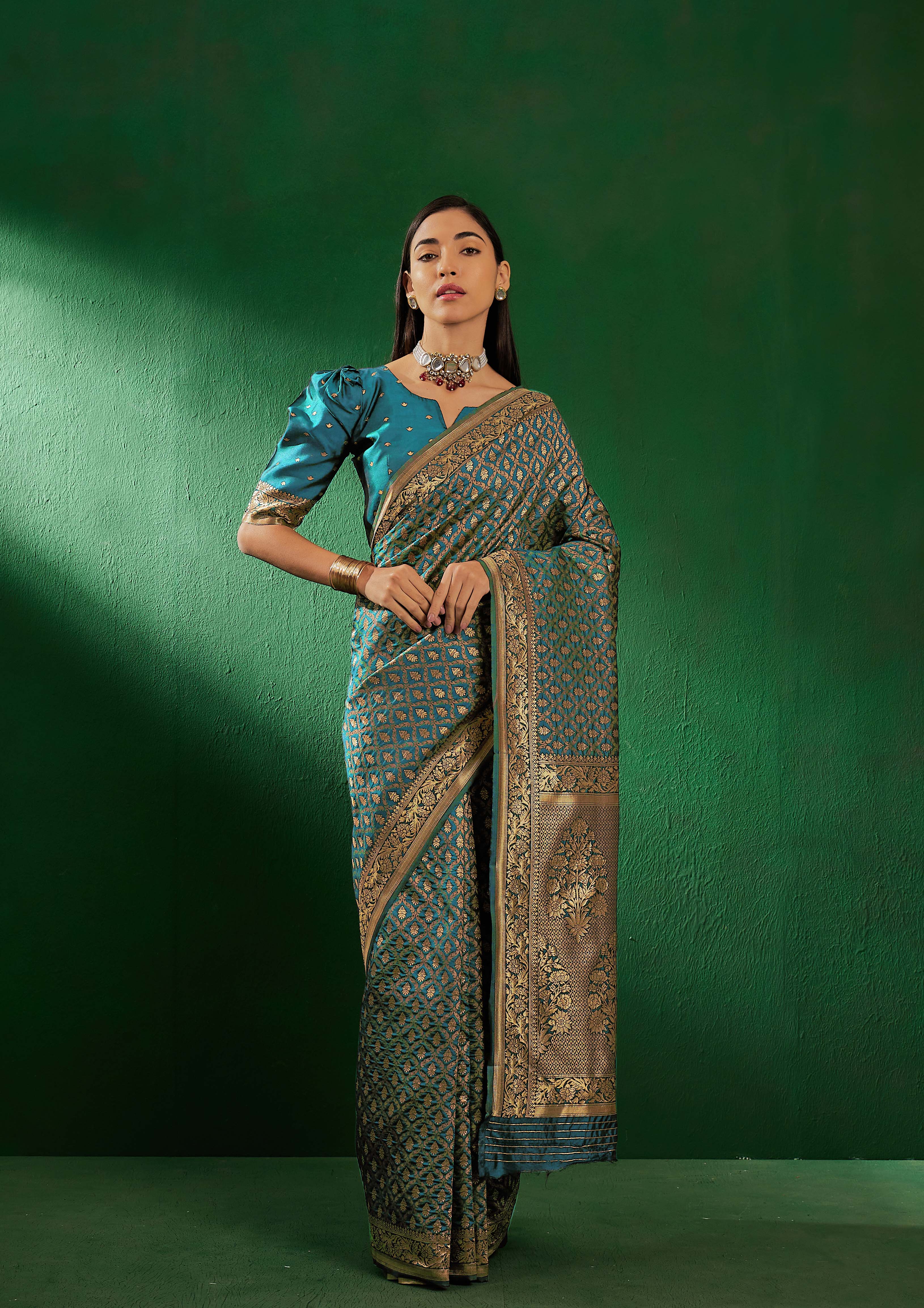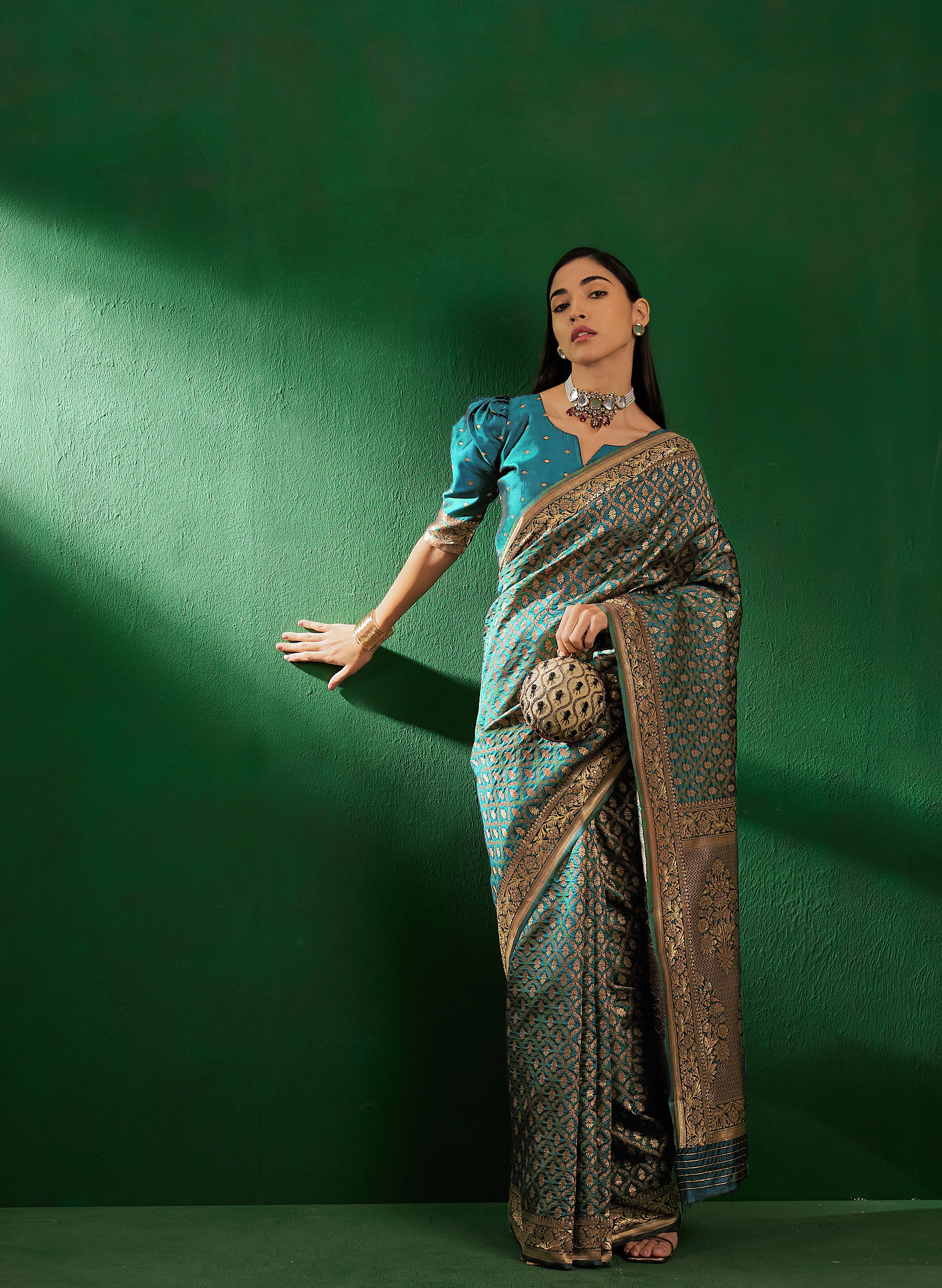 AASTHA FASHION Fashion Dream Womens Sky Blue Banarasi Silk Saree | Soft & Elegant Traditional Wear