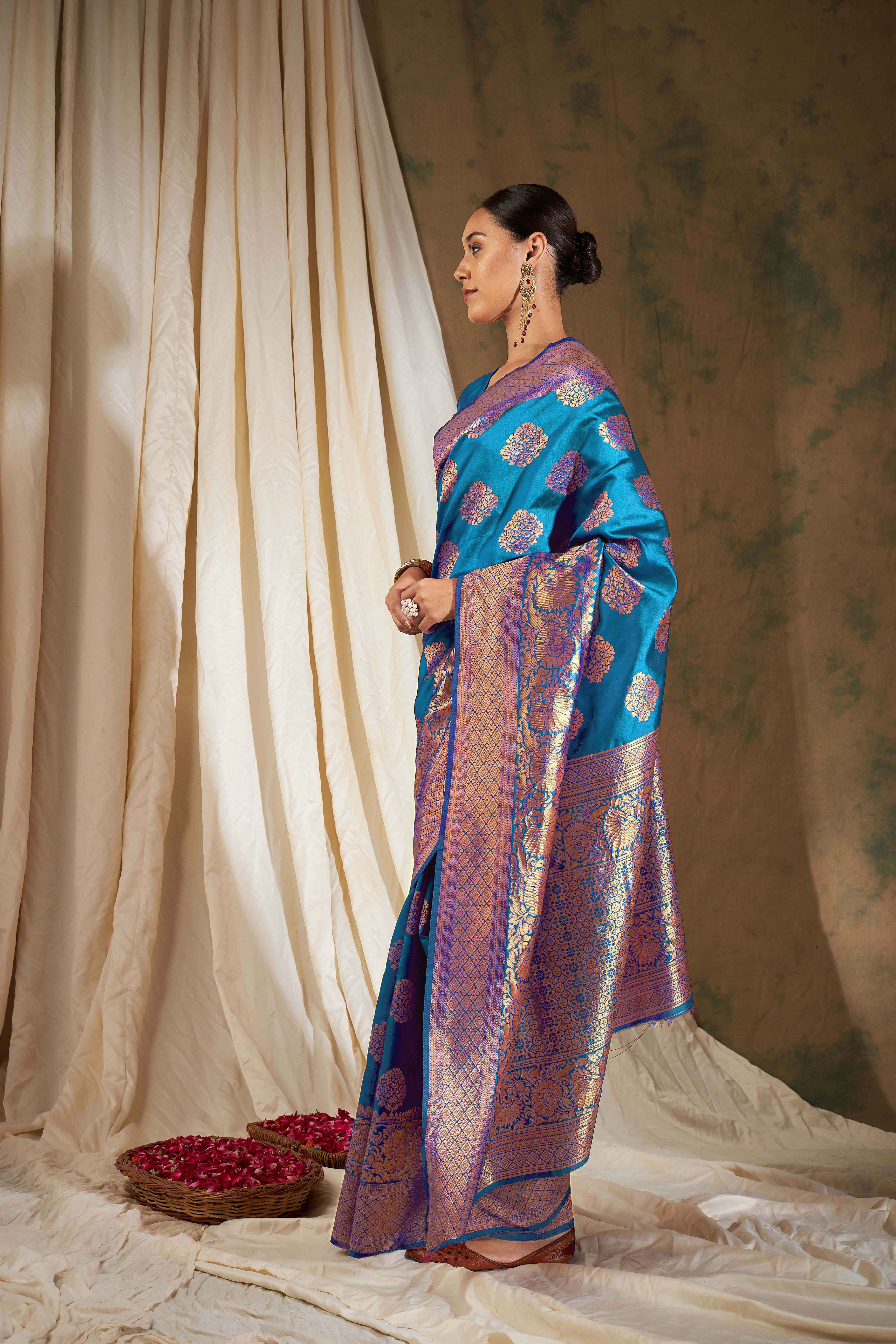 AASTHA FASHION Fashion Dream Womens SKY BLUE Banarasi Silk Saree | Soft & Elegant Traditional Wear