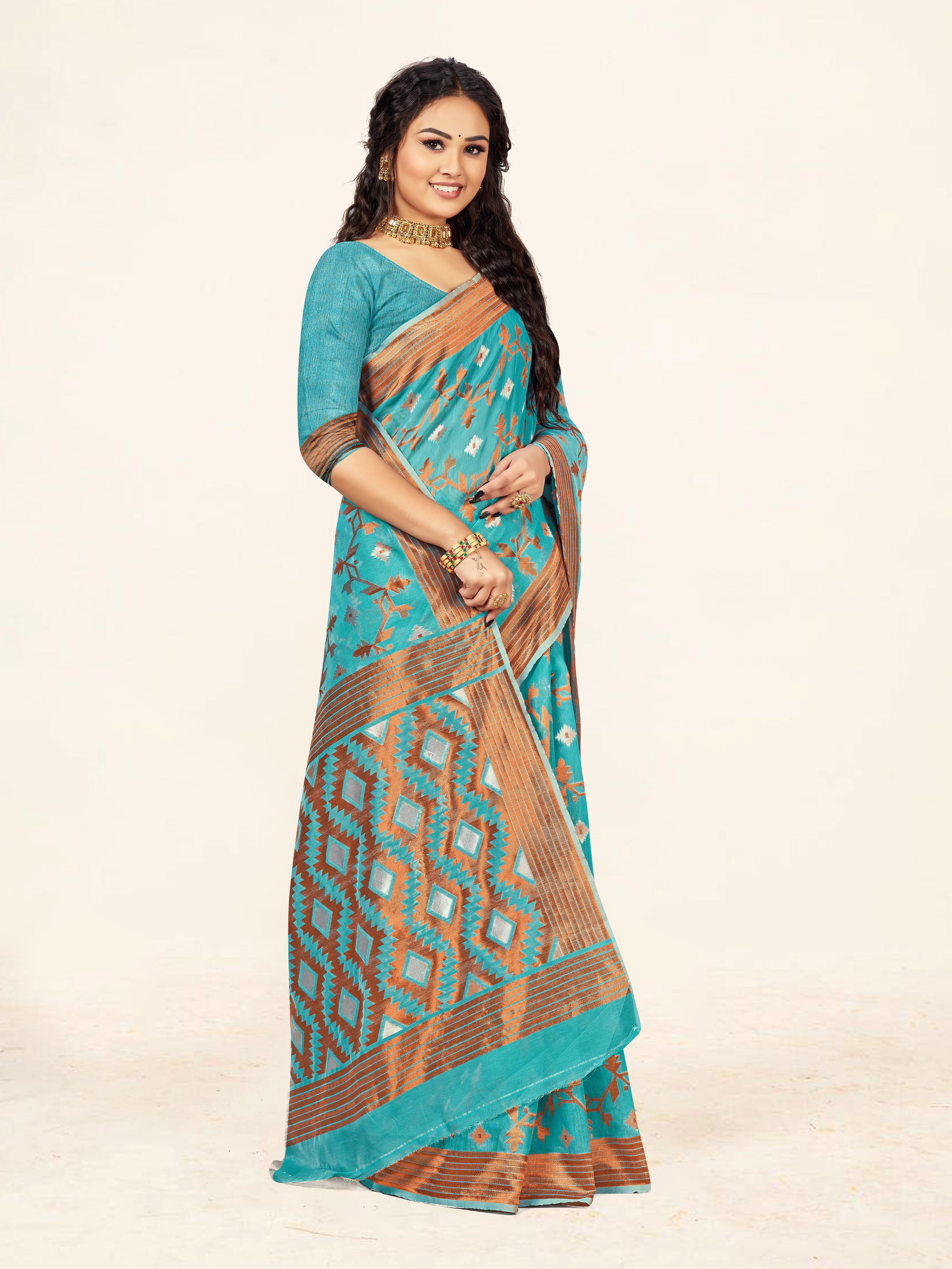 AASTHA FASHION Fashion Dream Womens Sky Blue Cotton Saree | Soft & Elegant Traditional Wear