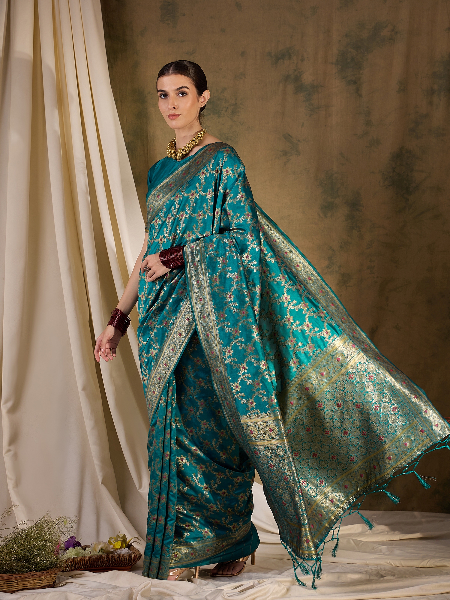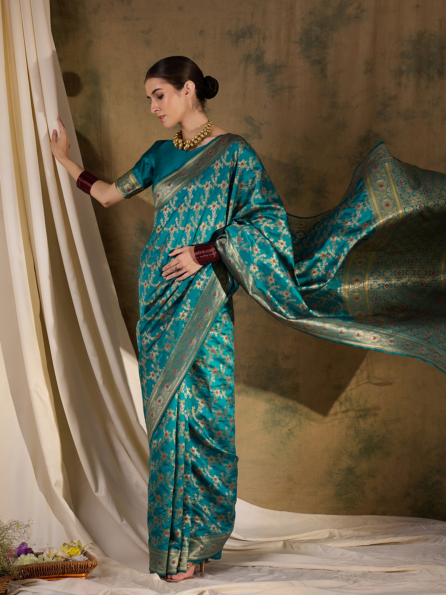 • Saree Fabric-Banarasi Silk ,Blouse Fabric-Banarasi Silk