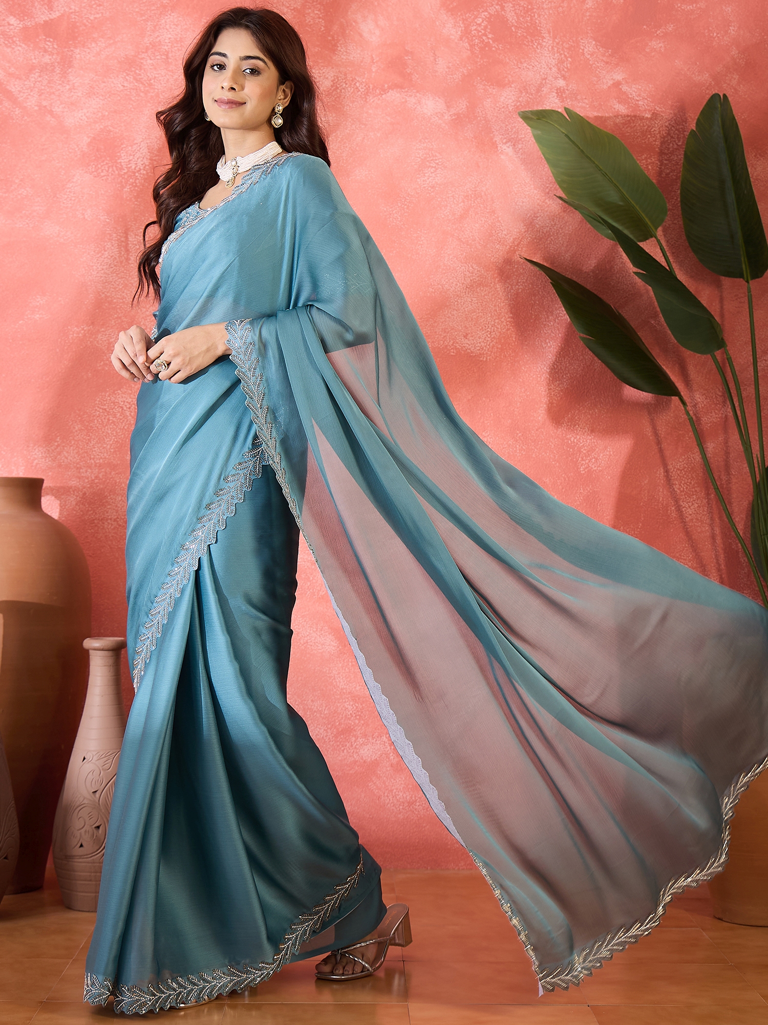 • Saree Fabric-Heavy Satin Chiffon ,Blouse Fabric-Heavy Satin Chiffon