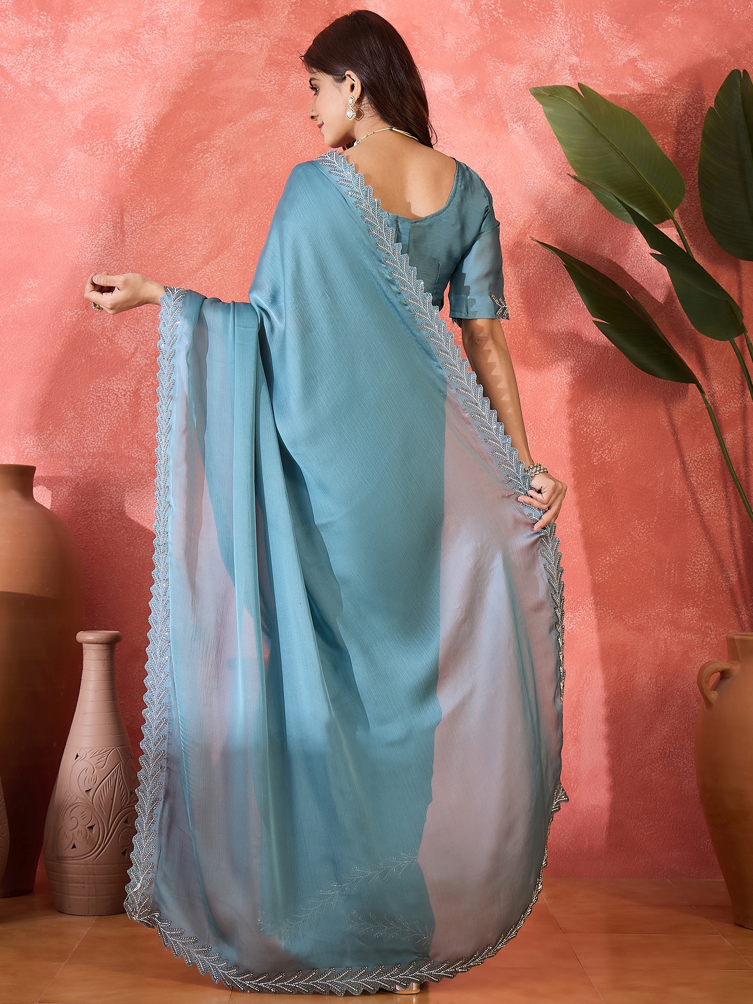 • Saree Work-Embellished ,Blouse Work- Heavy Satin Chiffon
