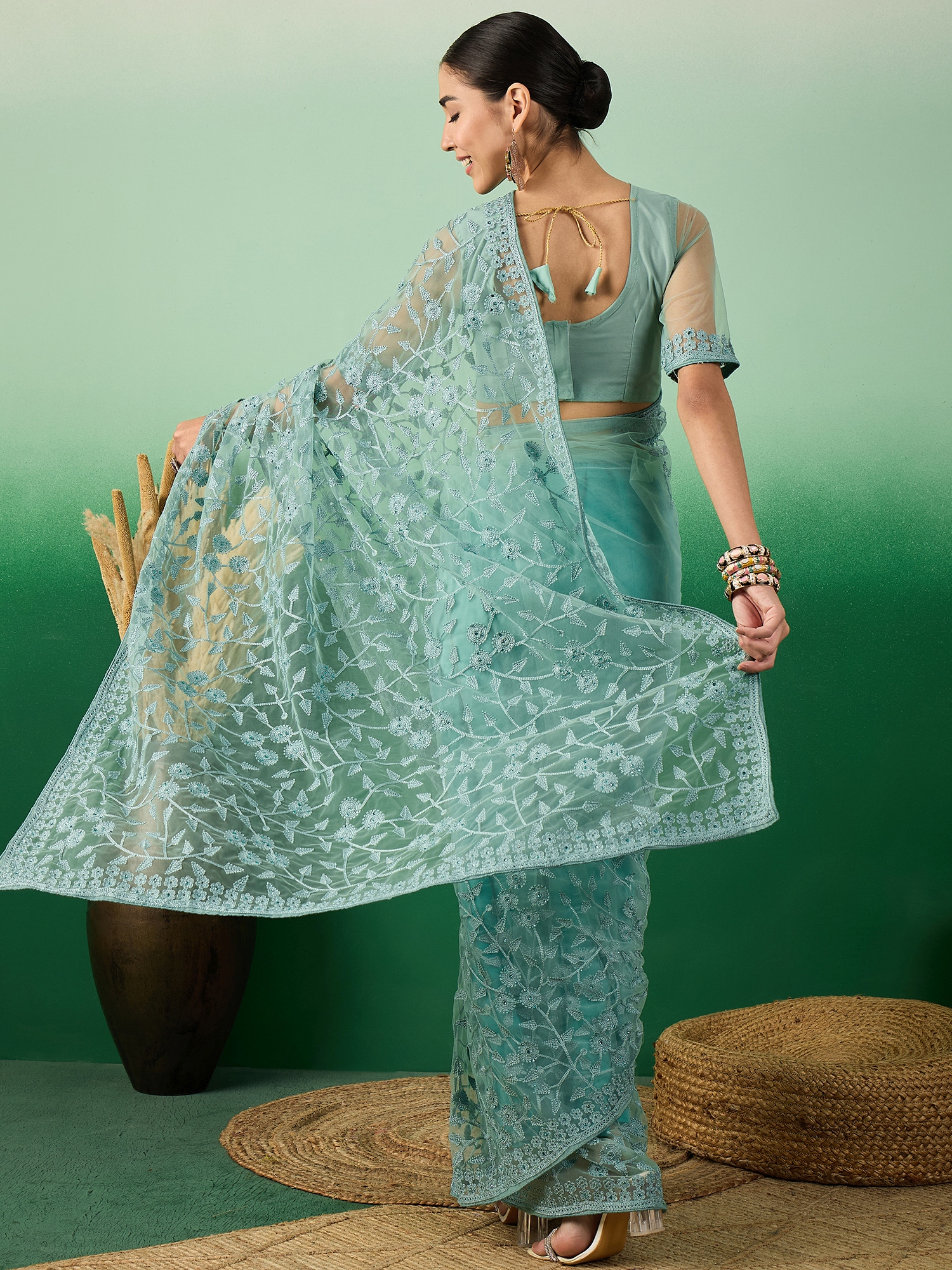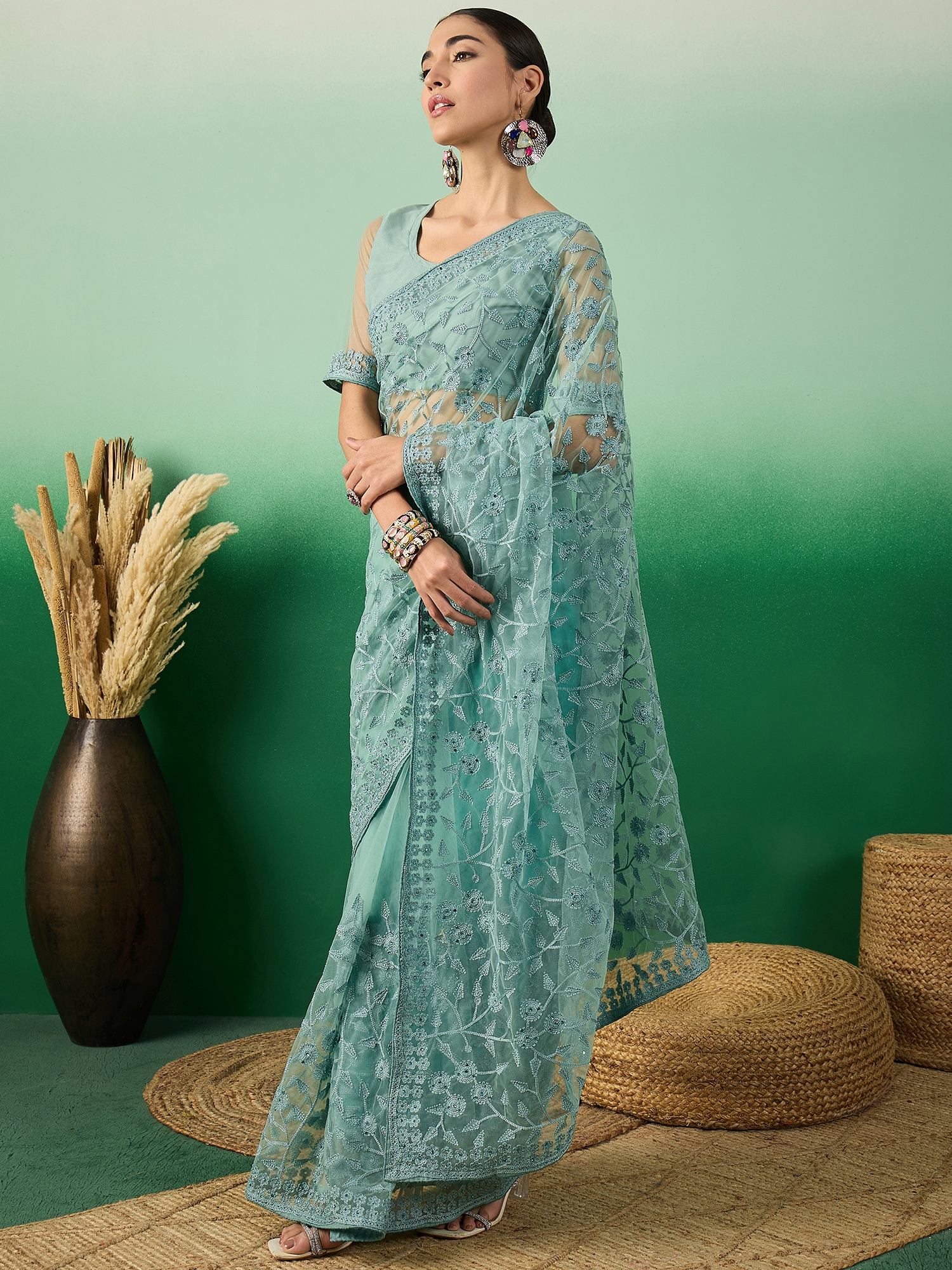 AASTHA FASHION Fashion Dream Womens Teal Net Saree | Soft & Elegant Traditional Wear