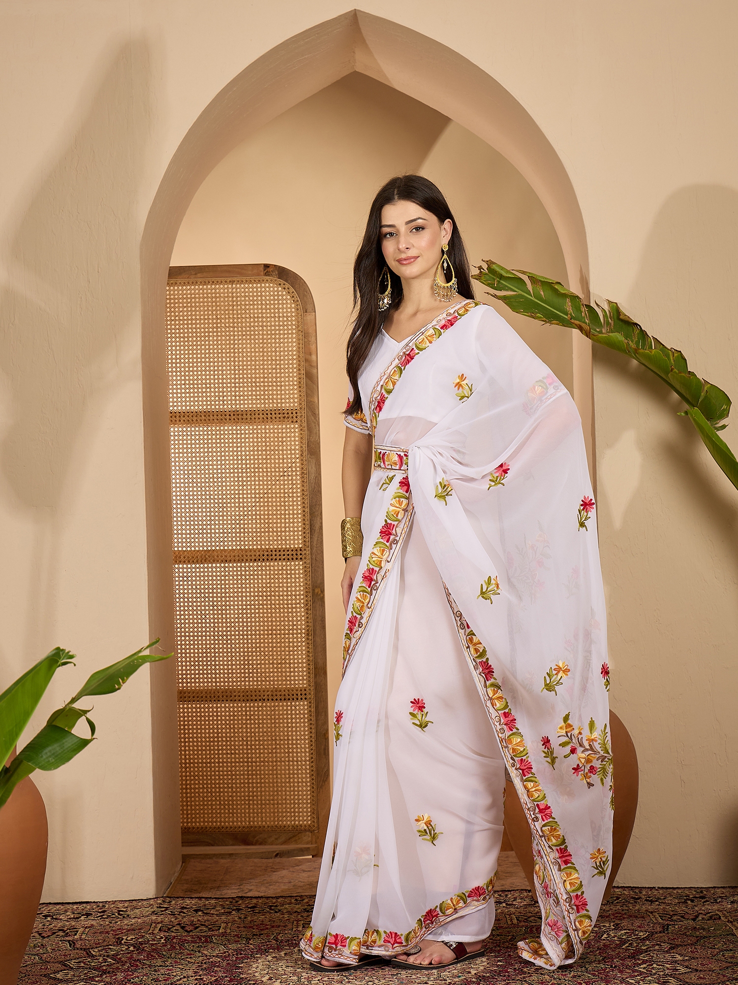 AASTHA FASHION Fashion Dream Womens White Georgette Saree | Soft & Elegant Traditional Wear